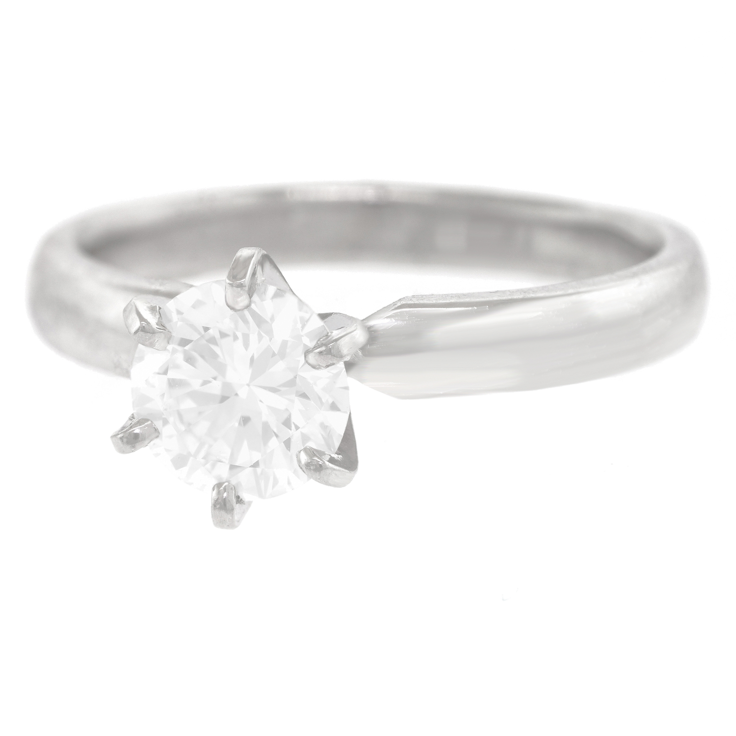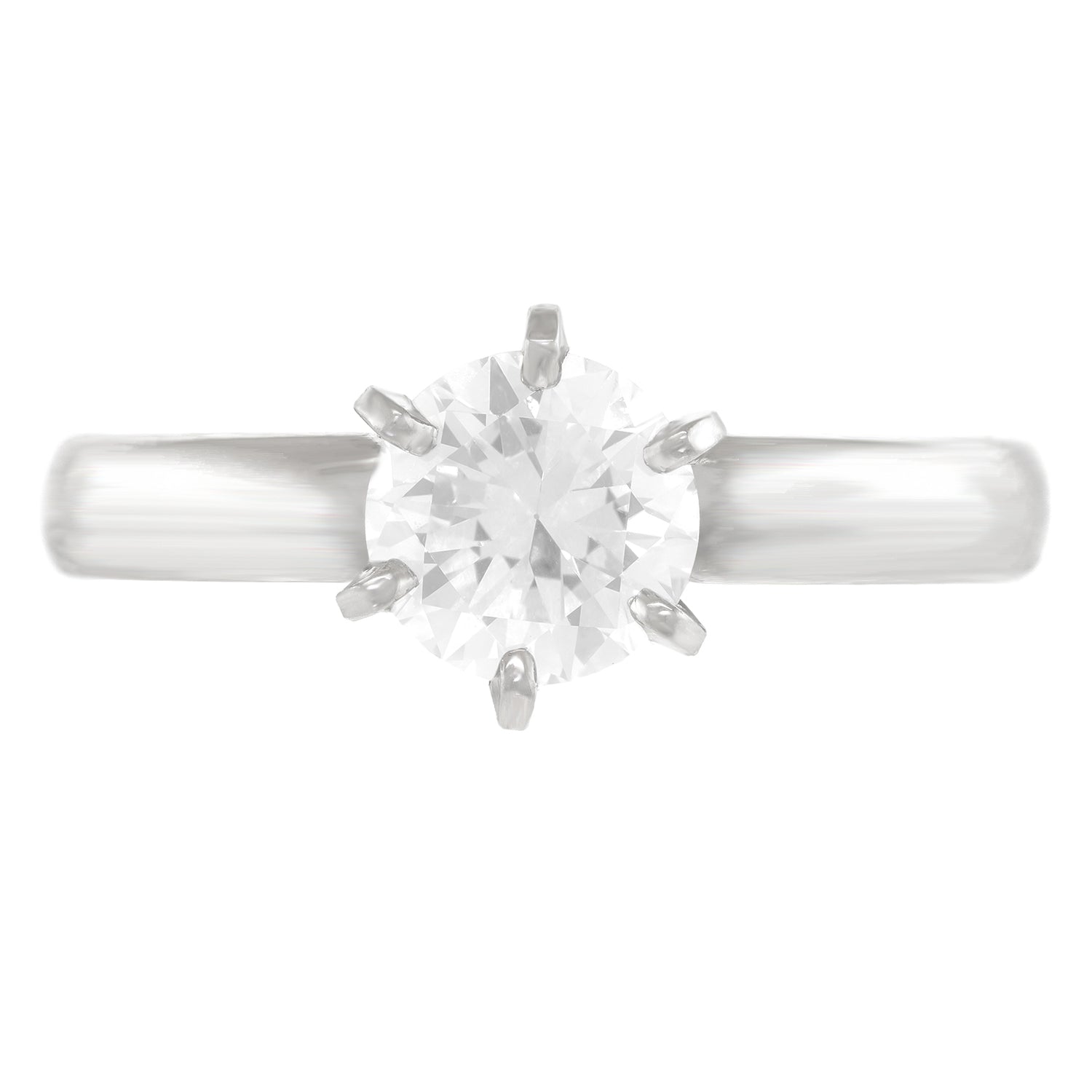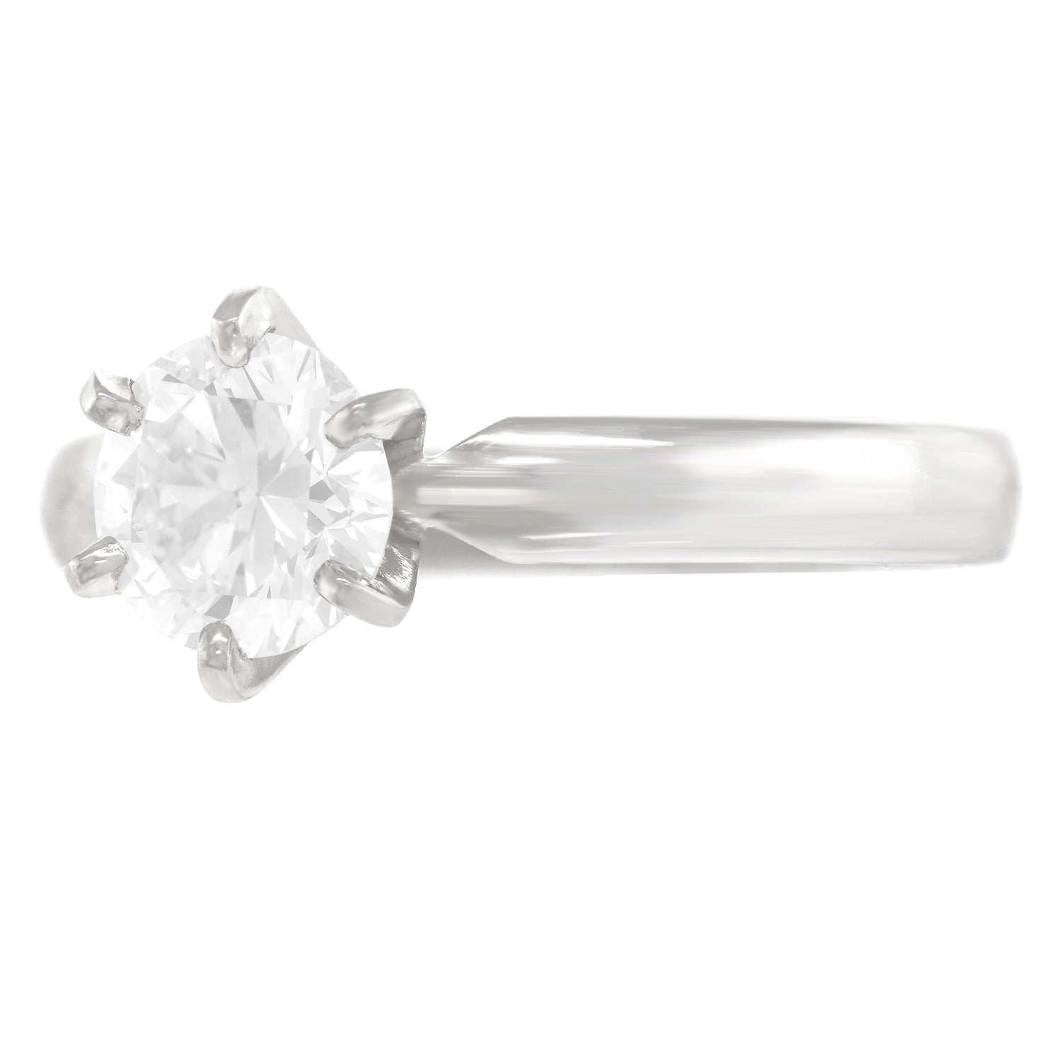 Circa 1960s, Platinum.  Set with a superb 1.07-carat diamond (D color and VS1 clarity), this classic sixties engagement ring is oh so chic! The six prong platinum mounting is elegantly simple, perfectly showcasing the brilliant white diamond. Wow, wow, WOW!!   Excellent condition.