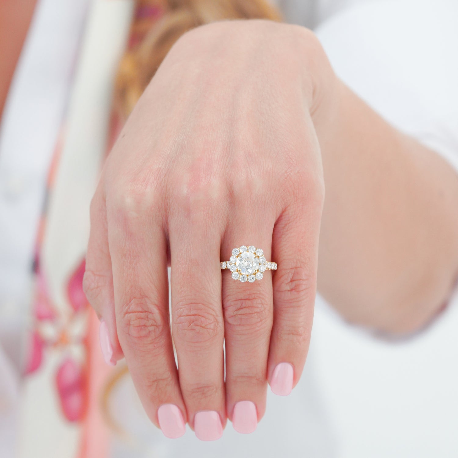Remarks from Lawrence Jeffrey: “Yellow gold engagement rings are delightfully romantic.”