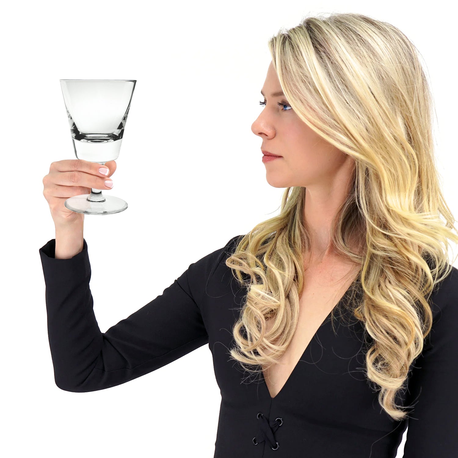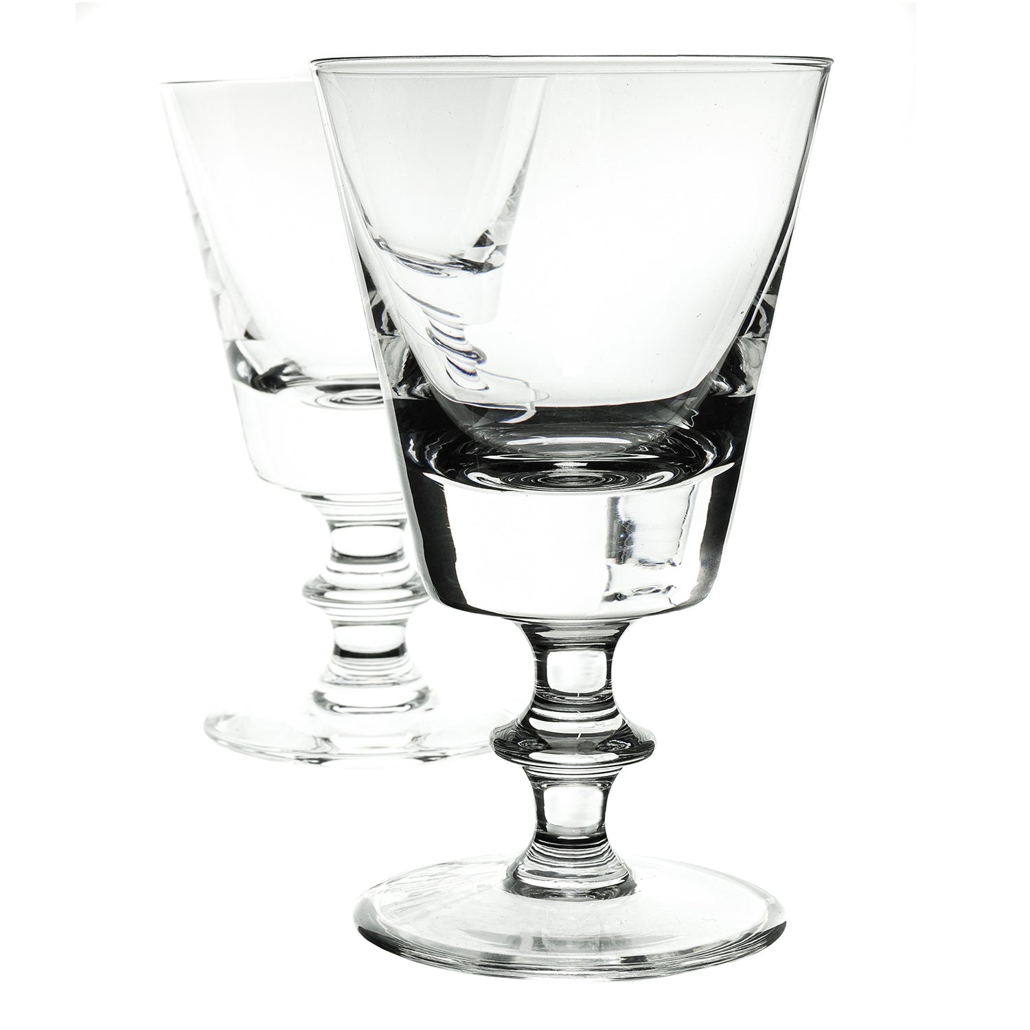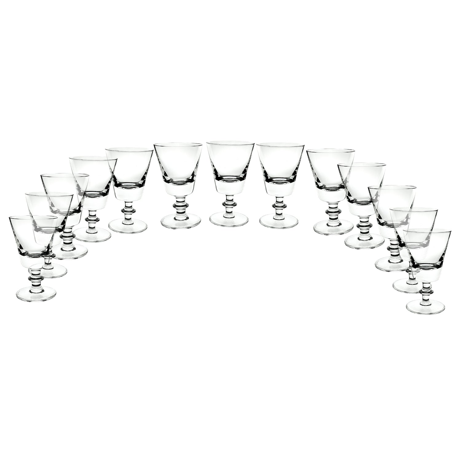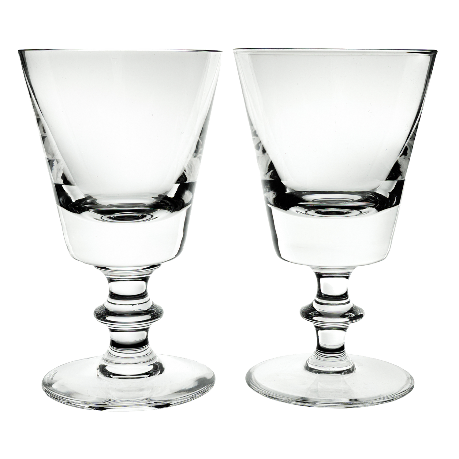 Circa 1960s, by Val St. Lambert, Belgium. This is one the most coveted of all modernist glasses. Intended as a water glass, today these "State Plain" pattern goblets find more usage as wine goblets. This Val Saint Lambert design is perfectly balanced, deliciously heavy in the hand, and visually pleasing, while conspicuously modern. Excellent condition.