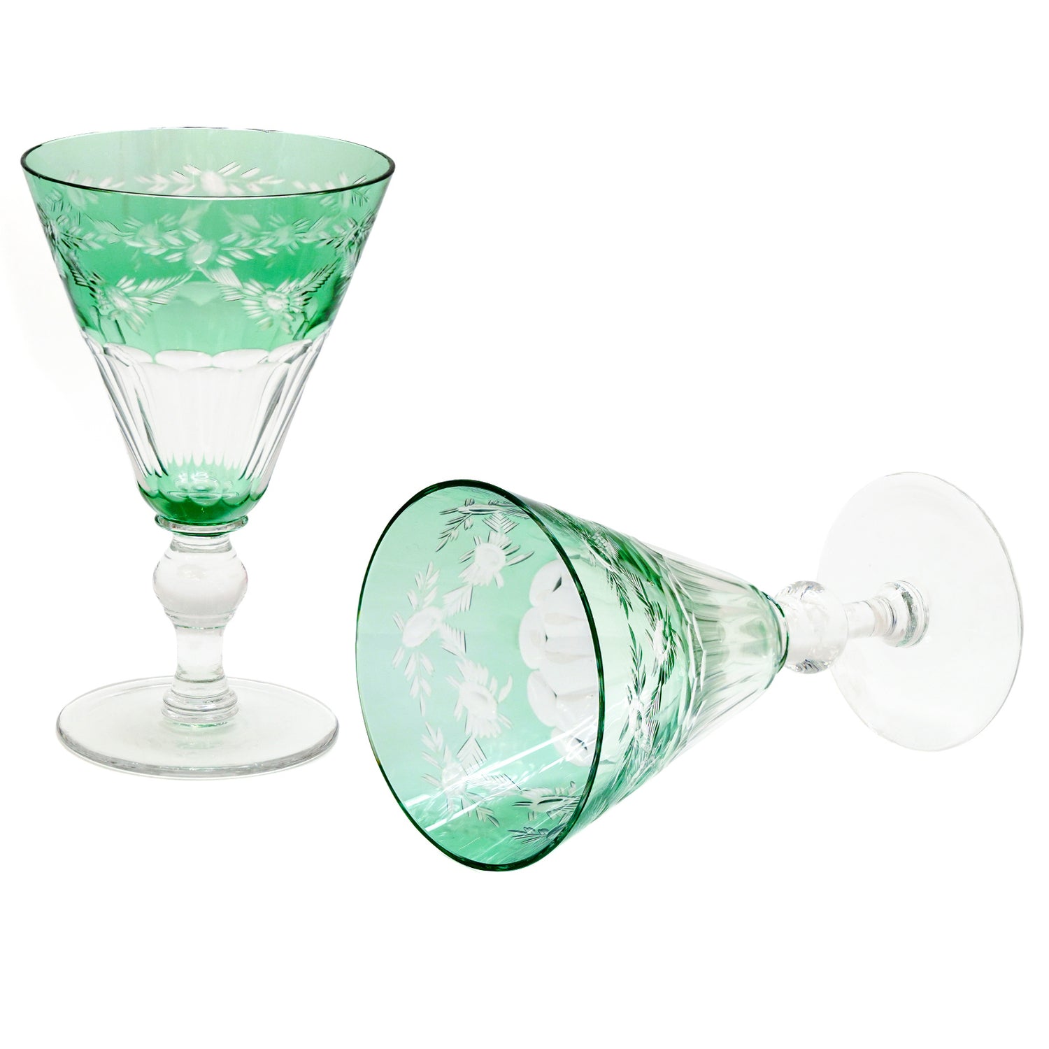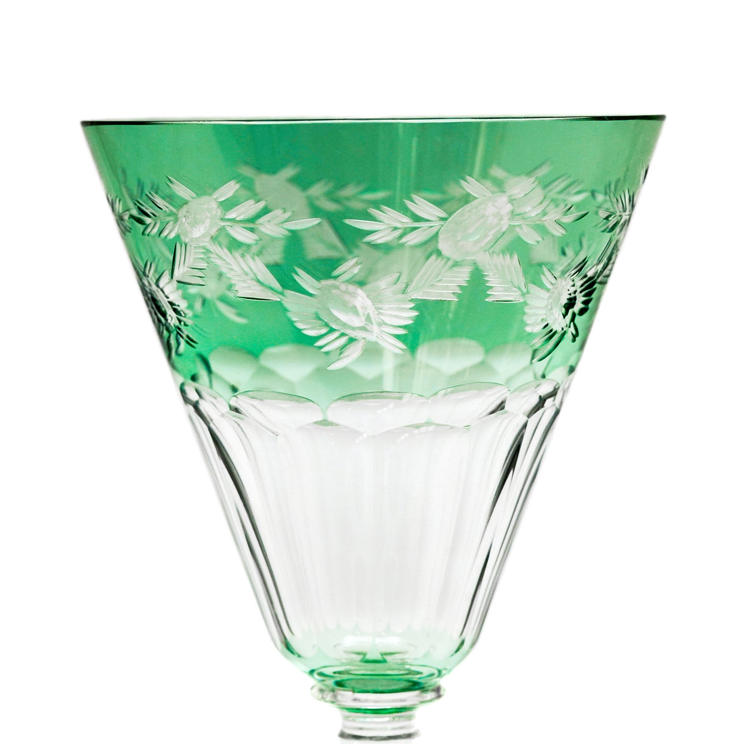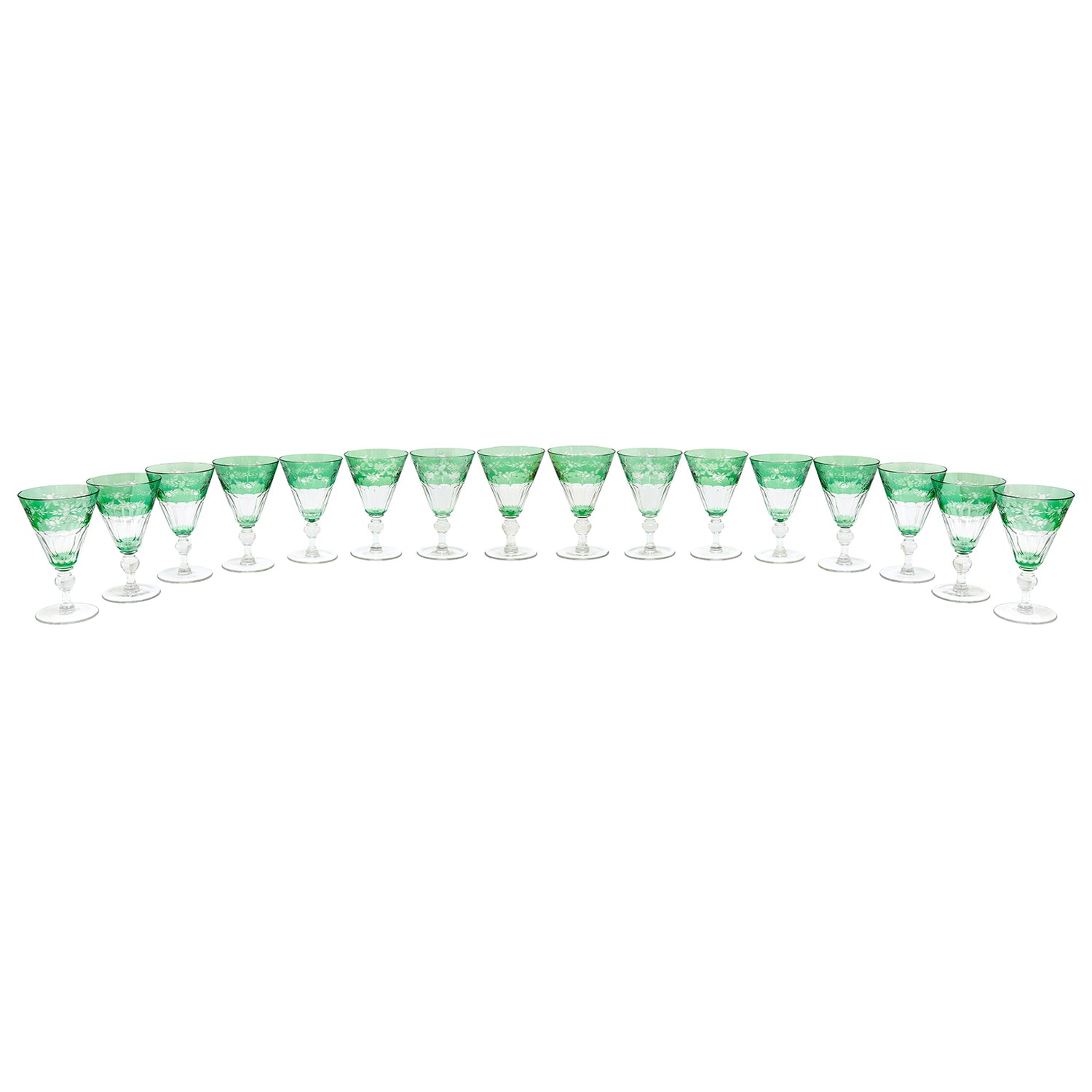 #24282 - 16 Green Cut Crystal Water Goblets by Sinclaire