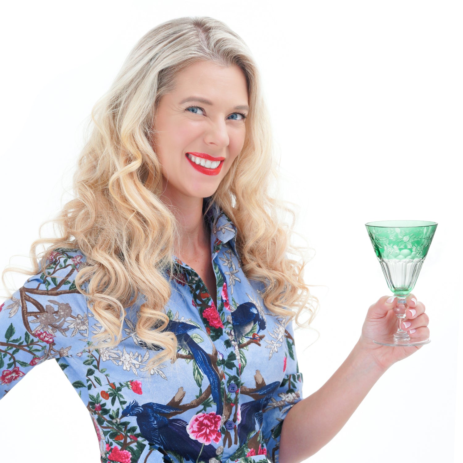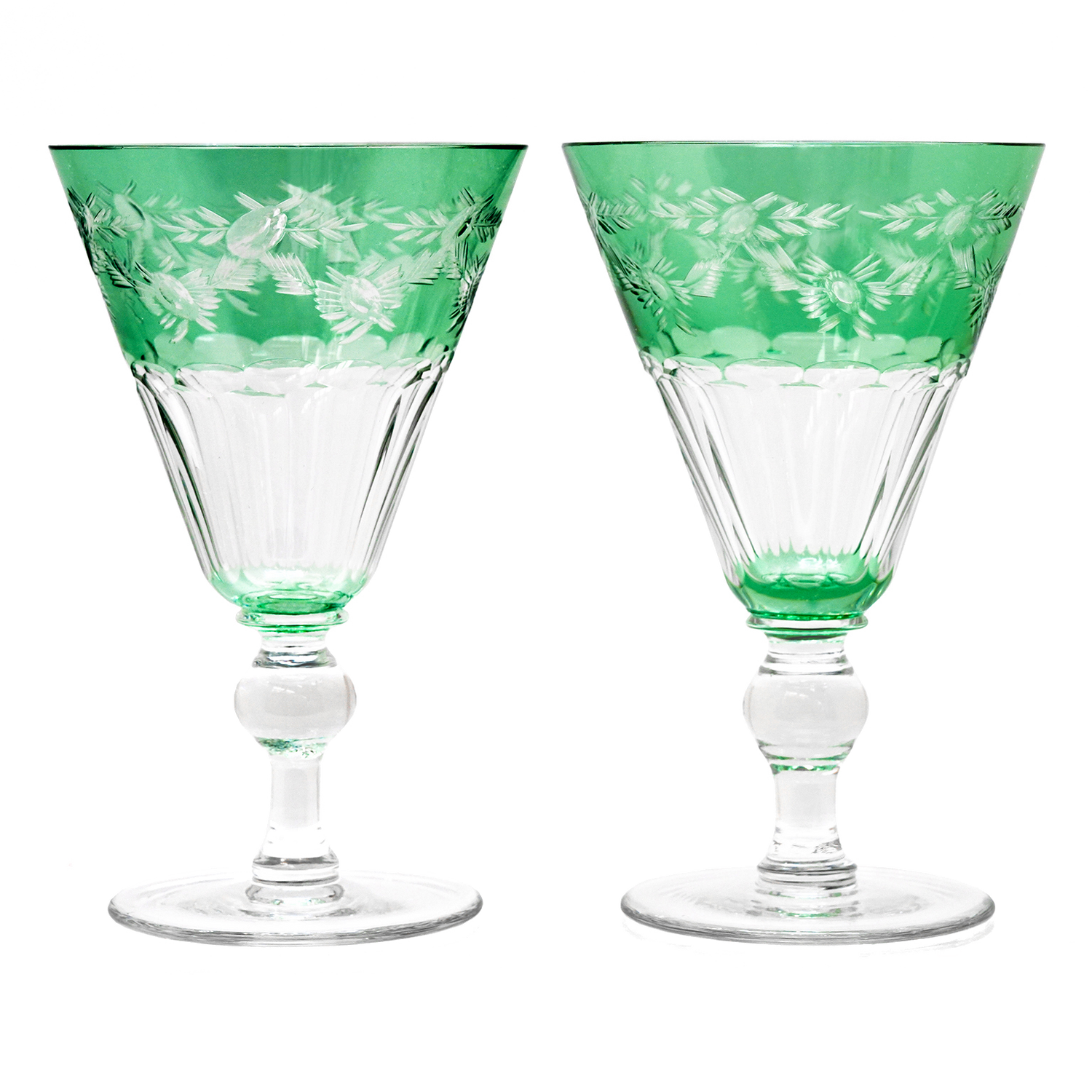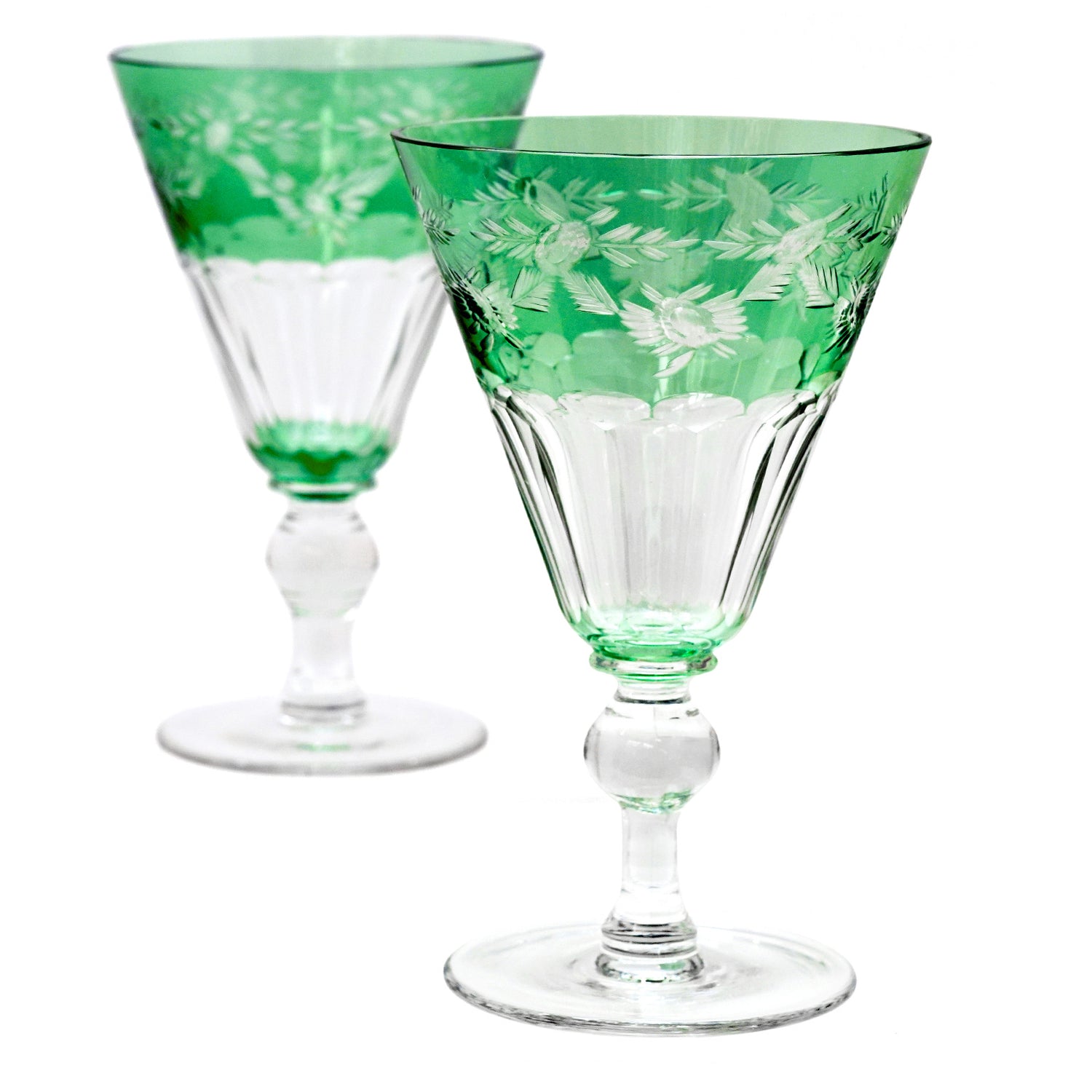 #24282 - 16 Green Cut Crystal Water Goblets by Sinclaire