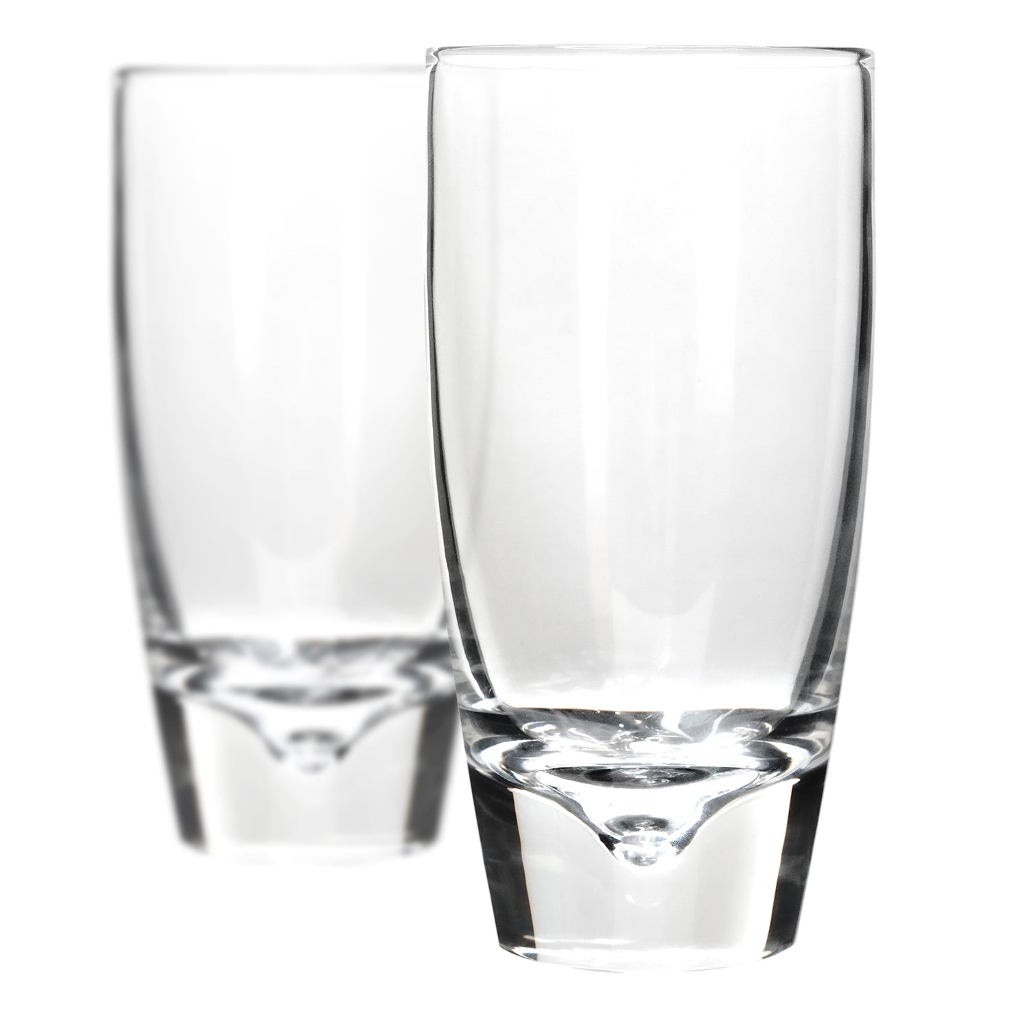 Circa 1950/60s, by Steuben, American. This understated set of Steuben water tumblers are the perfect addition to your modernist bar, kitchen, or table service. Sleek and pleasantly hefty in the hand, these glasses quickly remind us why Steuben set the standard in American glassware! Excellent condition.