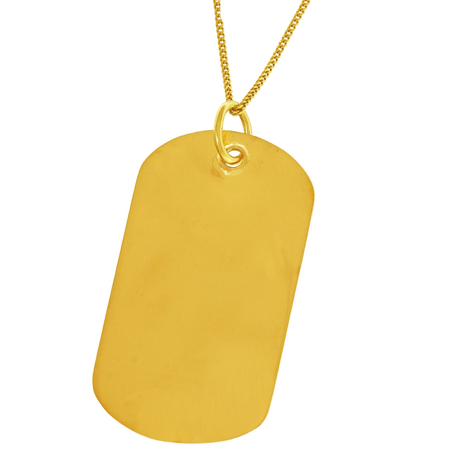 Circa 1970s, 18k. This seventies chic all-gold Dog-Tag is never-take-it-off style. Talismanic, mystic, tailored, beachy. You choose ... wear it effortlessly anywhere and everywhere.  An un-engraved example, this gold tag is in excellent condition.