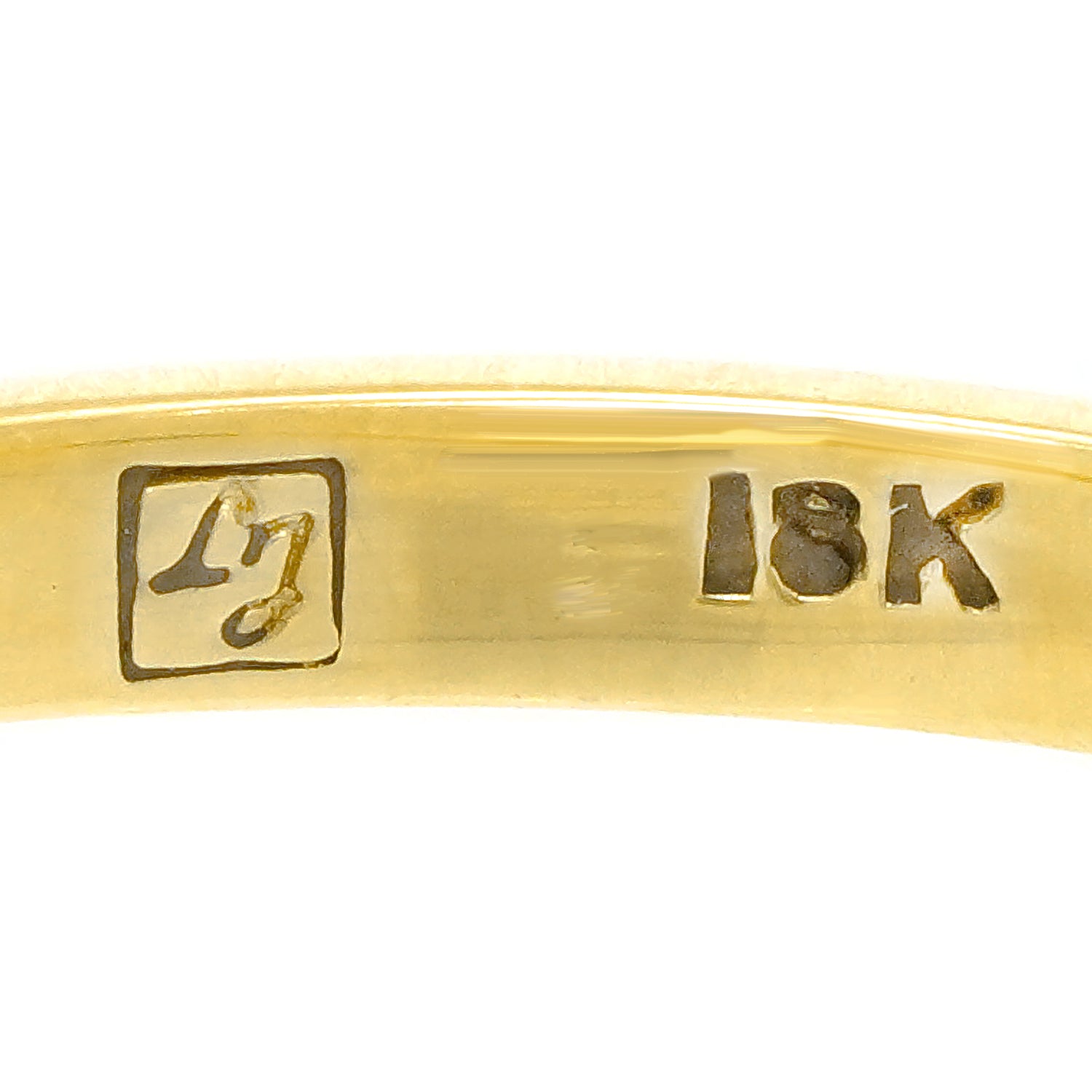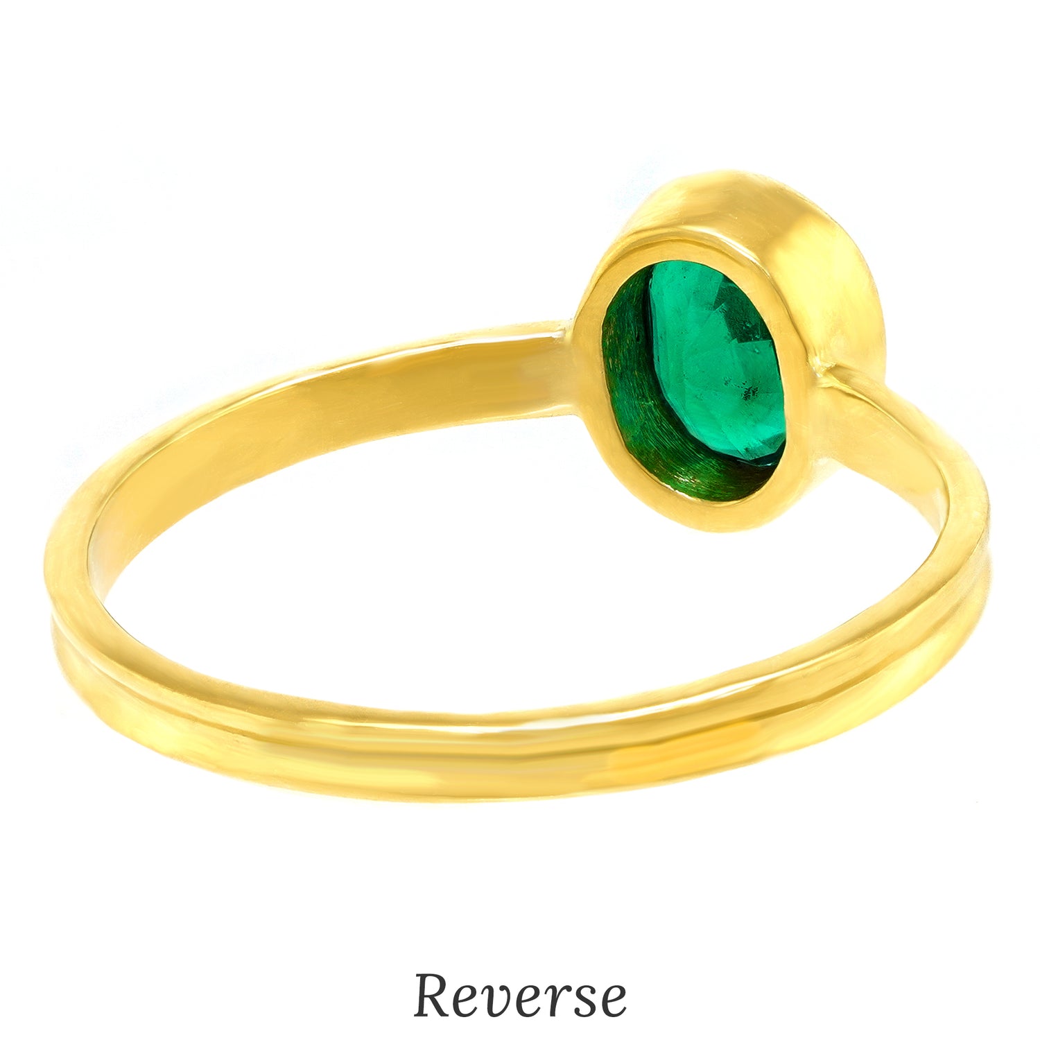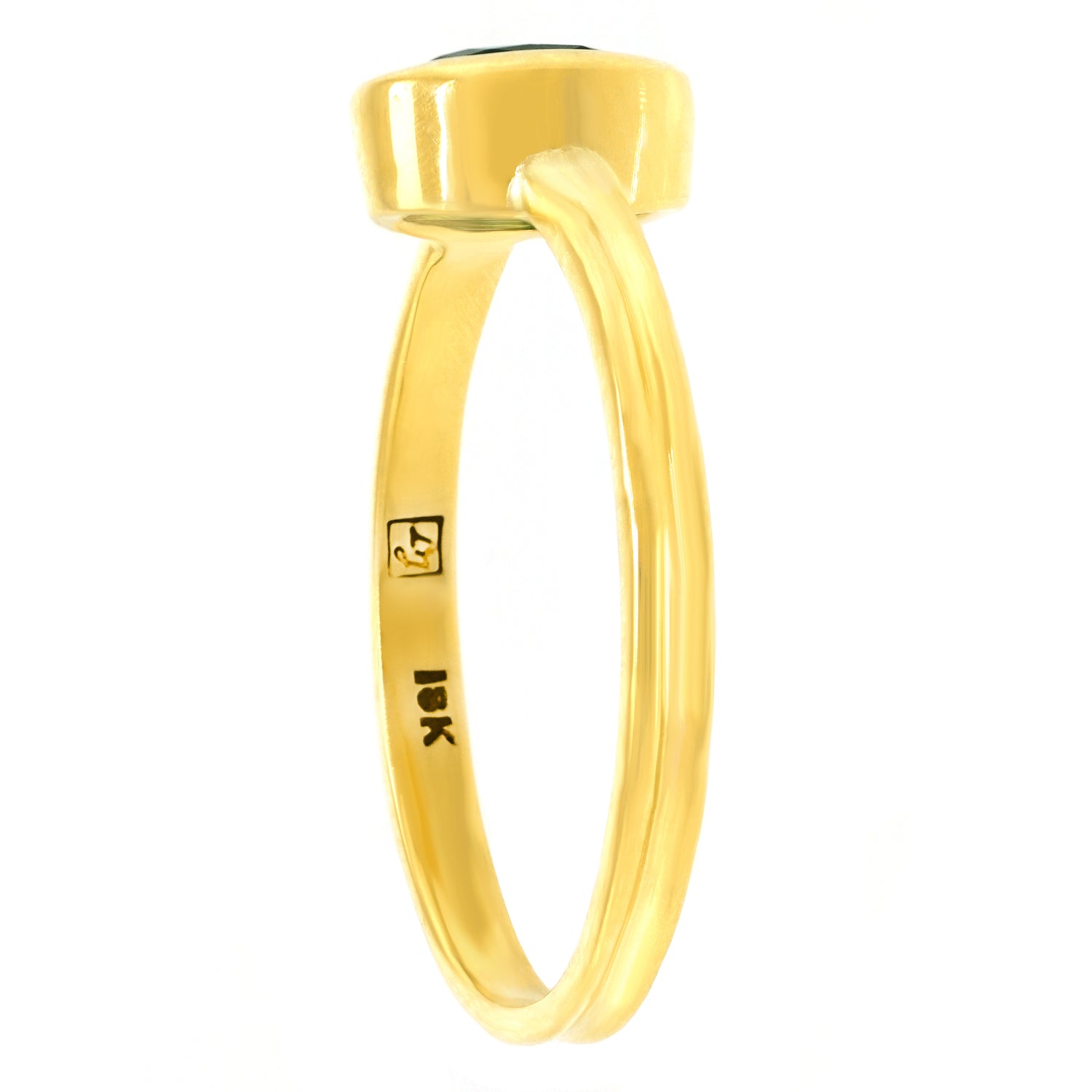 Circa 2000s, 18k, American. The .95 carat emerald in this fabulous ring has a lively, vivid color. Its sleek postmodern design is perfect for today's understated, offhand chic. Meticulously made in 18k yellow gold, it is in excellent condition.