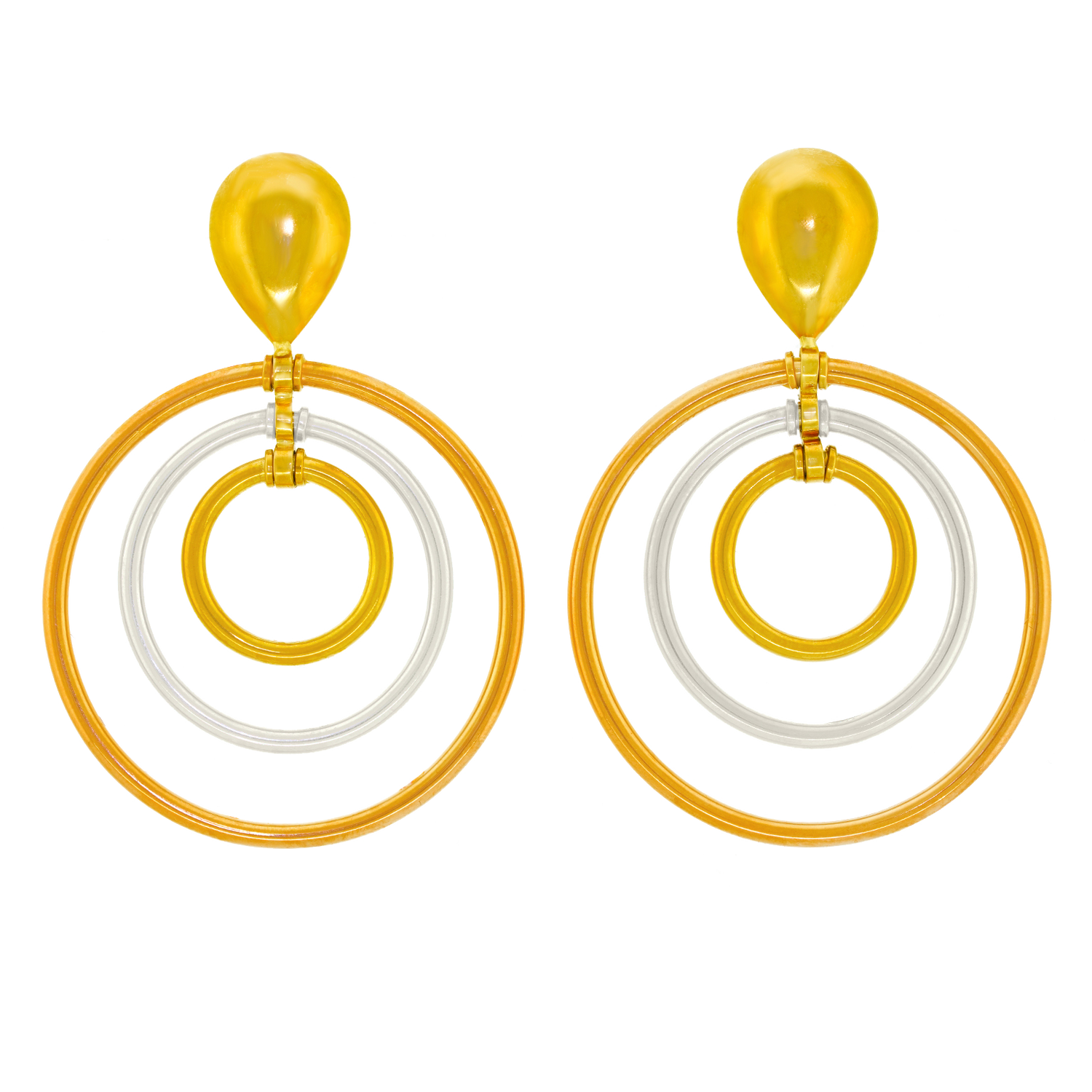 Circa 1990s, 18k, by Le Gi, Venice, Italy. Brilliantly Italian with a spontaneous "life of the party" vibe, these Deco revival chandelier earrings are a WOW! Perfect for everyday or cocktail attire, they effortlessly dress up or down. Well made in yellow and white gold, they are easy to wear, (not too heavy), and in excellent condition.