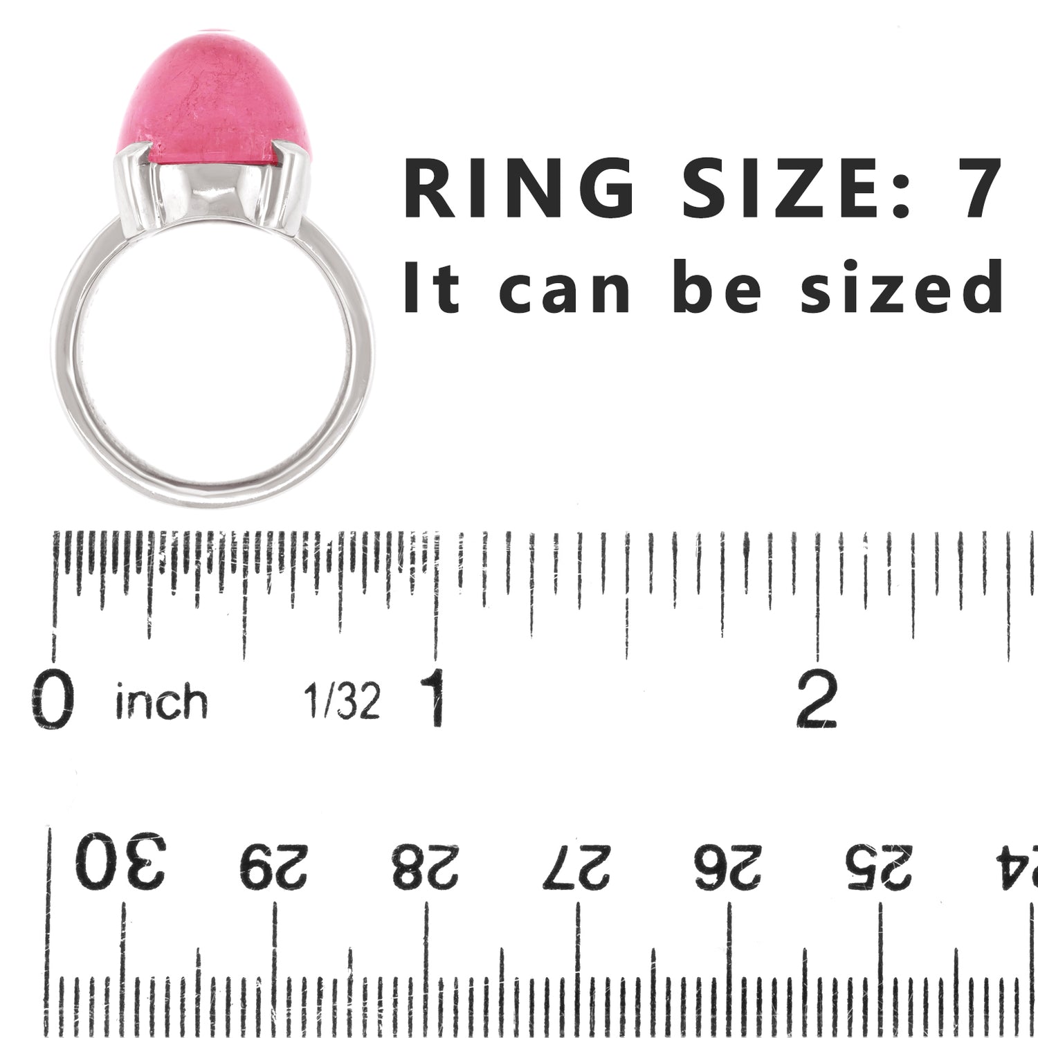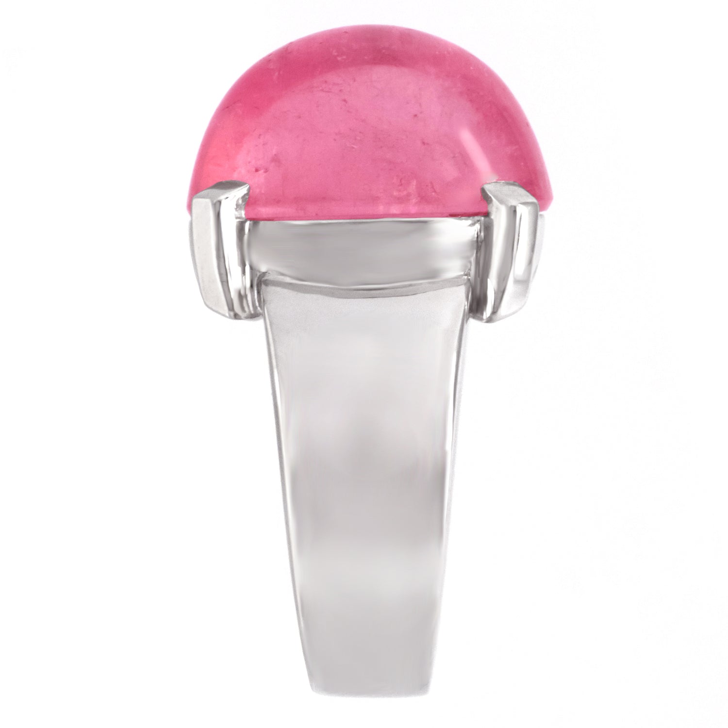Circa 1970s, 18k, Swiss. This Mod seventies ring is set with a cotton candy pink 18-carat tourmaline. The heavy, squared-off four-prong setting gives a cubist look, boldly juxtaposing the shape and color of the stone. Swiss ateliers are known for quality workmanship. This ring is no exception. Excellent condition.