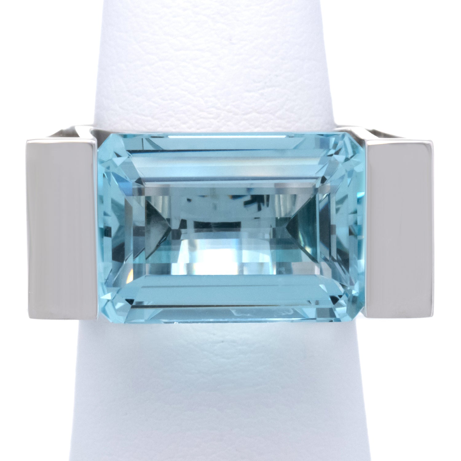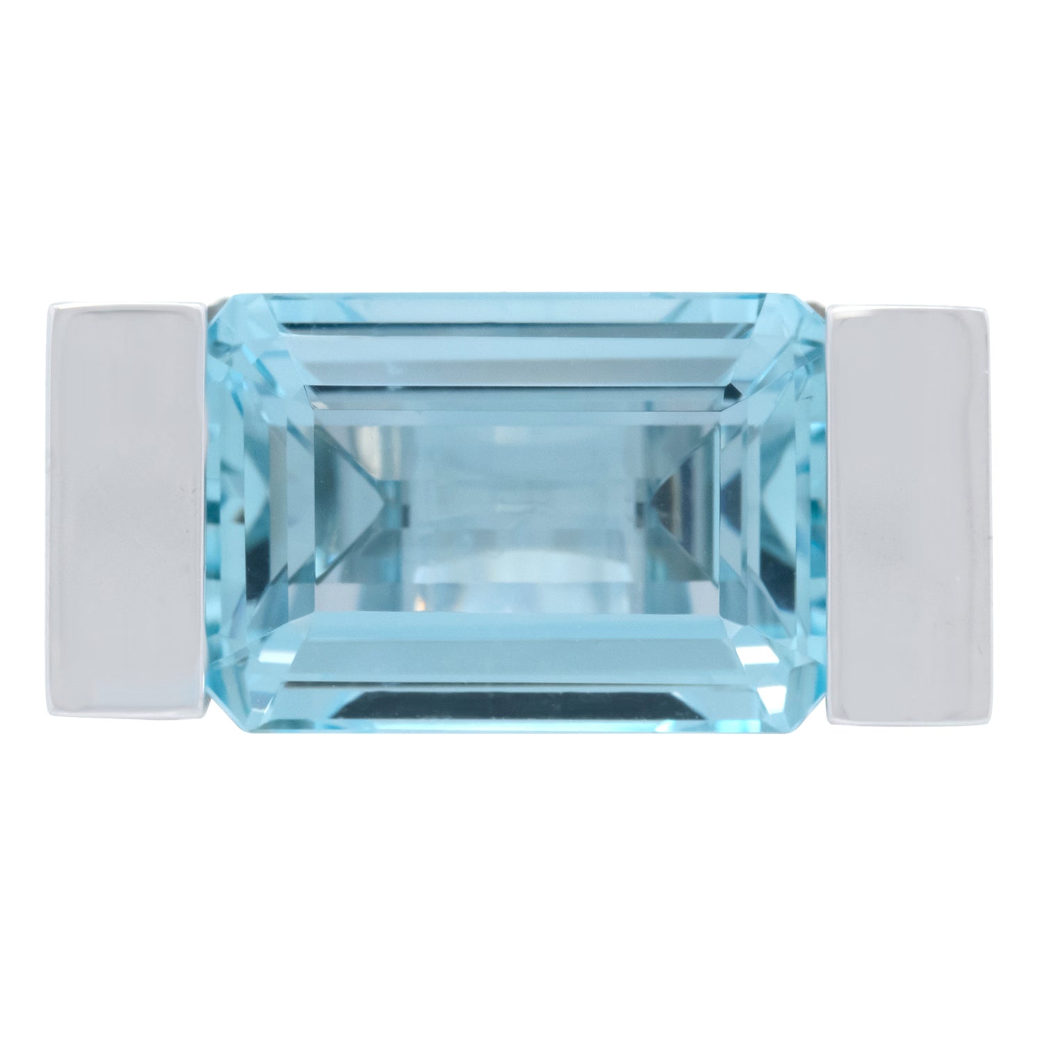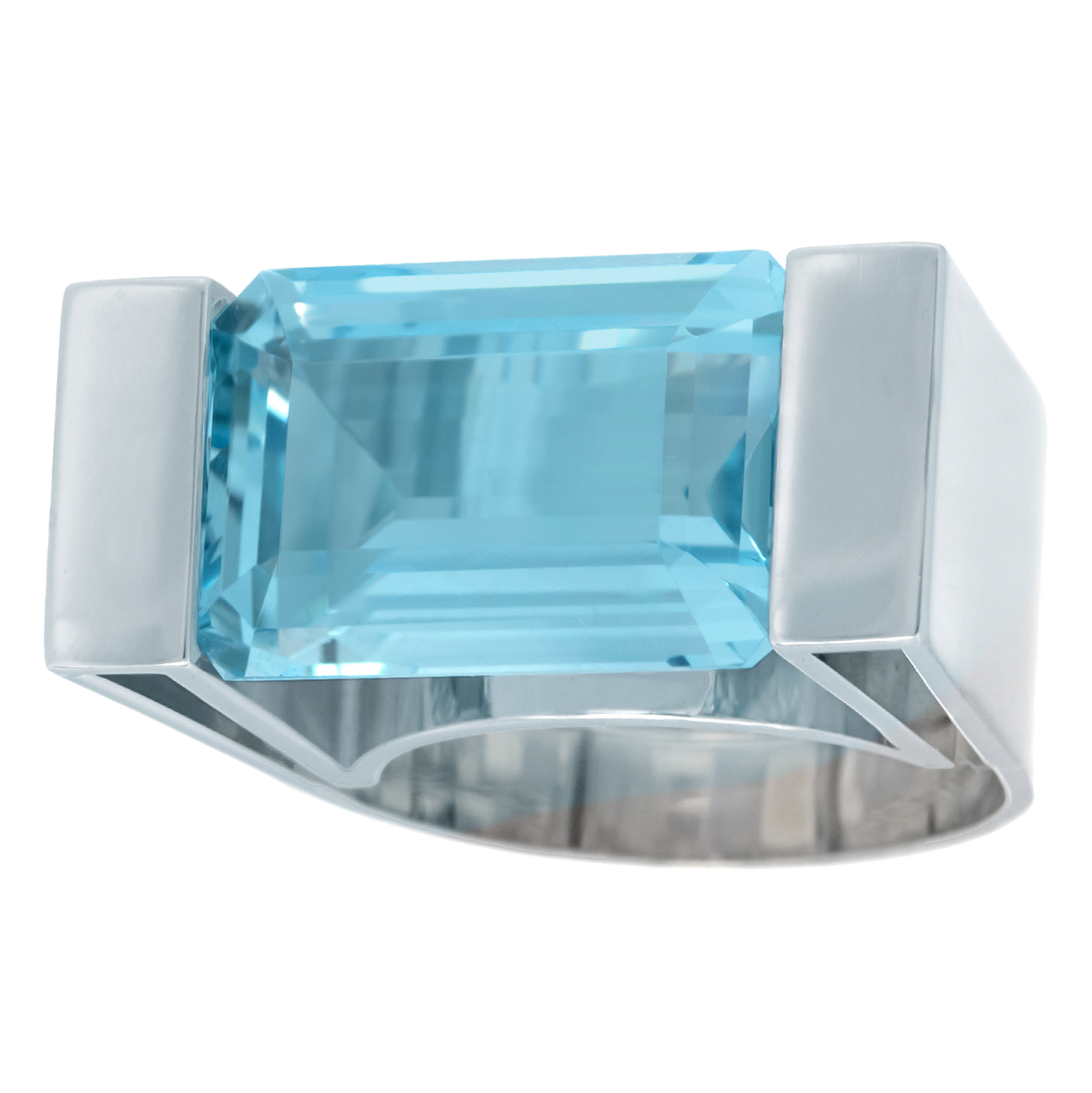 Circa 1960s, 18k, by Gunter Wyss, Switzerland. This one-of-a-kind ring by the revolutionary goldsmith Günter Wyss is a visual and technical marvel. Set with an intense blue aquamarine (12.0 carat), it is made from one continuous piece of 18k white gold. His designs and techniques were groundbreaking, but alas, his body of work is limited as he passed away at 37. Highly sought after by museums and collectors alike, this piece is in excellent condition.