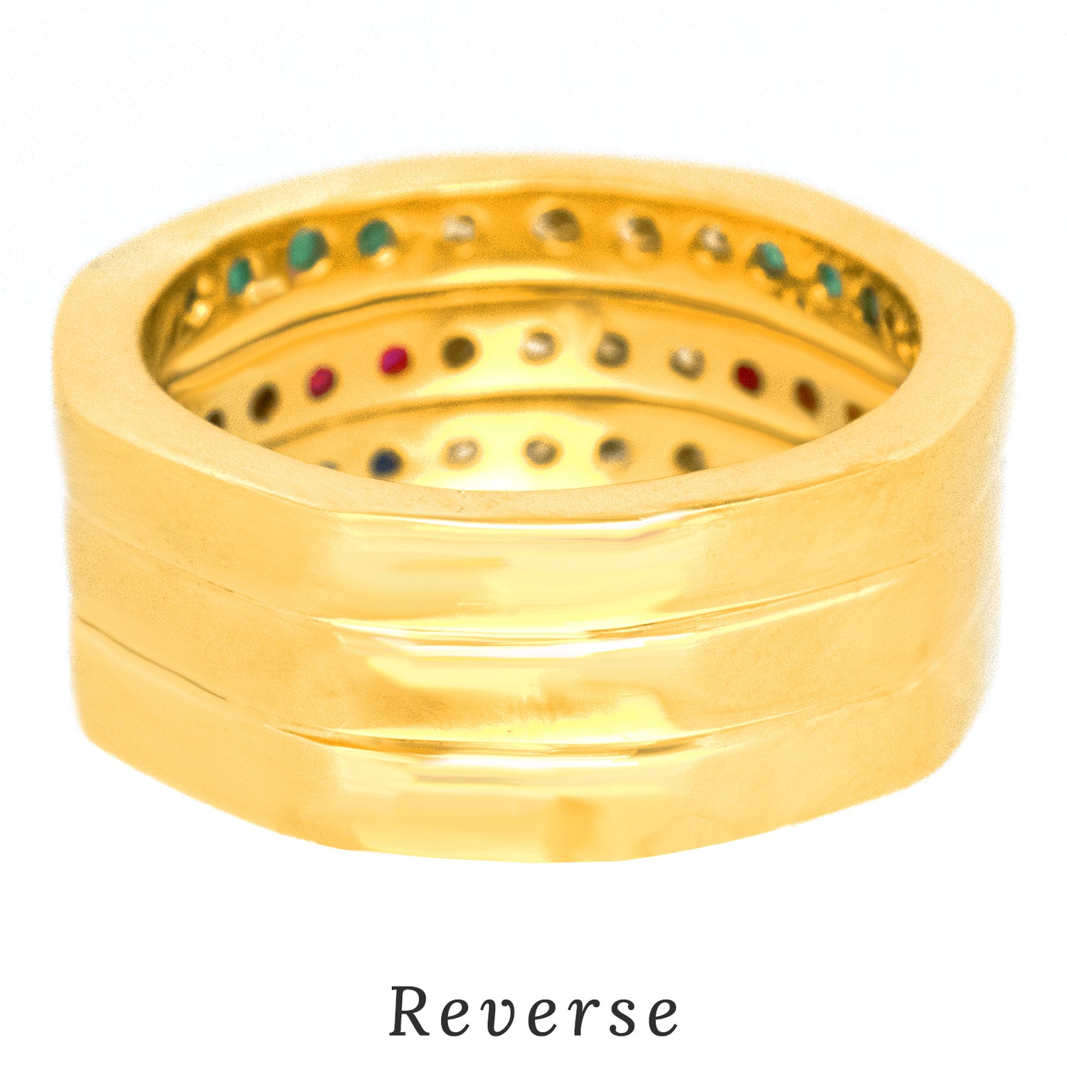 Stones: .24 carats total weight of G color, VS clarity diamonds, .23 carats total weight of sapphires, .23 carats total weight of rubies, and .16 carats total weight of emeralds