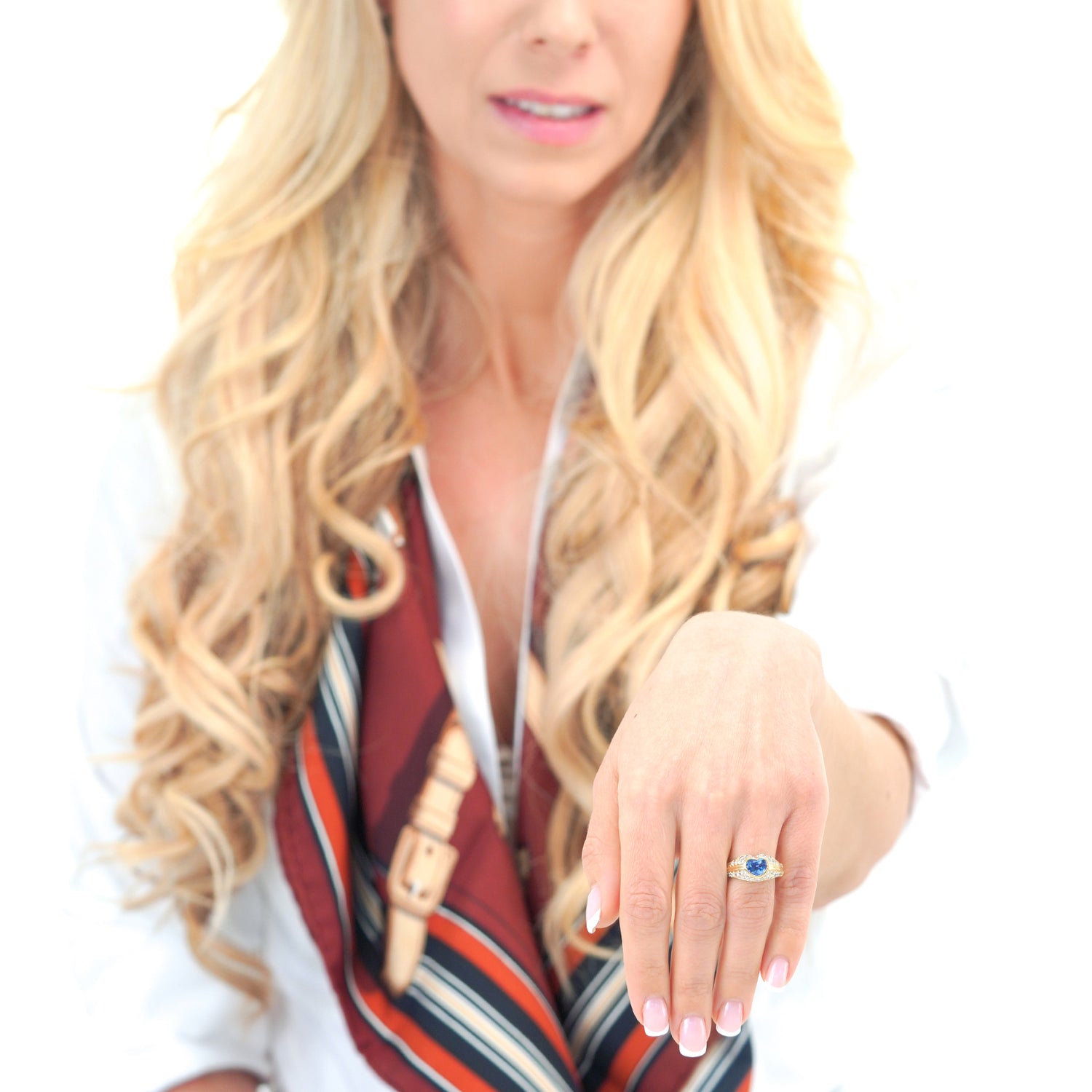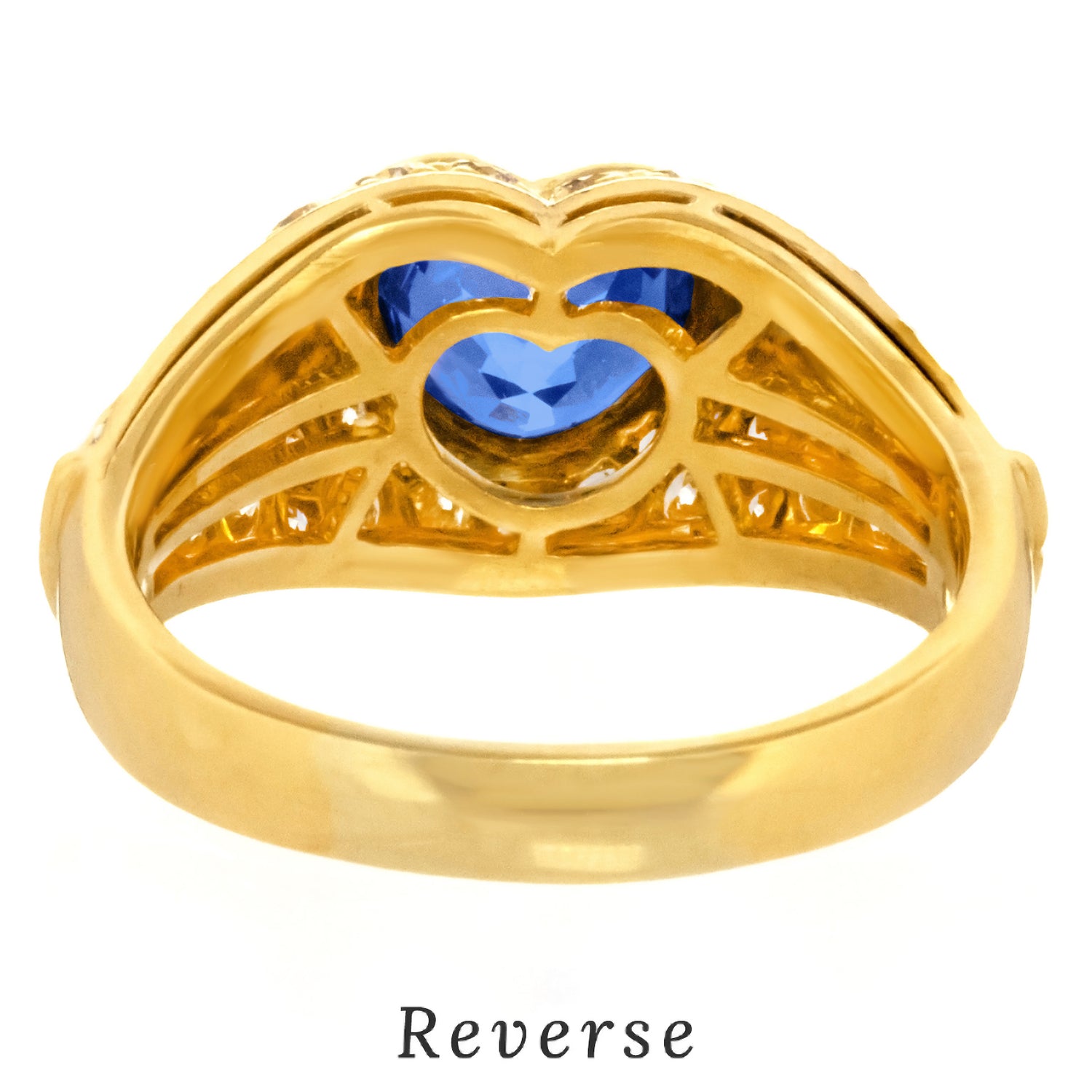 Stones: 1.40 carat heart-cut sapphire and 1.0 carats total weight of G color, VS clarity diamonds.