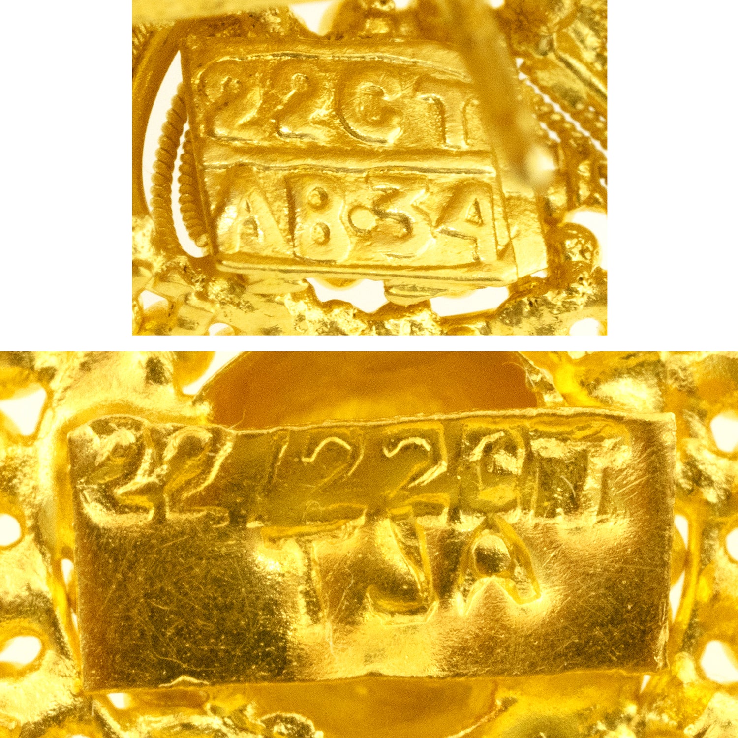Hallmarks: 22ct and A834, also 22/22ct and TJA