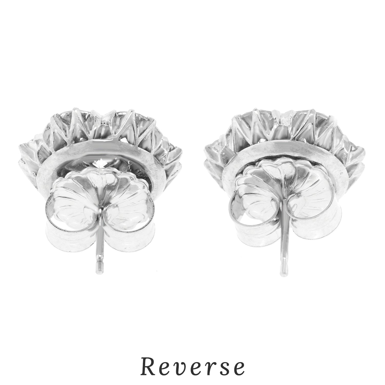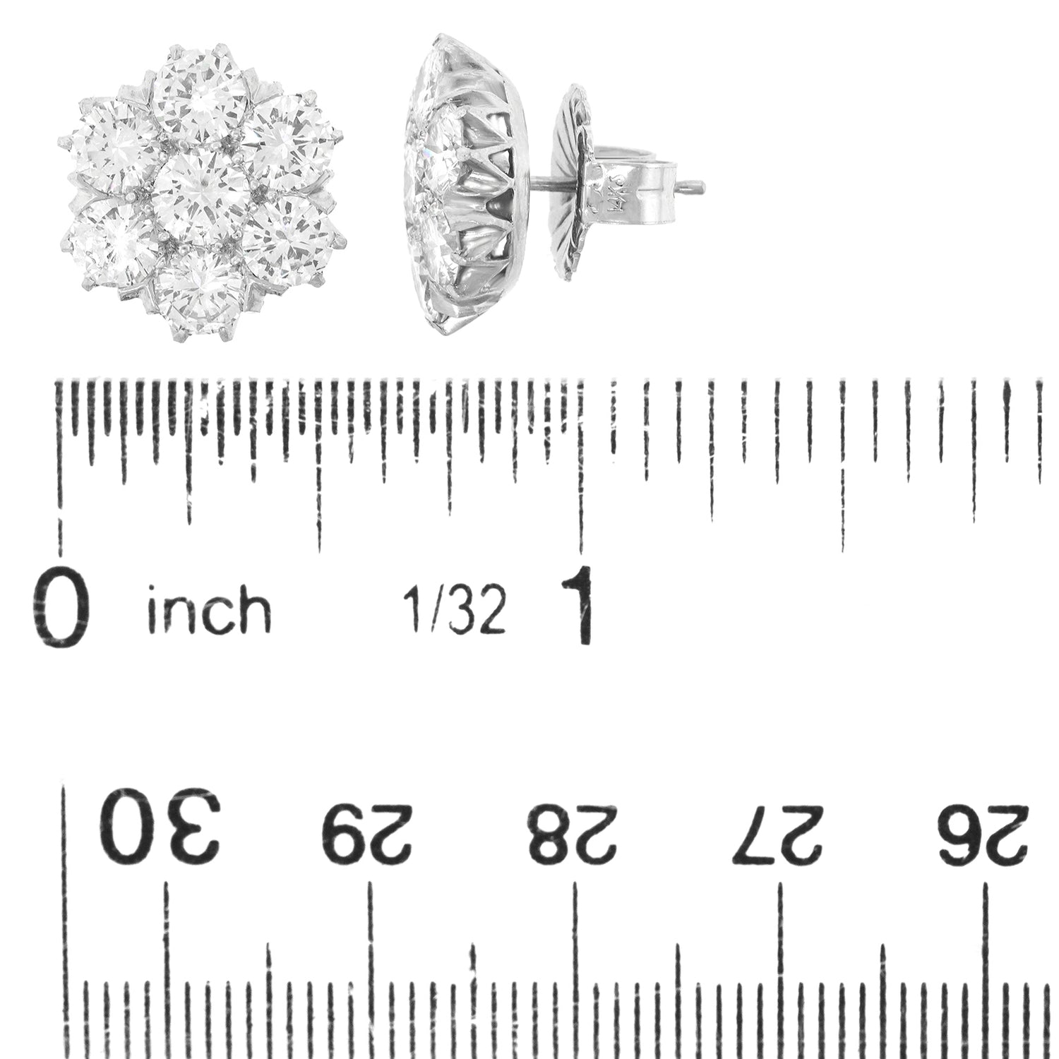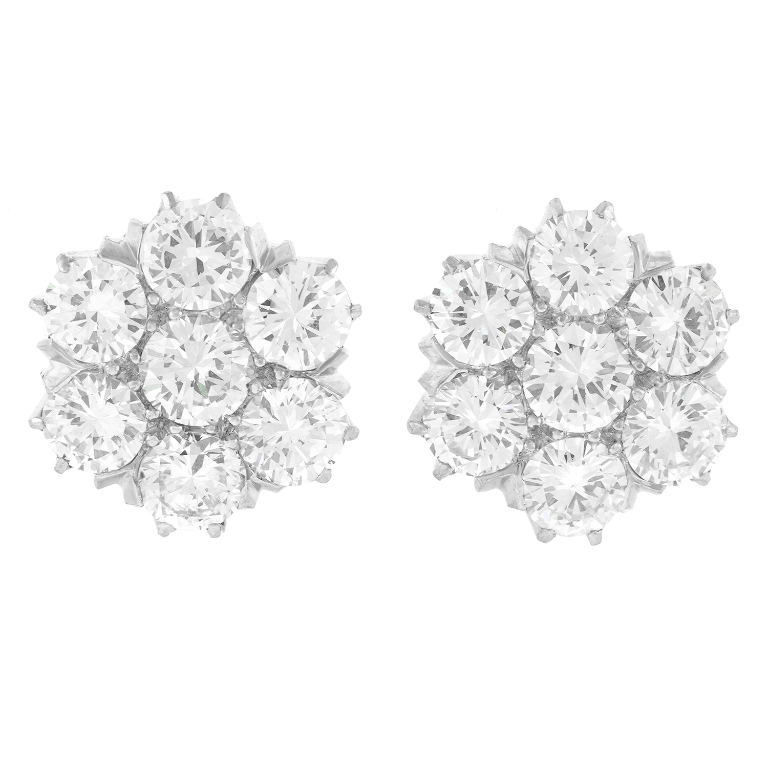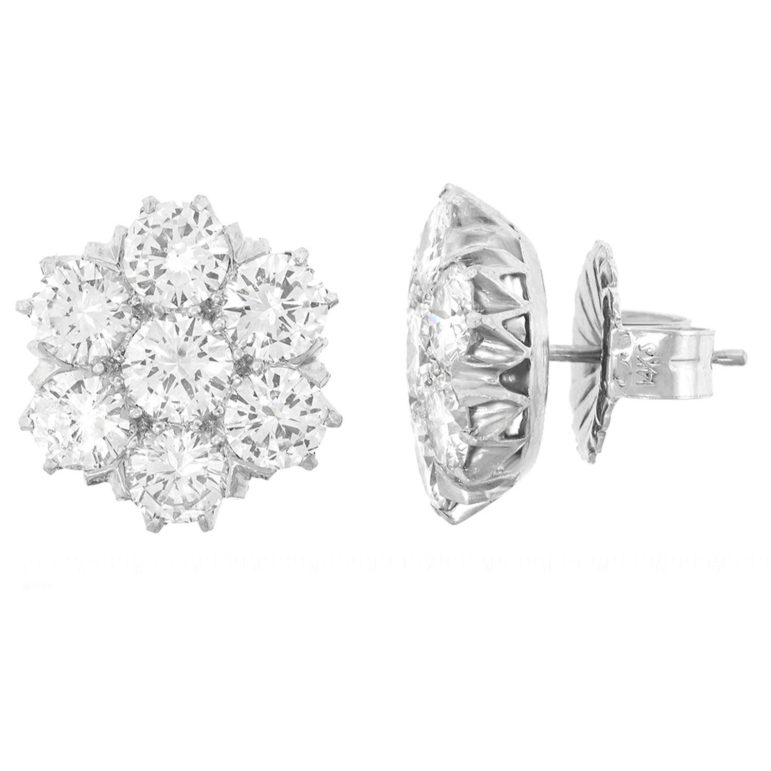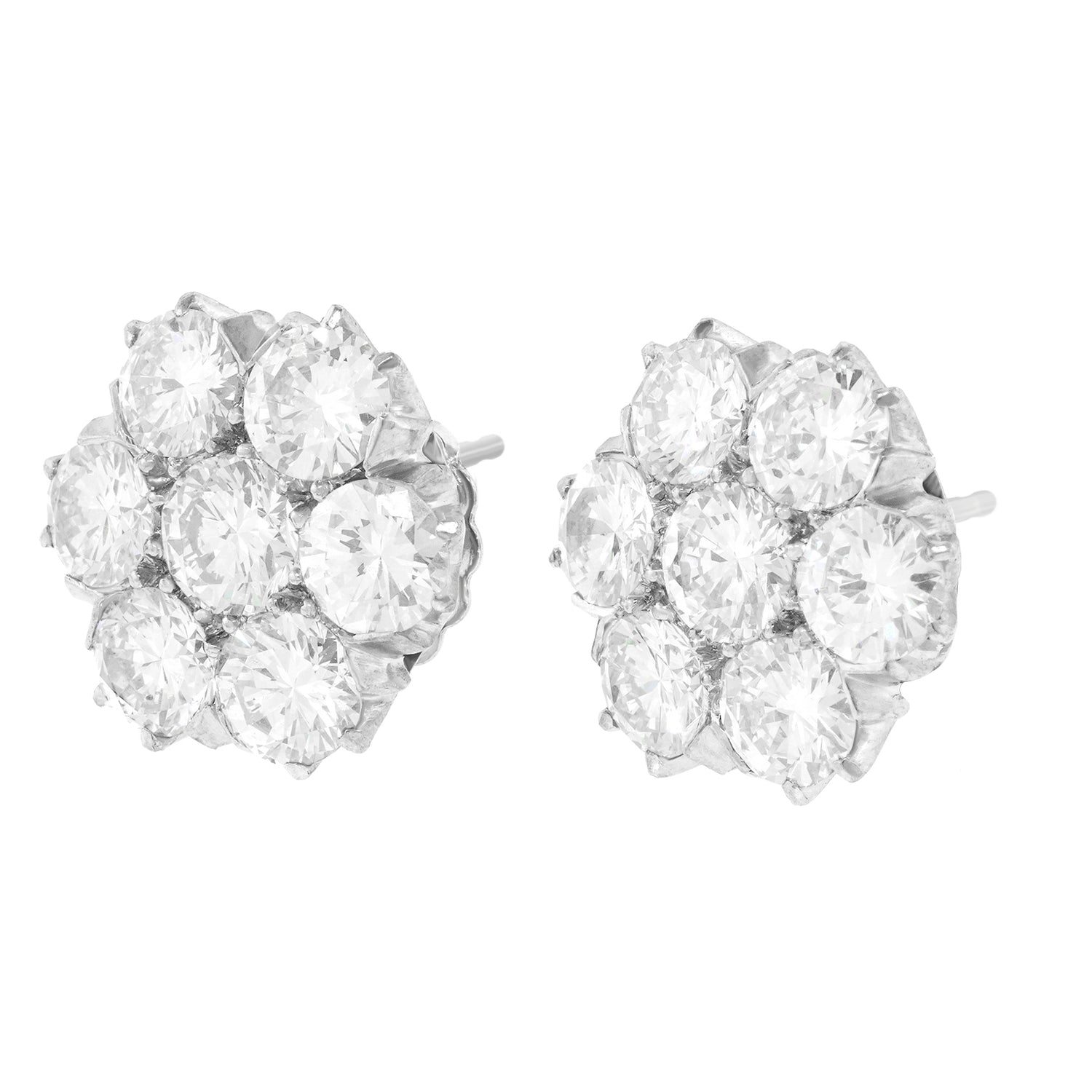 Circa 1950s, Platinum, American. These spectacular diamond fleurette earrings are set with 5.0 carats of superb white stones (F-G color and VS clarity). Very generous in size, they dress up or down with ease, their elegant look as at home with heels and jeans as with a little black dress. Finely hand-fashioned in platinum, they are in excellent condition.