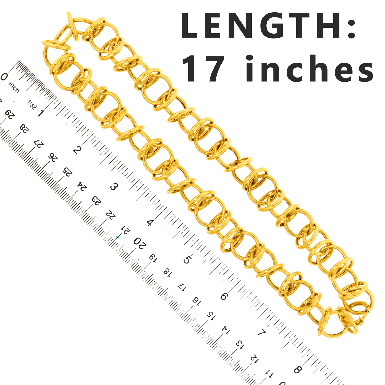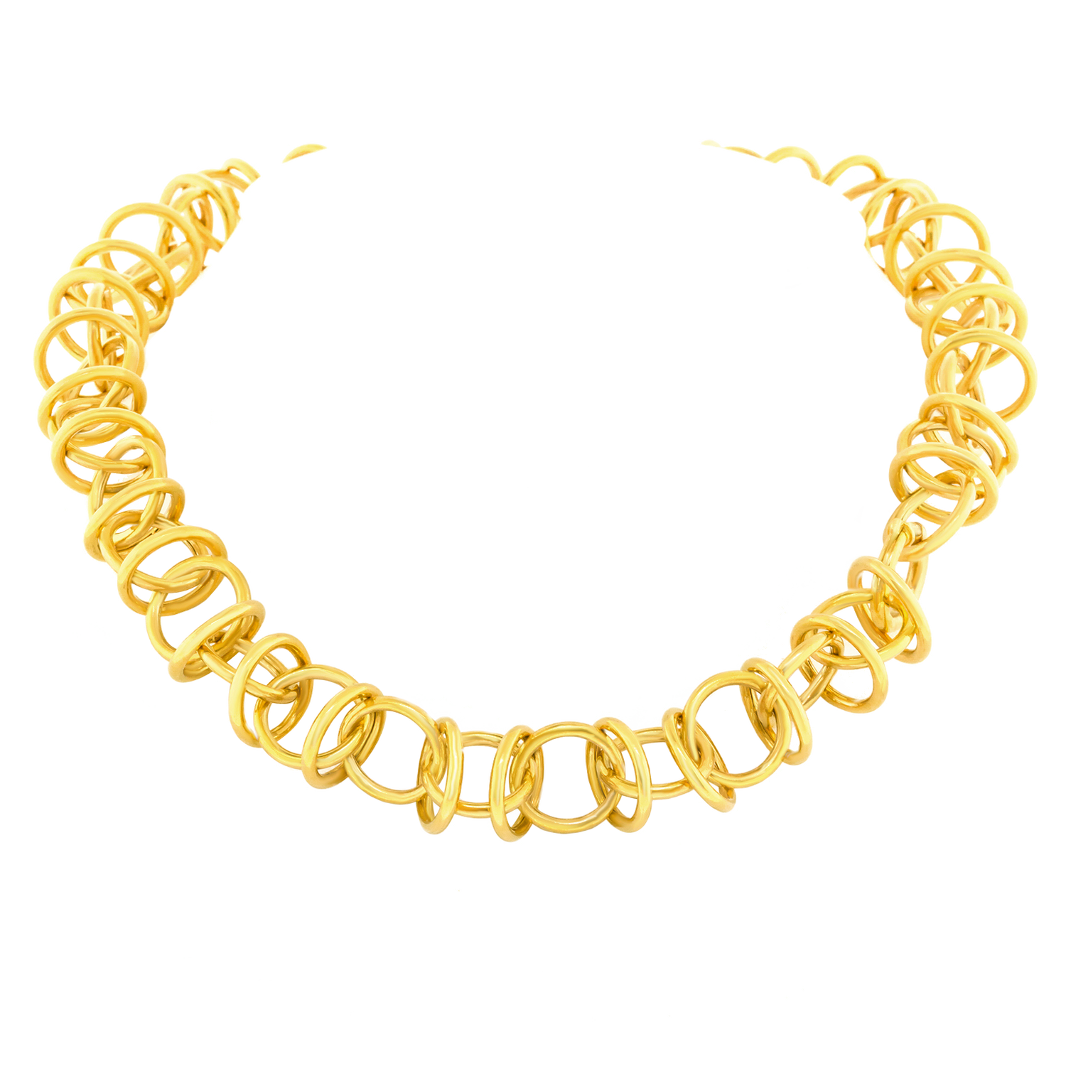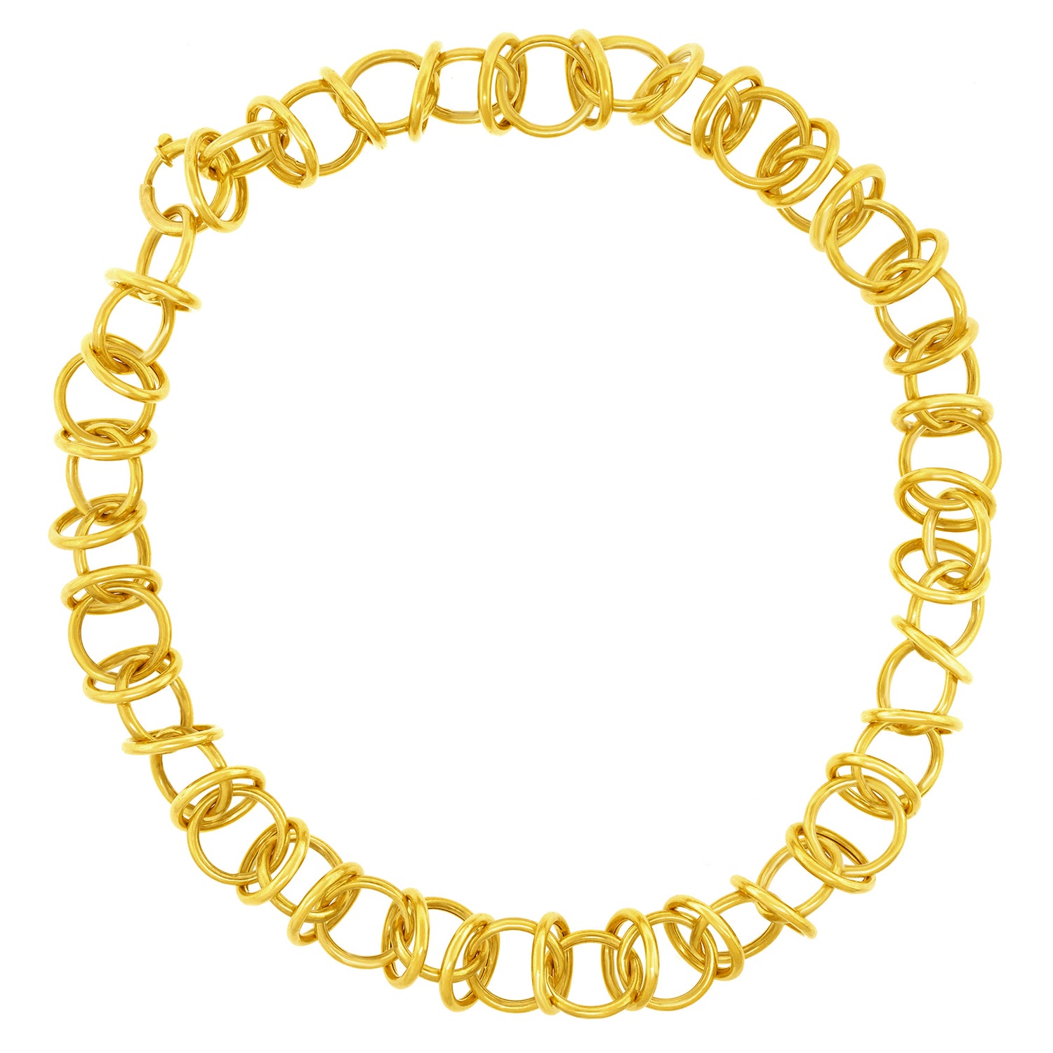 Circa 1980s, 18k, by Paloma Picasso for Tiffany & Co., New York. This necklace is everyday American girl cool. The confident good looks, unique design, and Artistic élan are the genius of Paloma Picasso. Brilliantly well made, yellow gold is a genre that Tiffany excels at. Paloma Picasso and Tiffany are matchless together! Excellent condition.