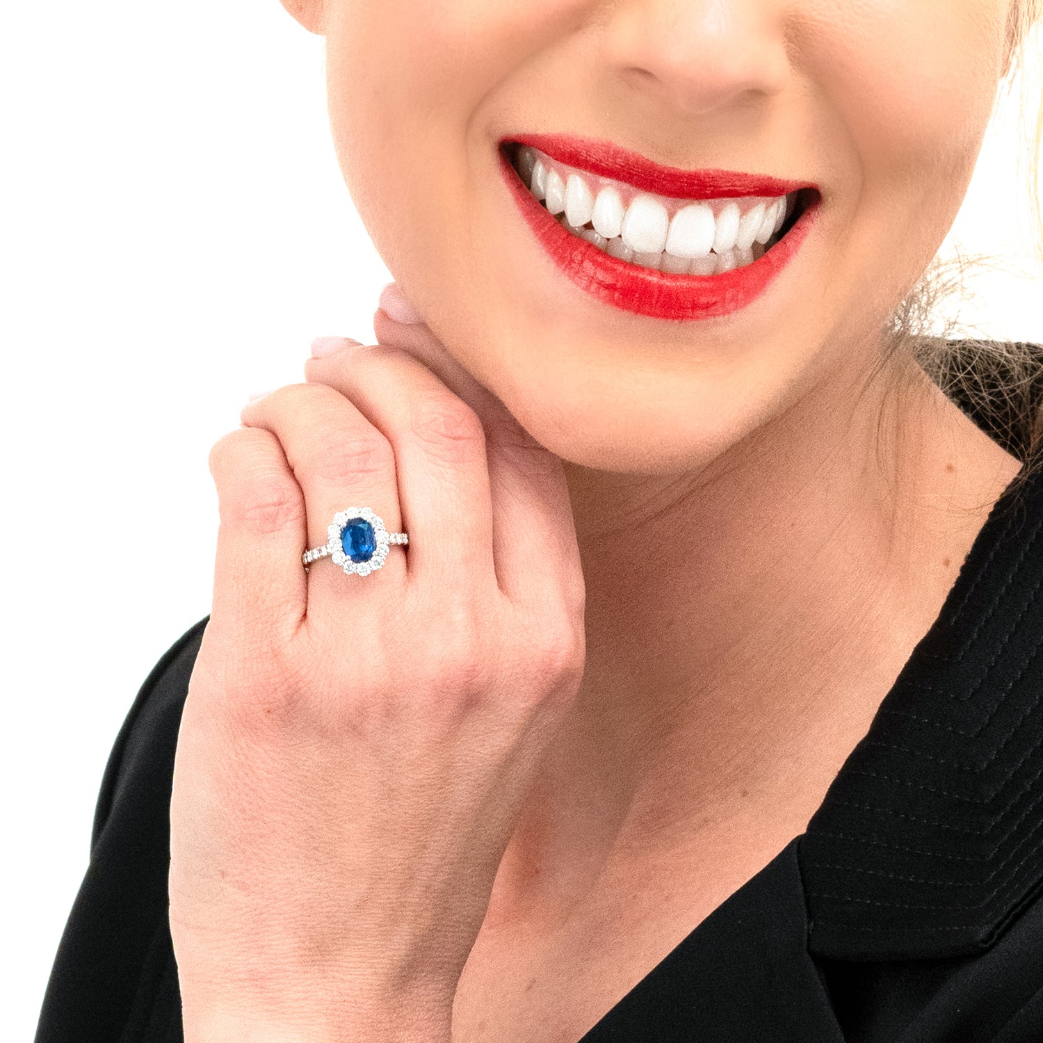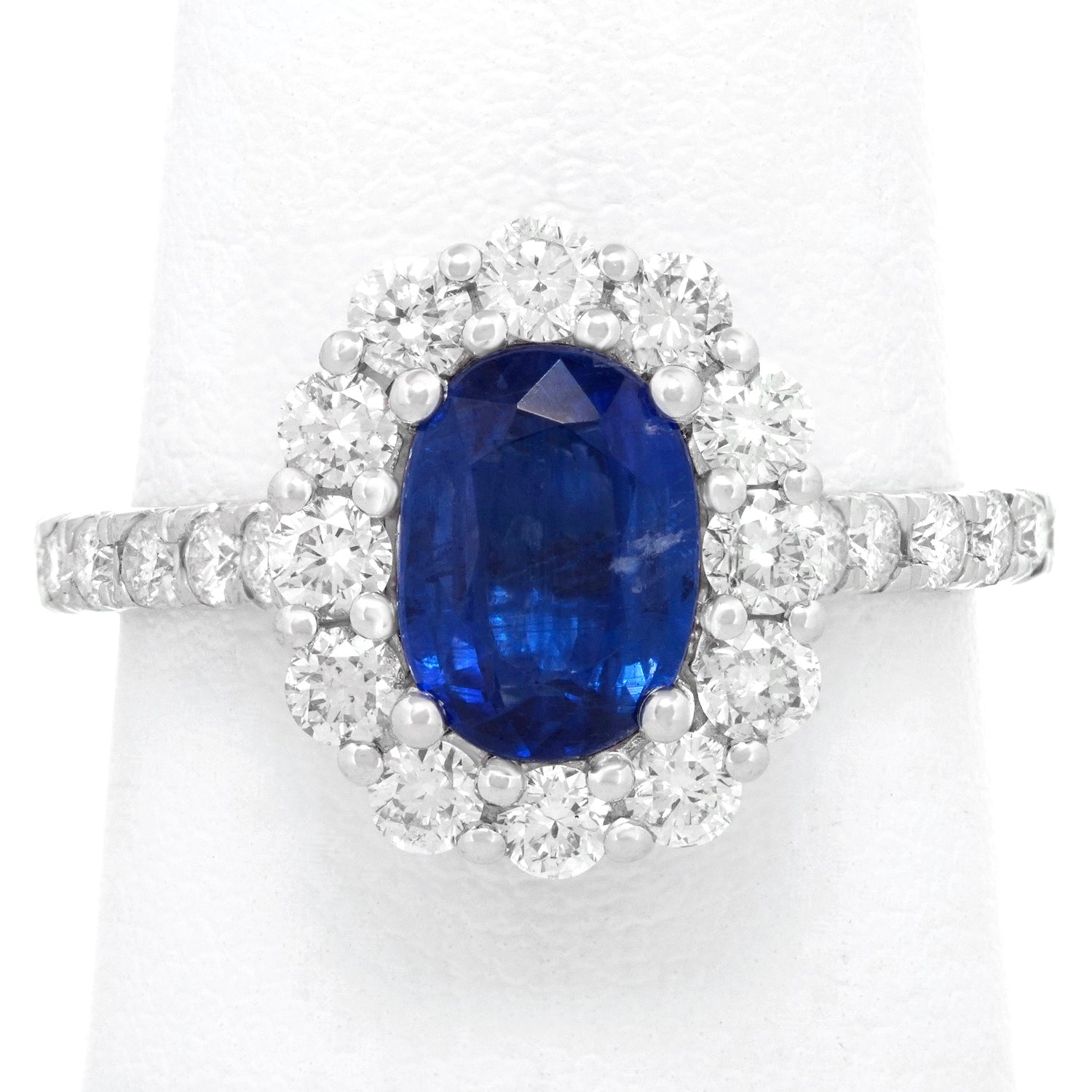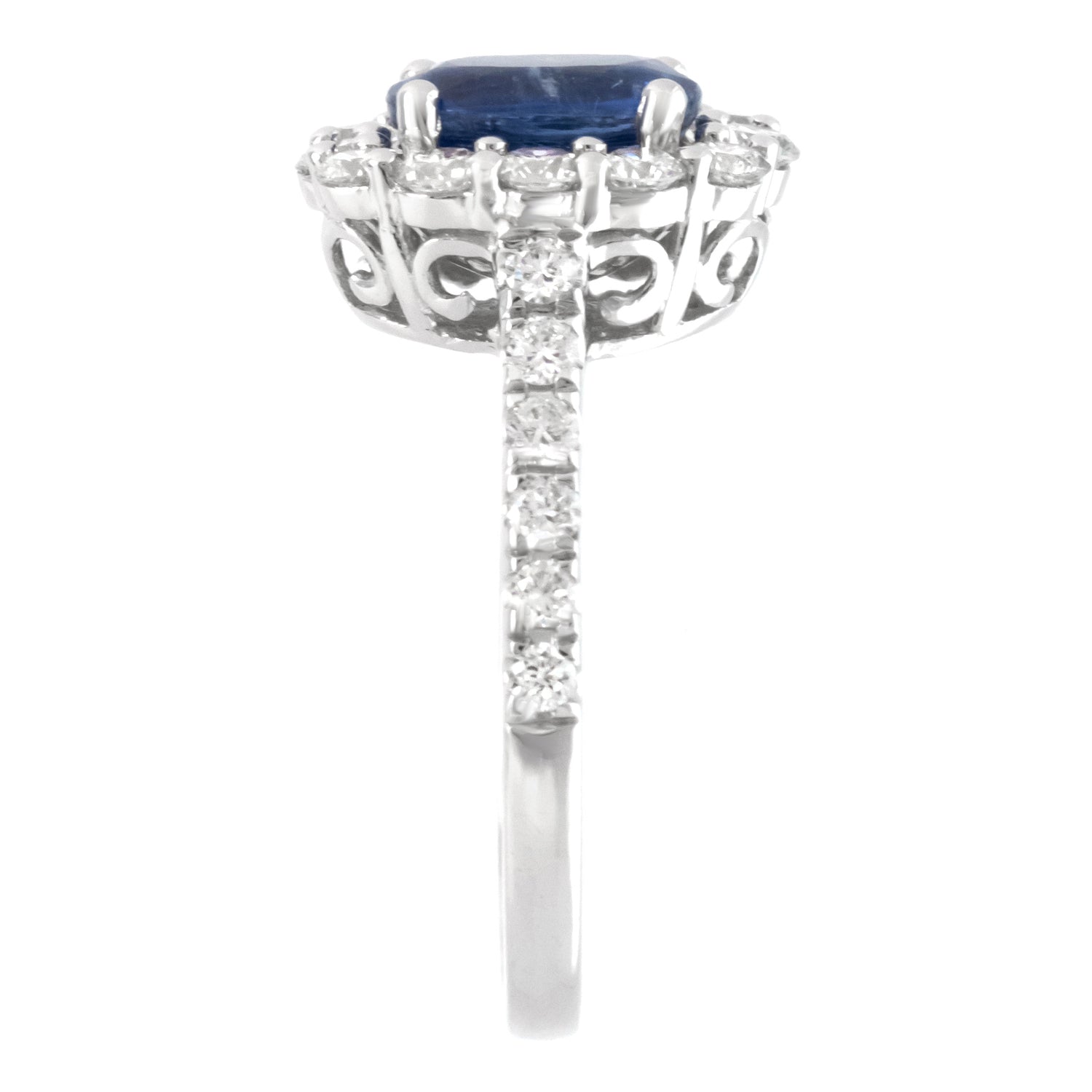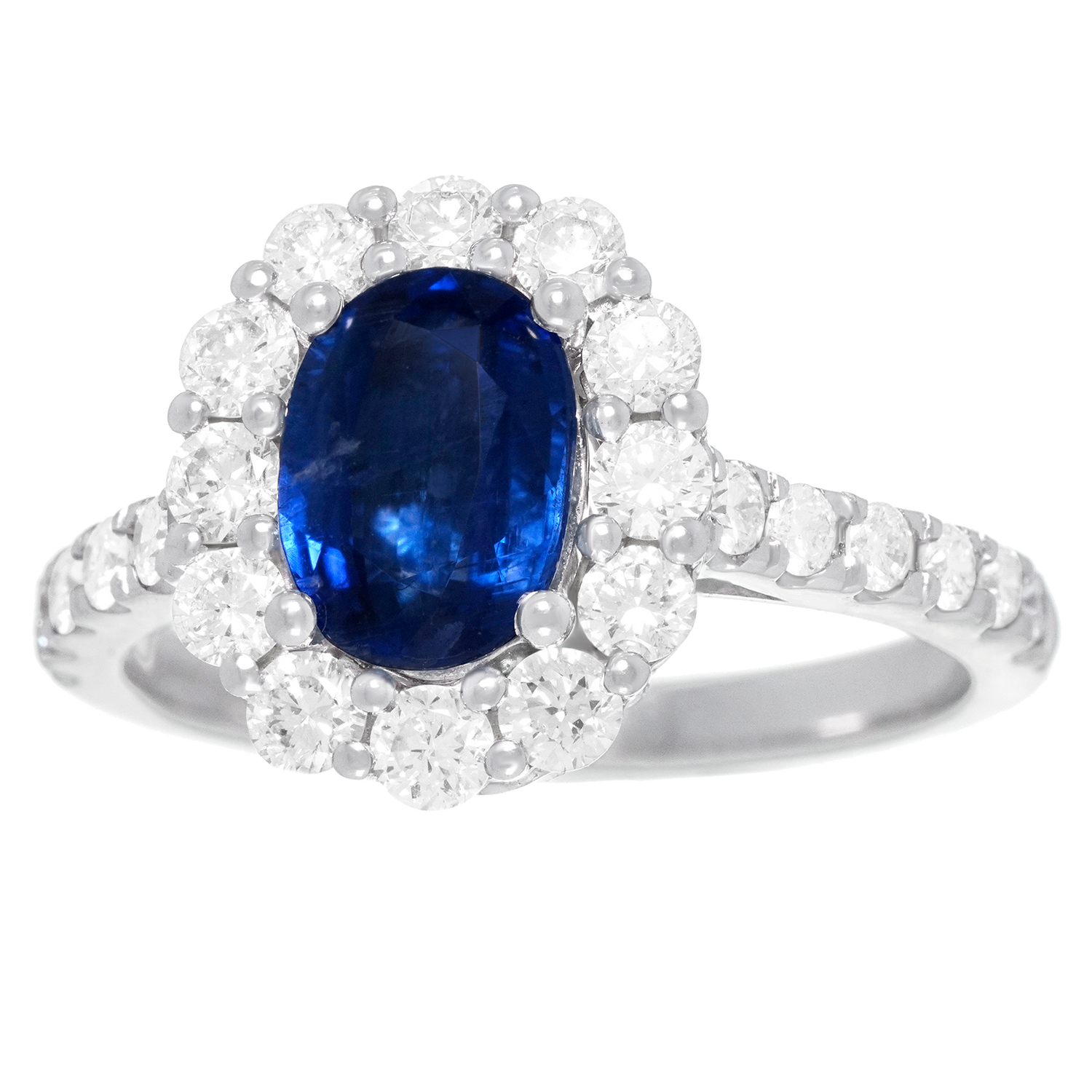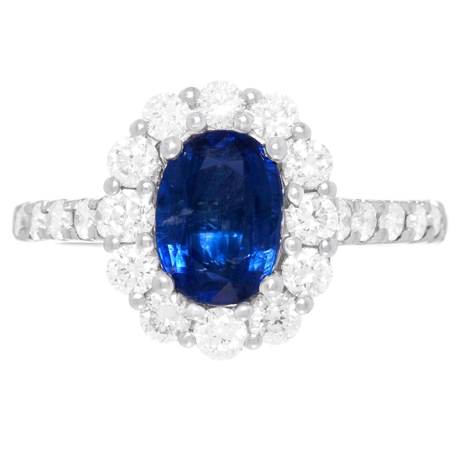 Circa 2000s, 18k, by Kallati, America. Surrounded by .94 carats of fine white diamonds (G color and VS clarity), the main drama of this ring is the vivid 2.0-carat royal blue sapphire. Stunning from every angle, this ring is a perfect never-take-it-off jewel. Meticulously fabricated, it is in excellent condition.