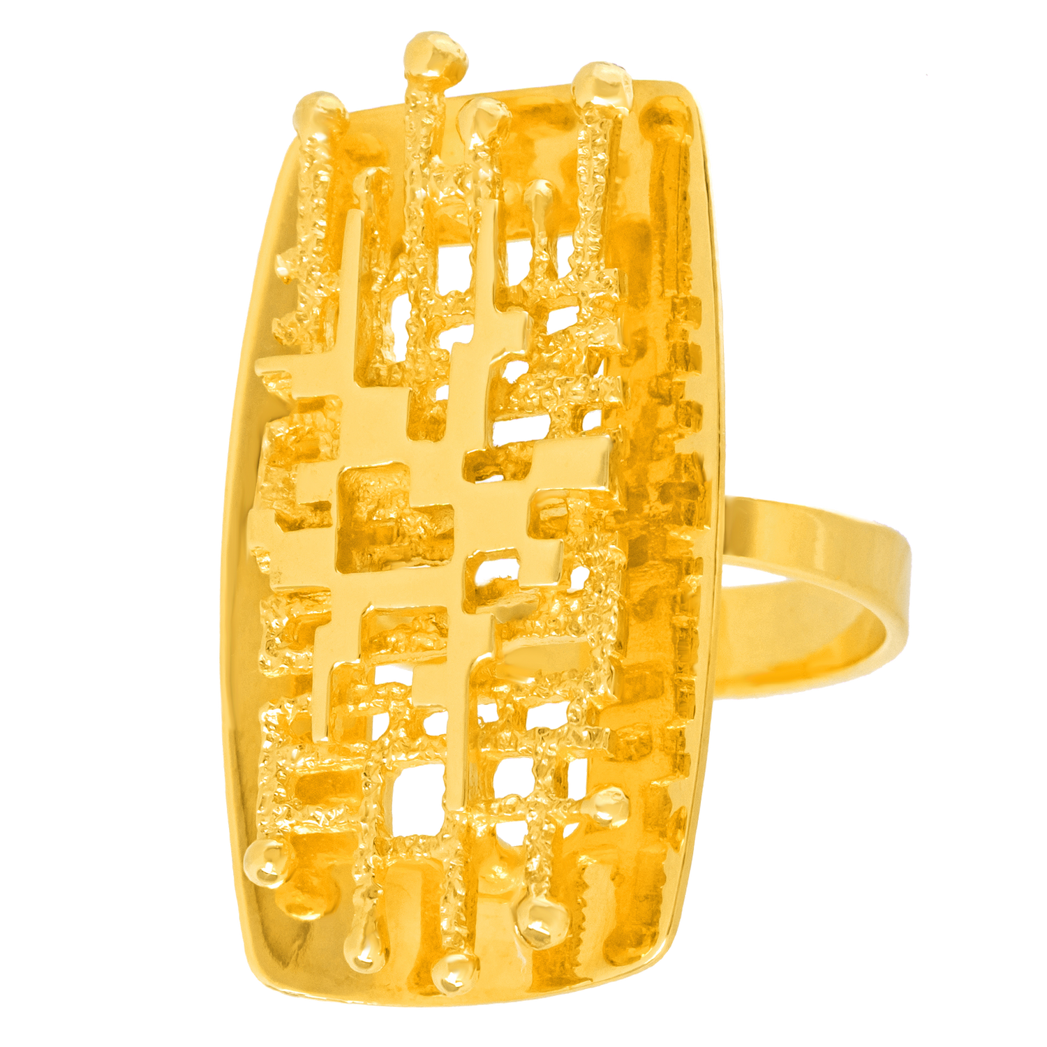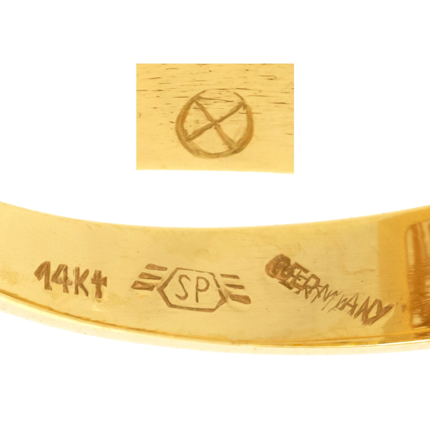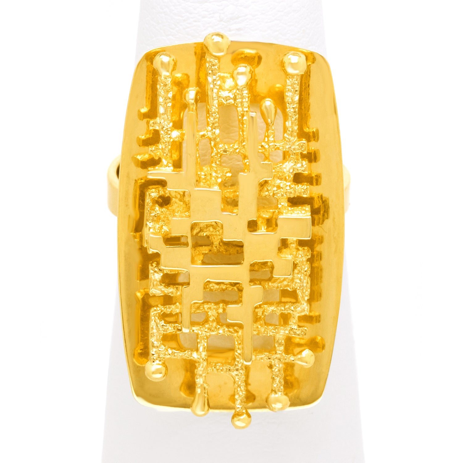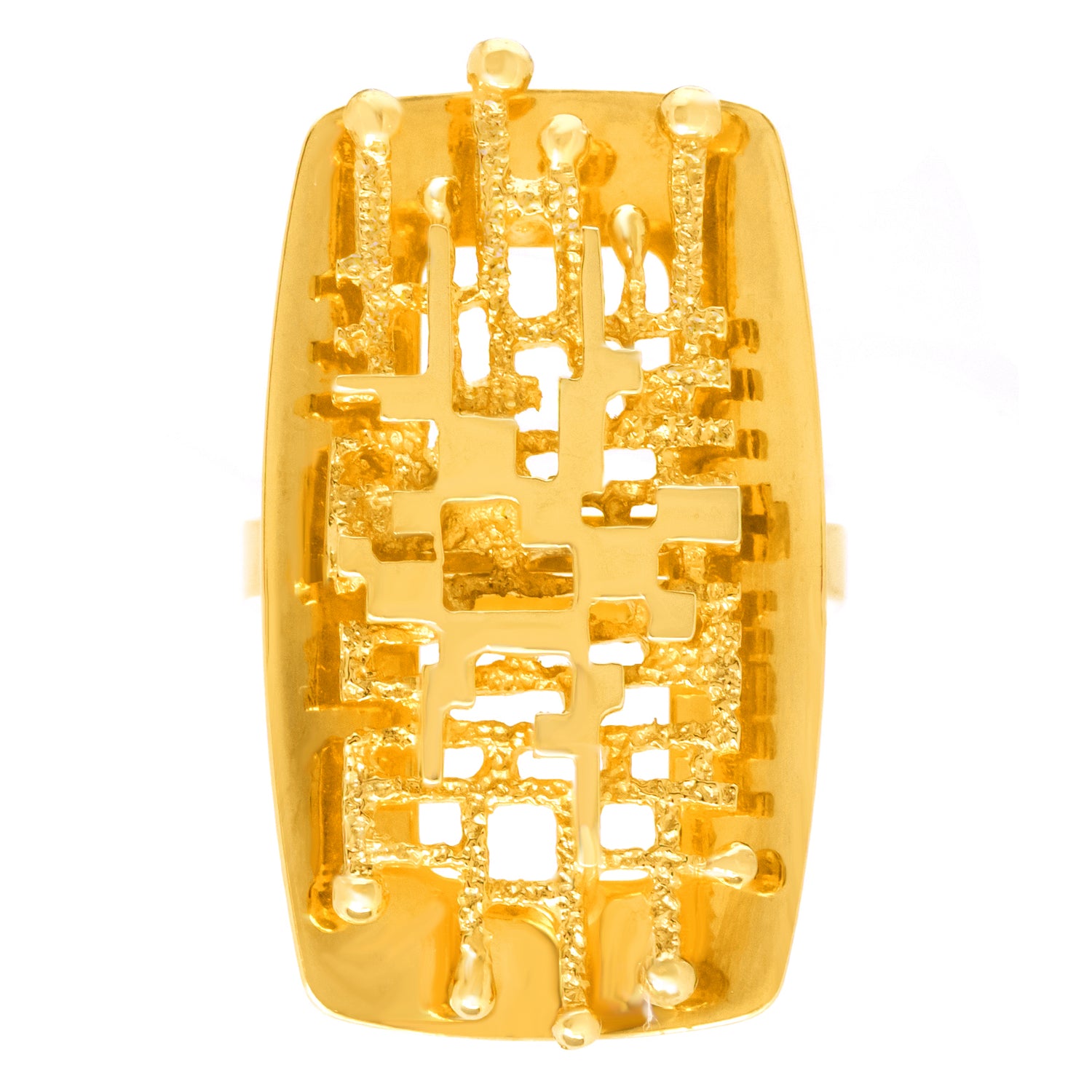 Circa 1970s, 14k, Germany. Modernism ruled the mid-century fashion world and this tasteful gold ring is a chic example. The abstractionist design is ever stylish. Perfect for everyday wear and memorable enough to become signature-style, this ring is in excellent condition.