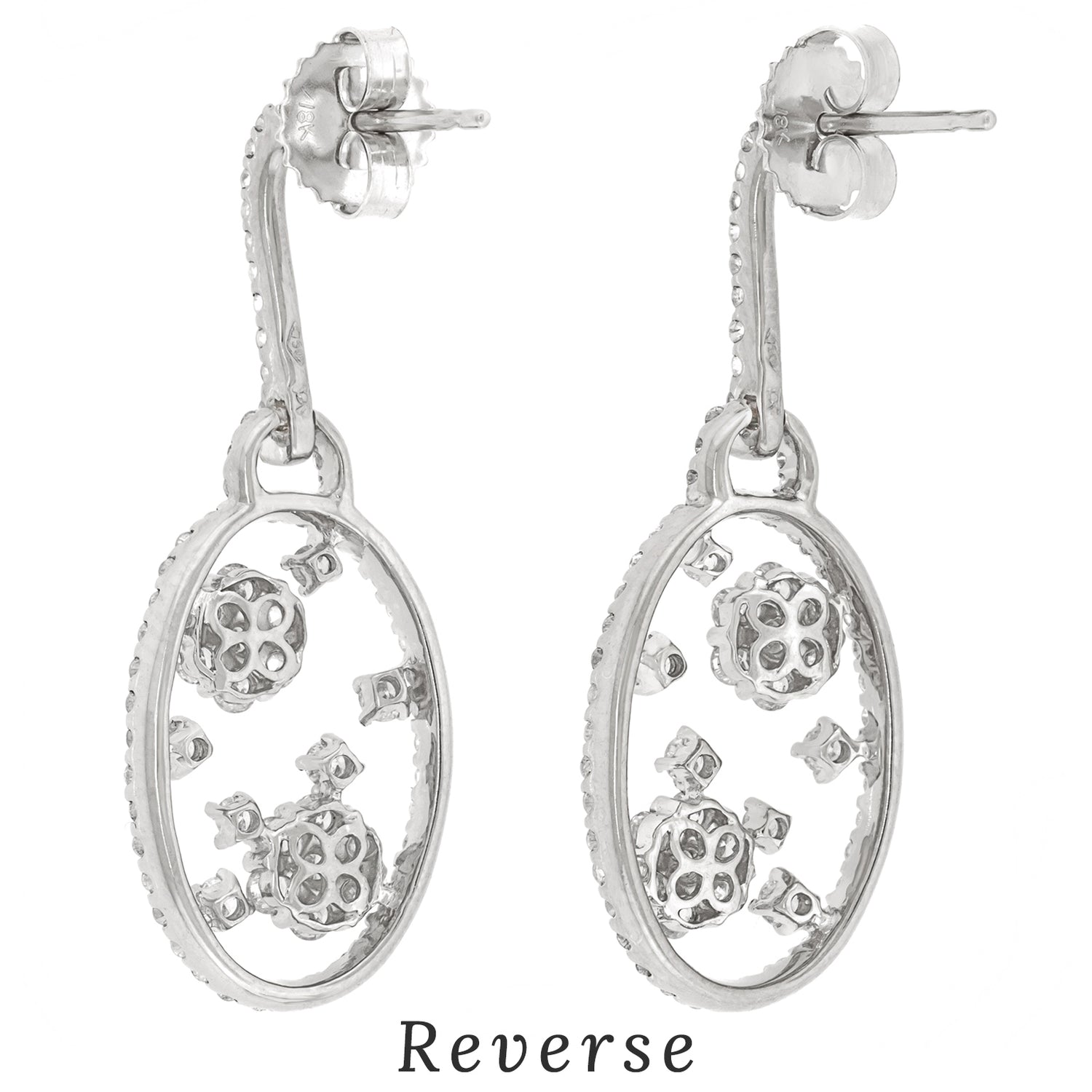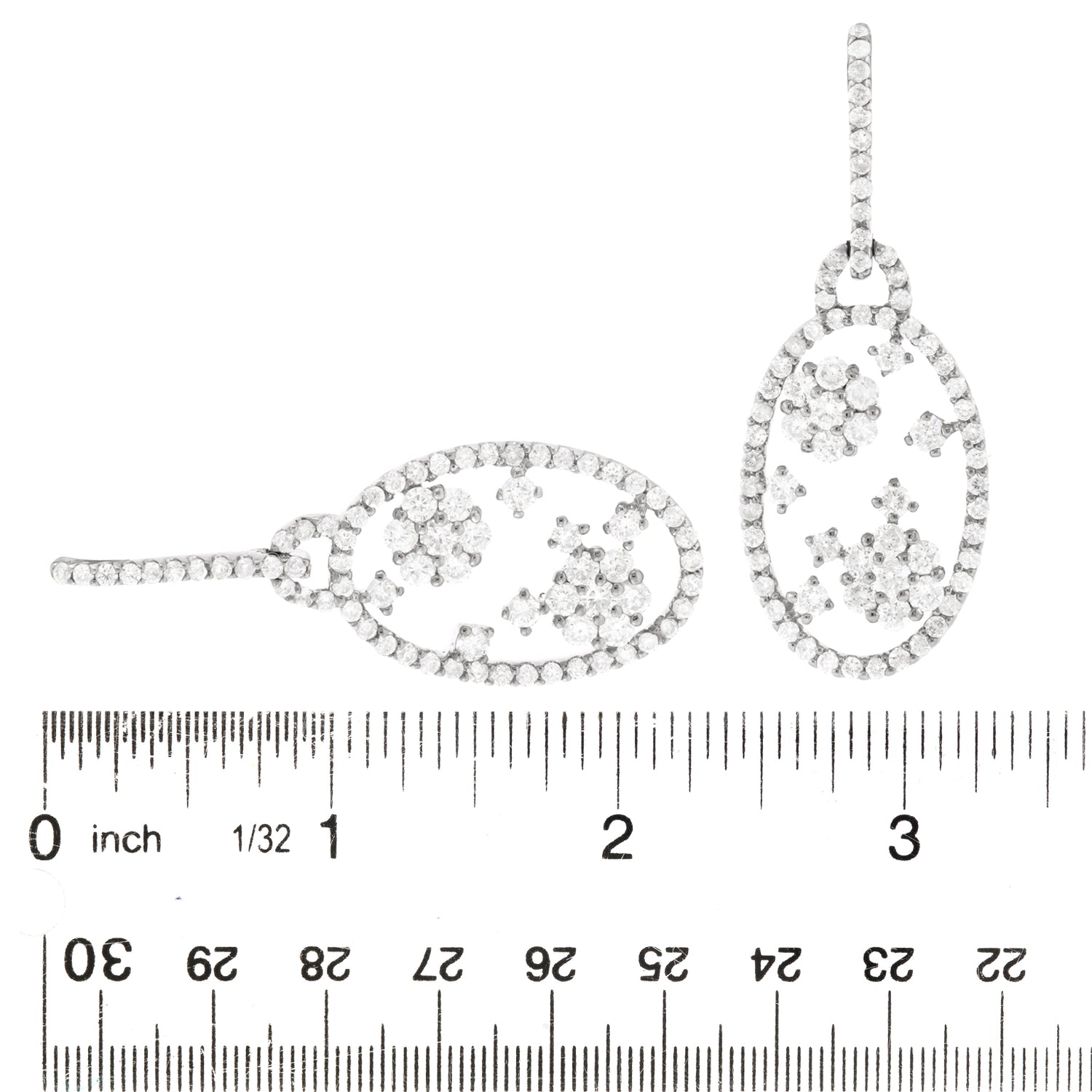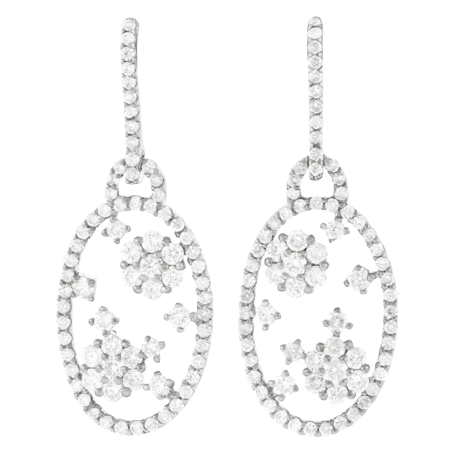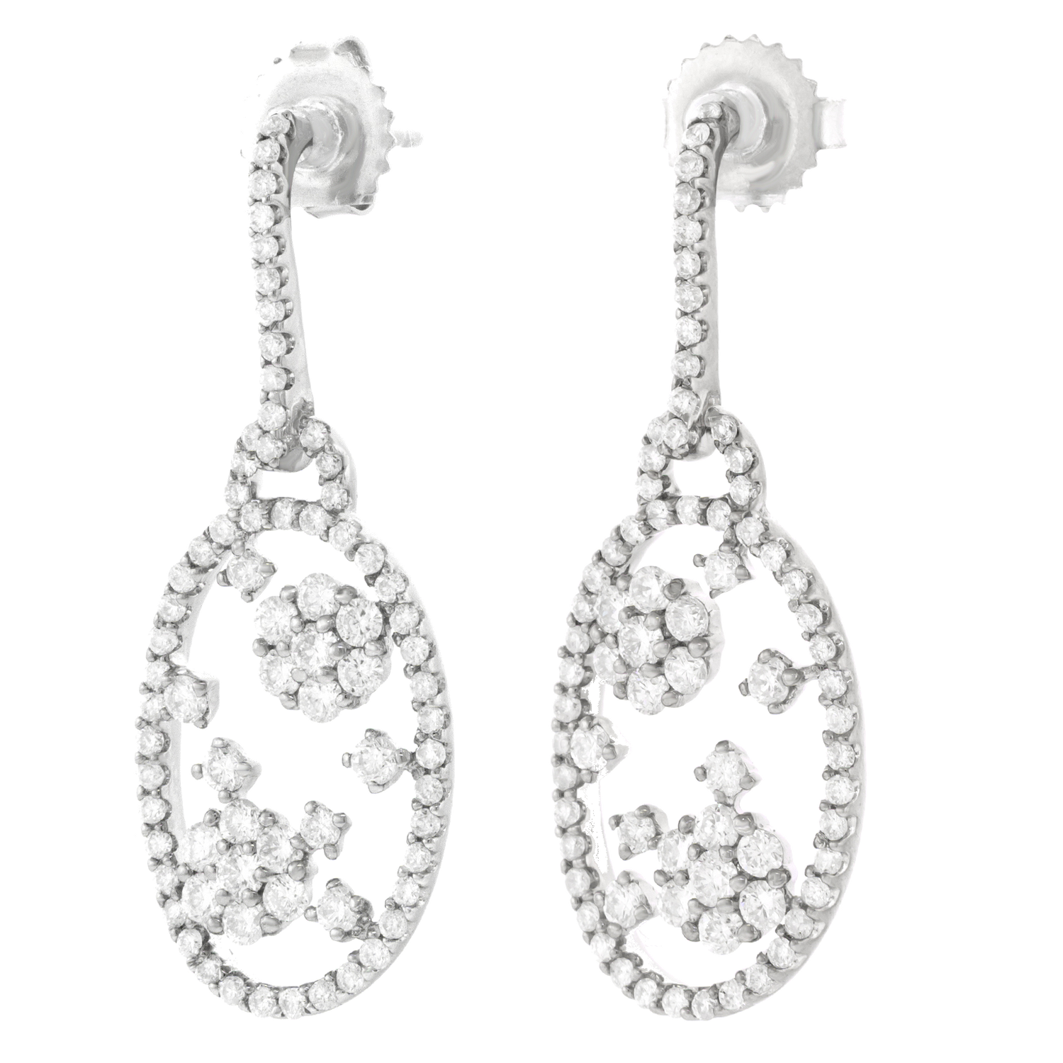 Circa 2000s, 18k, American. These gorgeous diamond New Millennium chandelier earrings feature 1.20 carats of exquisite white diamonds (F color, VS clarity). The look is floating flowers, dreamy and romantic. Finely fabricated in eighteen-karat white gold, they are in excellent condition.