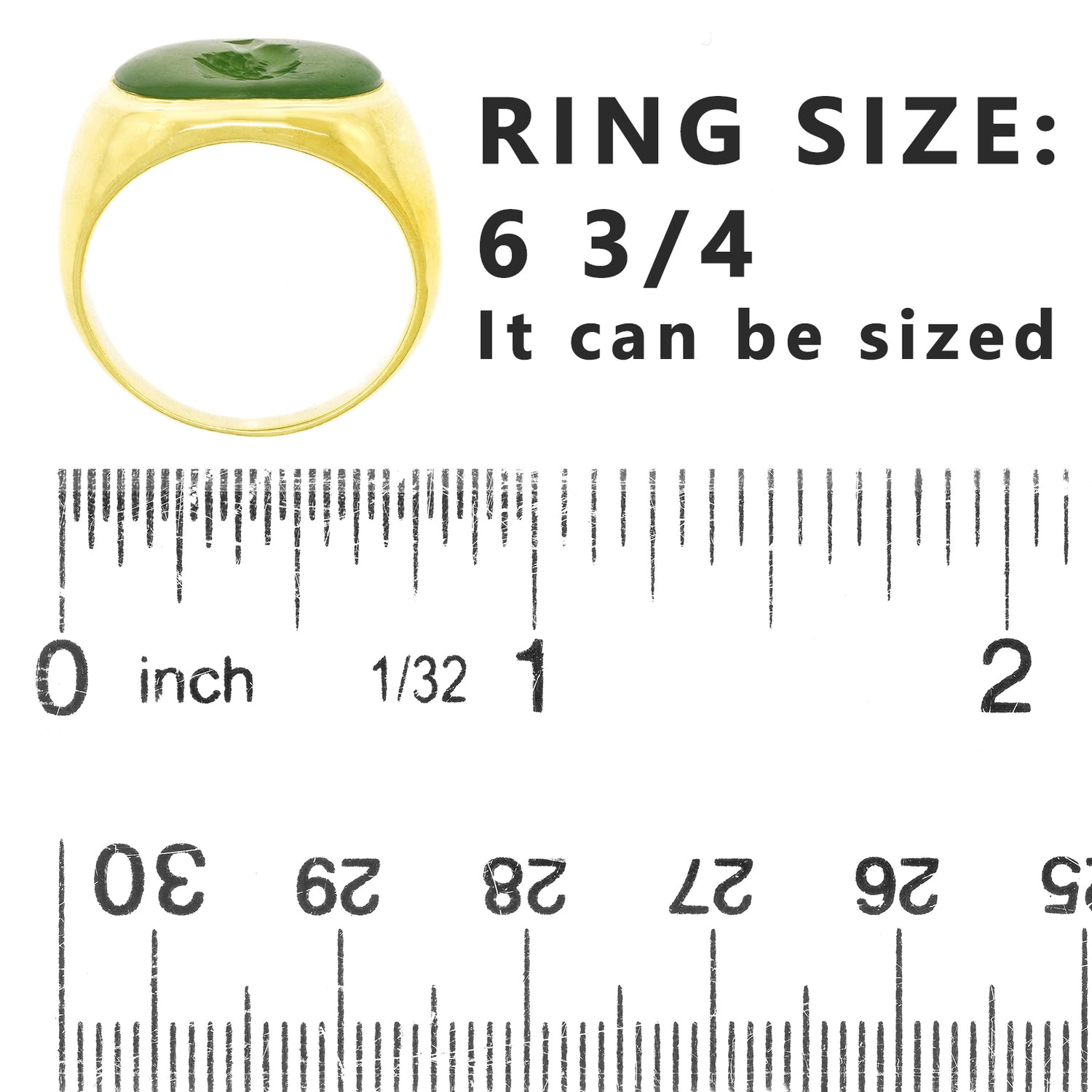 Circa 1890s, 14k, American. This beautiful antique ring is set with a fine intaglio-cut jade. The figure of Hermes is clear and charming. Meticulously made in fourteen-karat yellow gold, the look is authentic antique chic for brilliant town and country style. Very good condition.