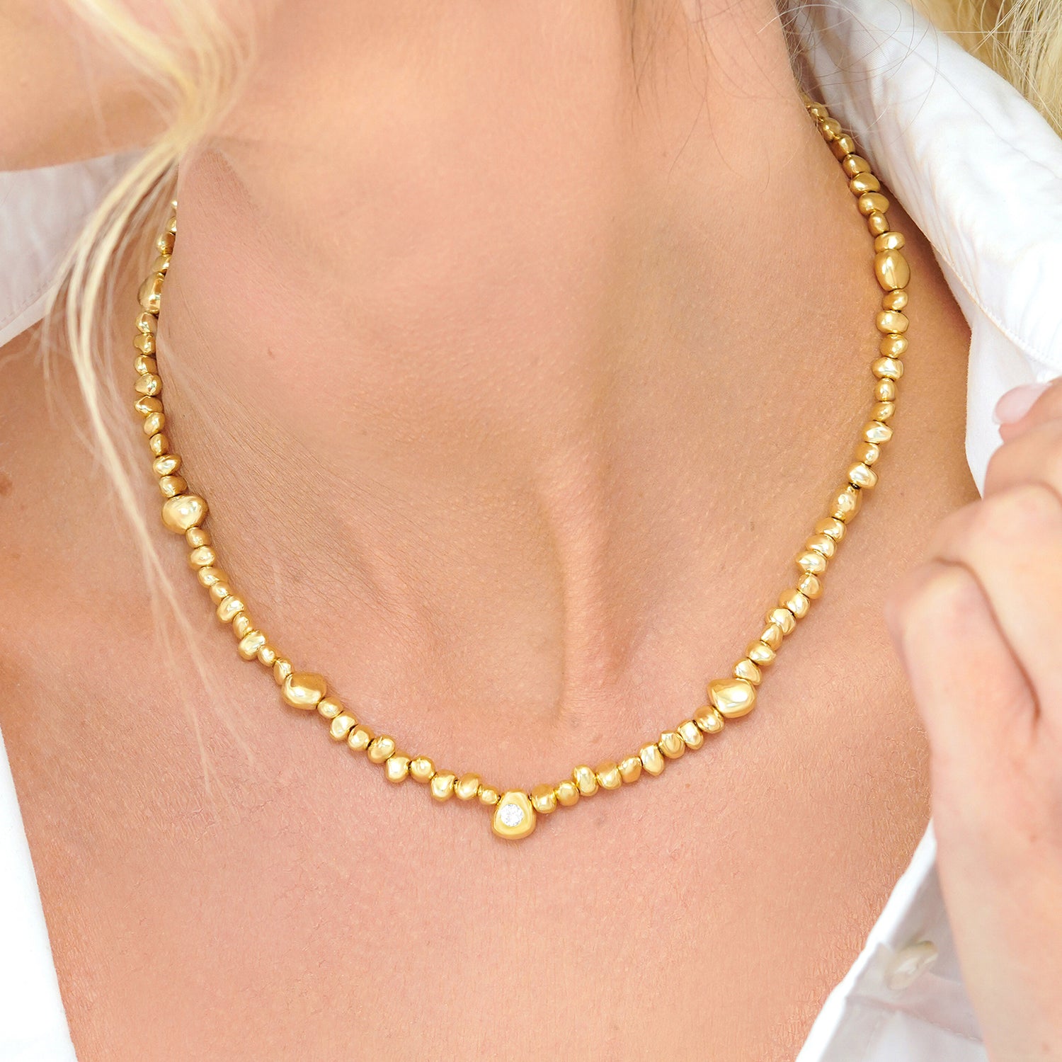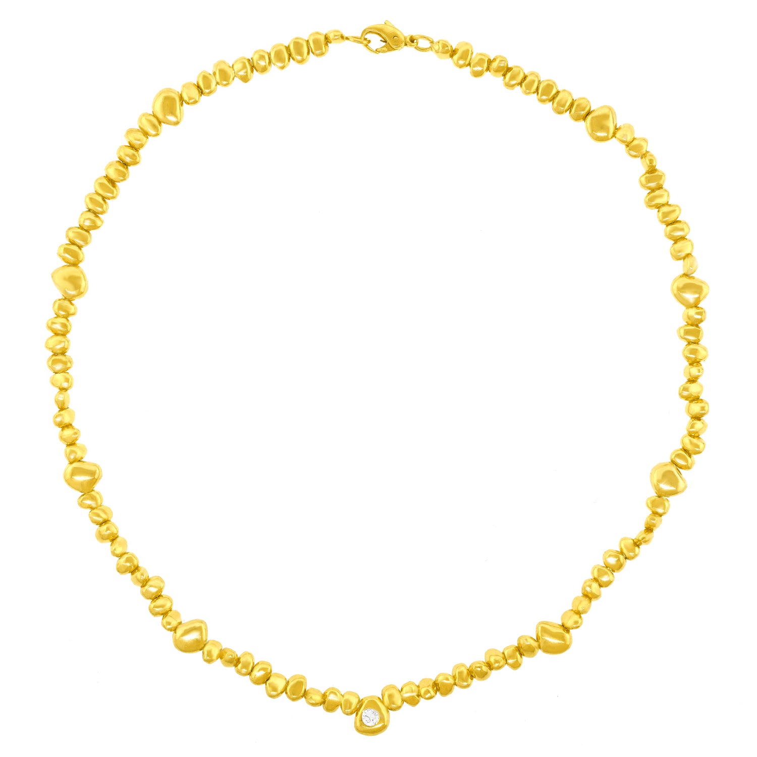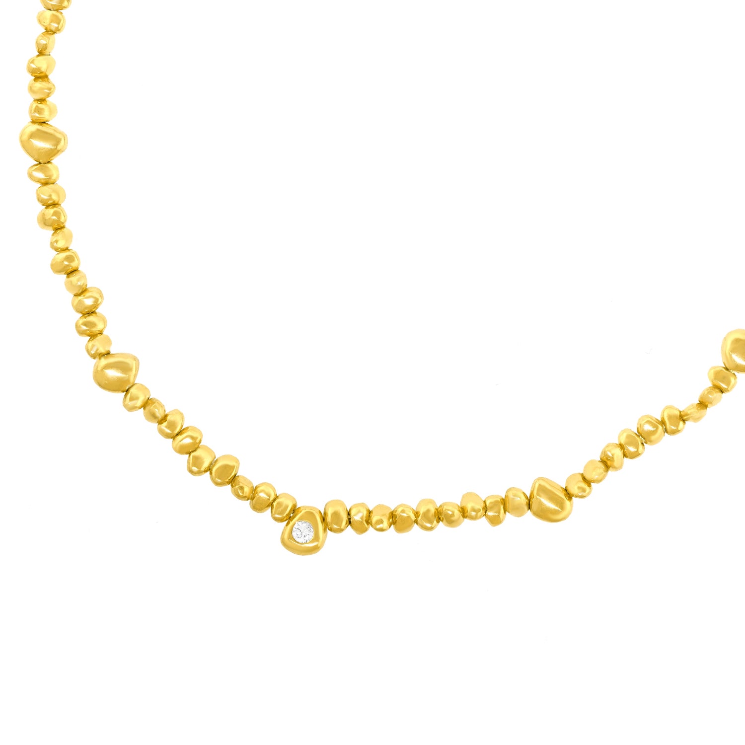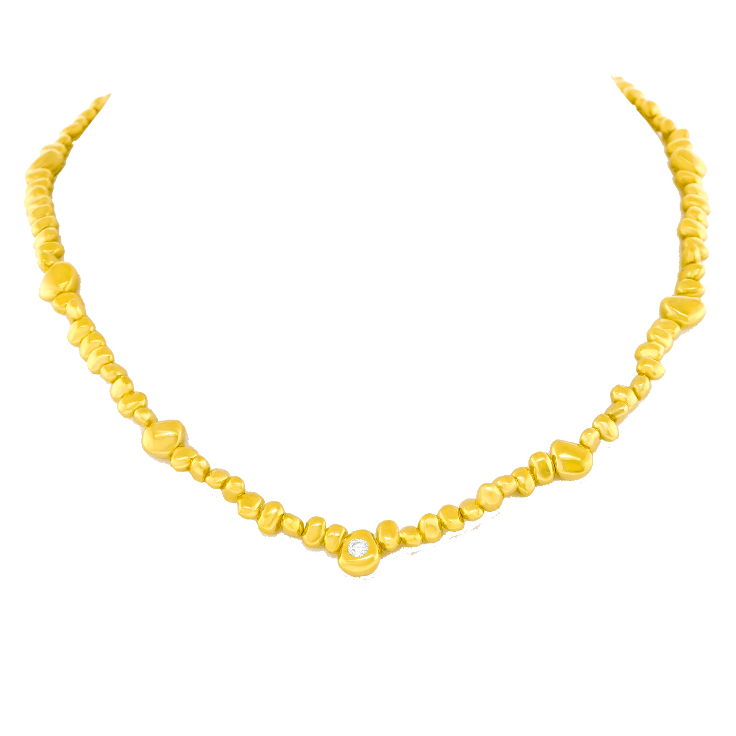 Circa 1970s, 18k, by Chaumet, France. Chaumet jewelry is renowned for its fine quality, tasteful appearance, and often, brilliantly over-the-edge designs. This diamond-set amorphous yellow gold necklace is perfect dressed up or down. The look is organo chic at Paris Fashion Week, seventies style! Excellent condition.