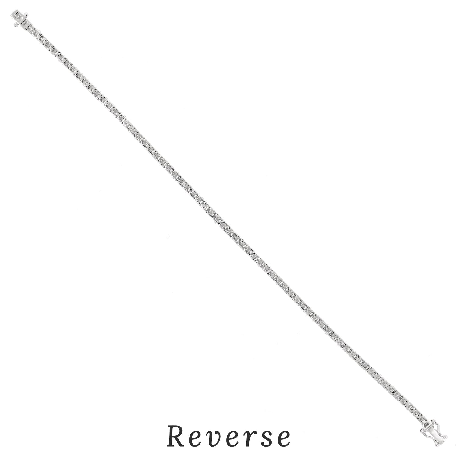 Circa 2000s, Platinum, American. The perfect flash of white fire on your wrist, this bracelet is all about the 4.0 carats of brilliant white diamonds (F color, VS clarity). Effortlessly chic, it is perfect as the only piece of jewelry you wear that day, or elegantly casual mixed with other bracelets or a watch. An iconic American style, this bracelet does it all. Finely fabricated in platinum, it is in excellent condition.