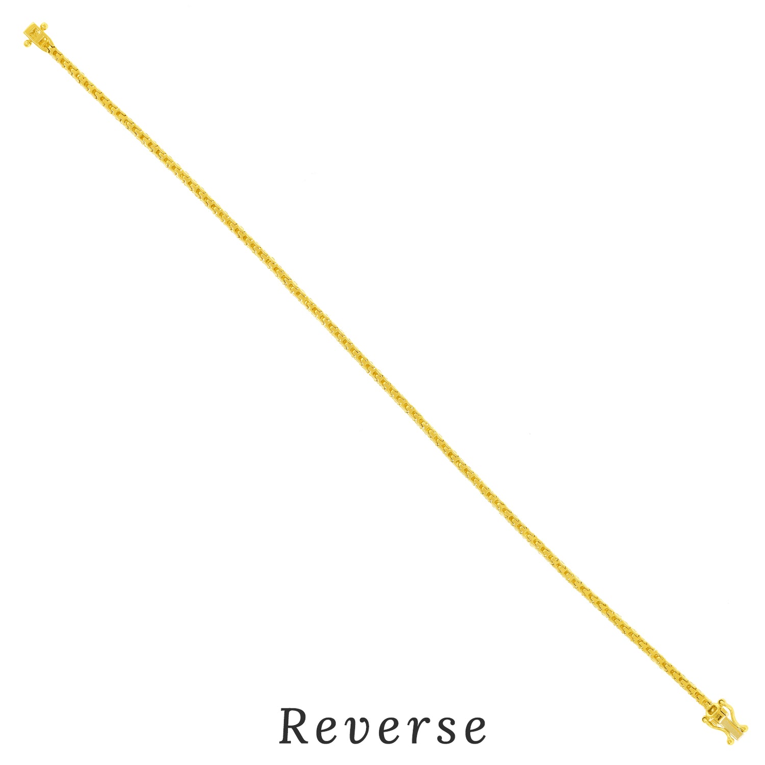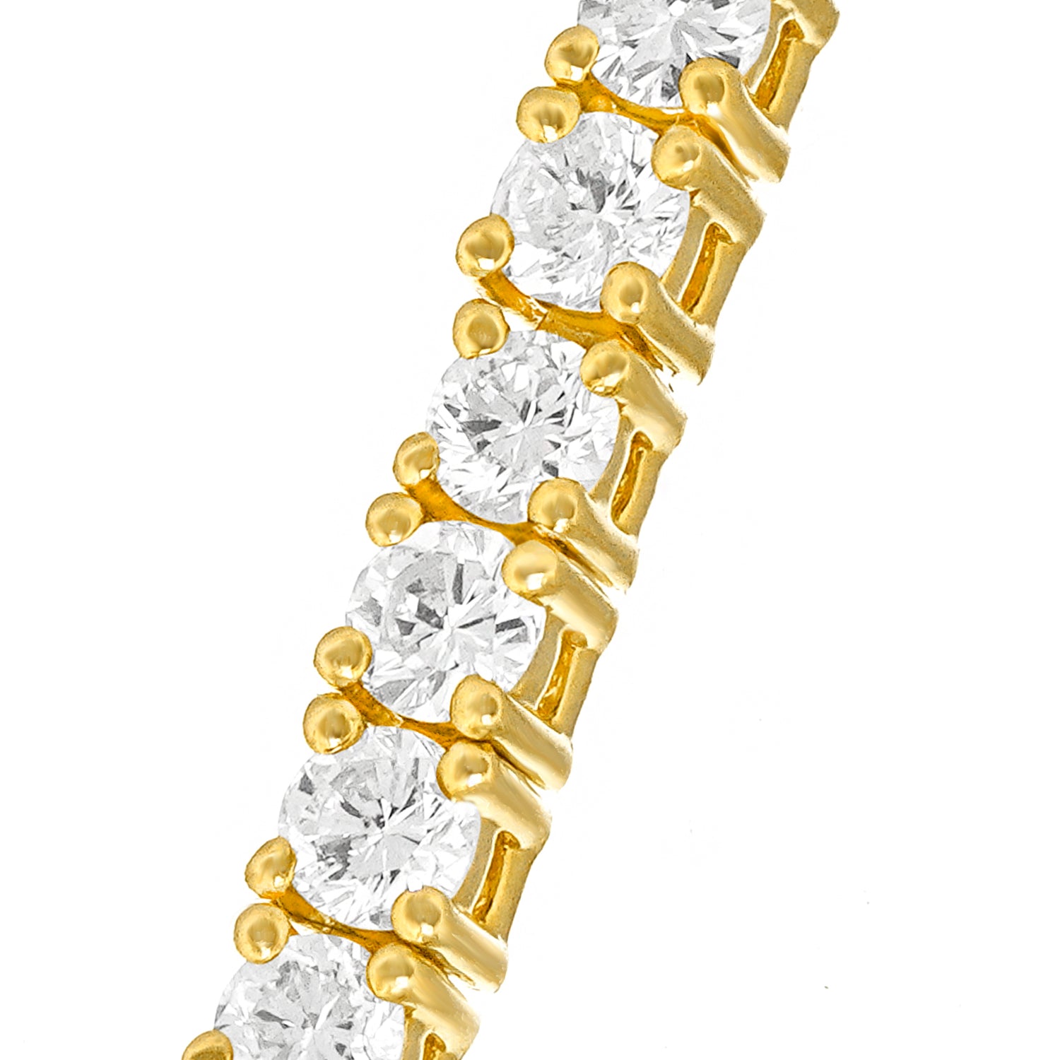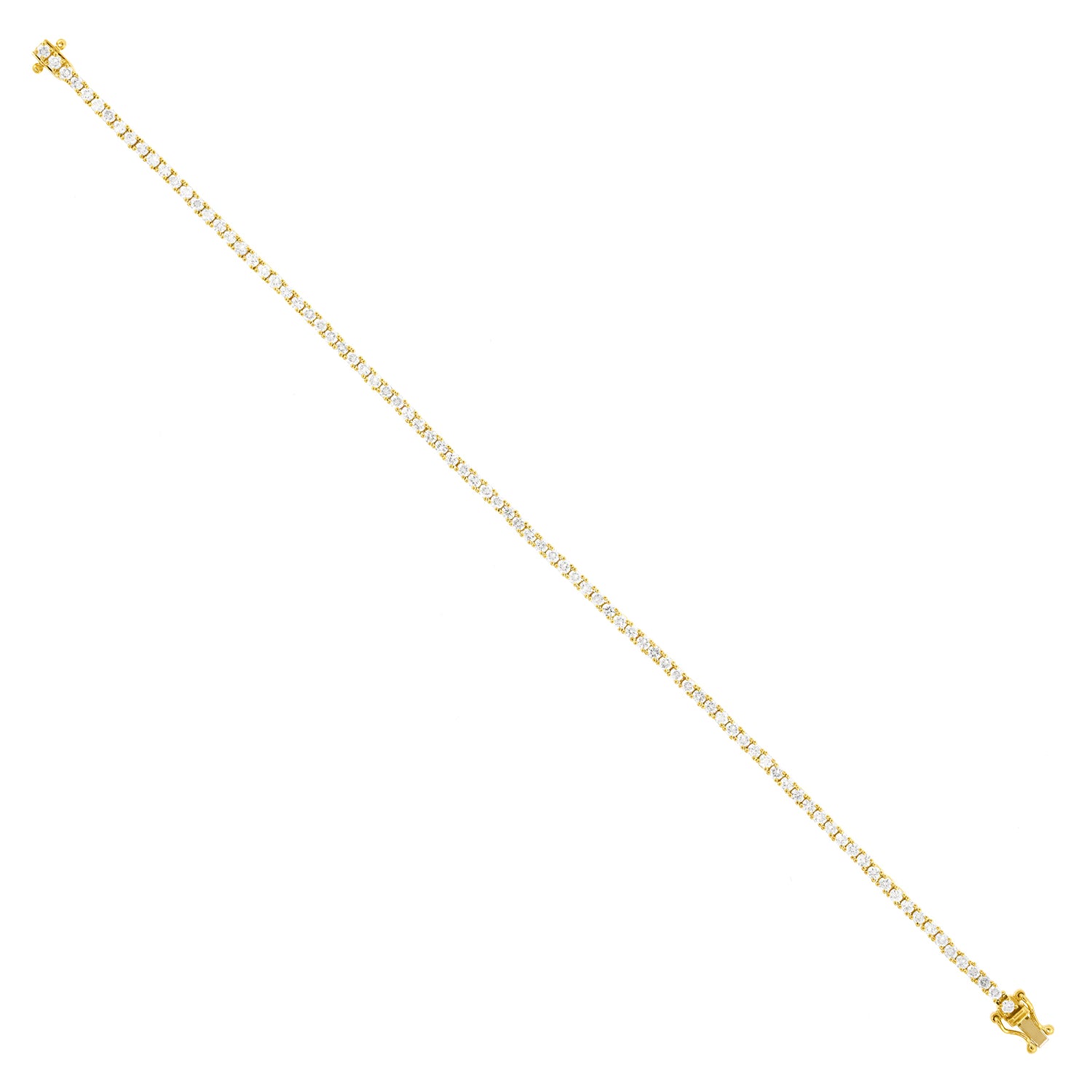 Circa 2000s, 14k, American. This bracelet is all about the diamonds. Its 2.50 carats of brilliant white diamonds (H-I color and SI1 clarity) are effortless fashion. Perfect as the only piece of jewelry you wear that day, or brilliant mixed with other bracelets or a watch. The diamond tennis bracelet, an iconic American style, that does it all. Finely fashioned in 14k yellow gold, it is in excellent condition.