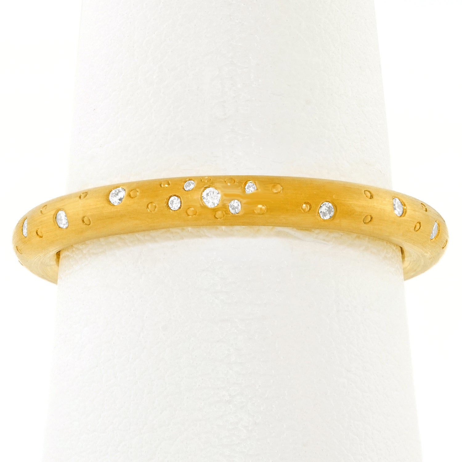 Circa 2000s, 18k, by Meister, Switzerland. This organo-chic diamond set ring is everyday "ready to go" fashion. Perfect on its own or as a stacking ring, it is well-made in eighteen-karat gold and is in excellent condition.