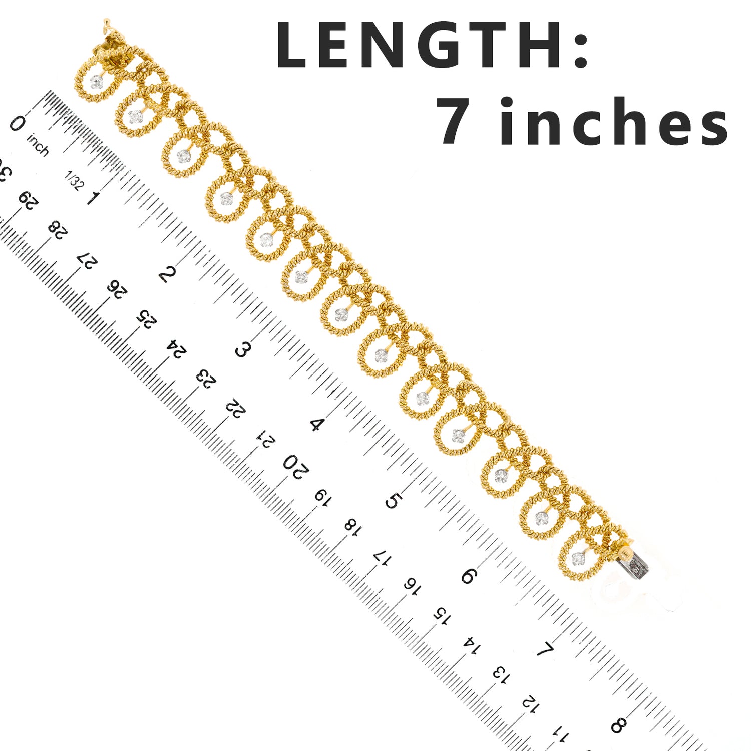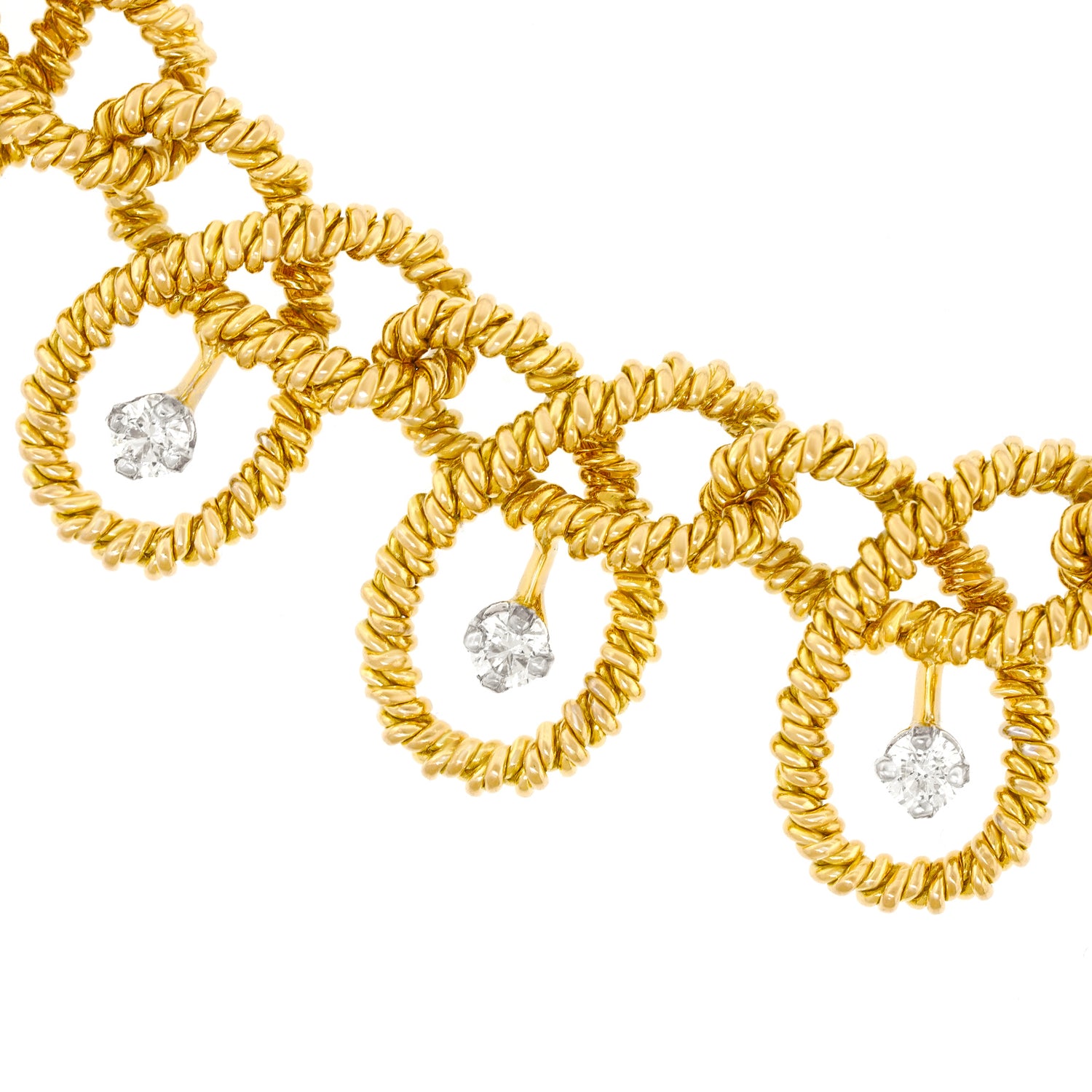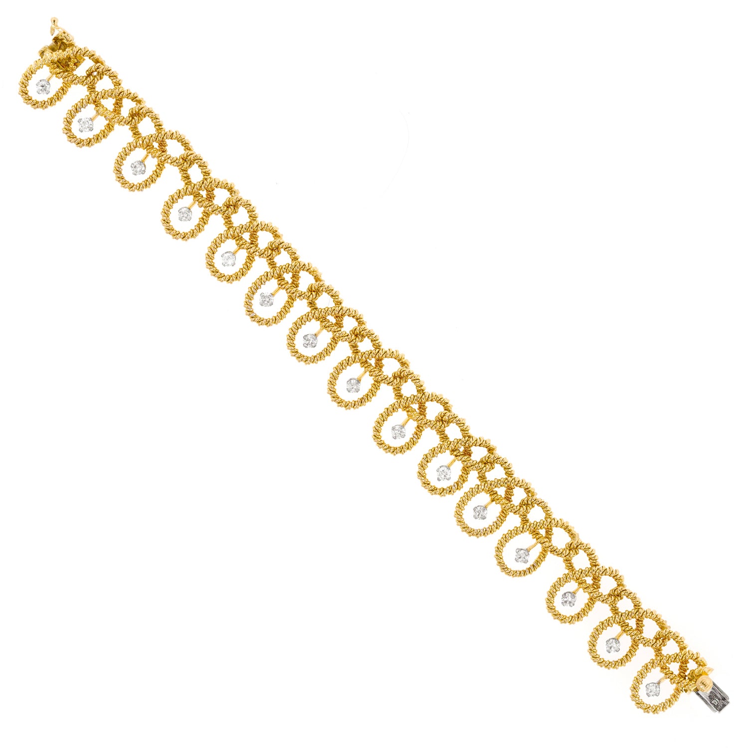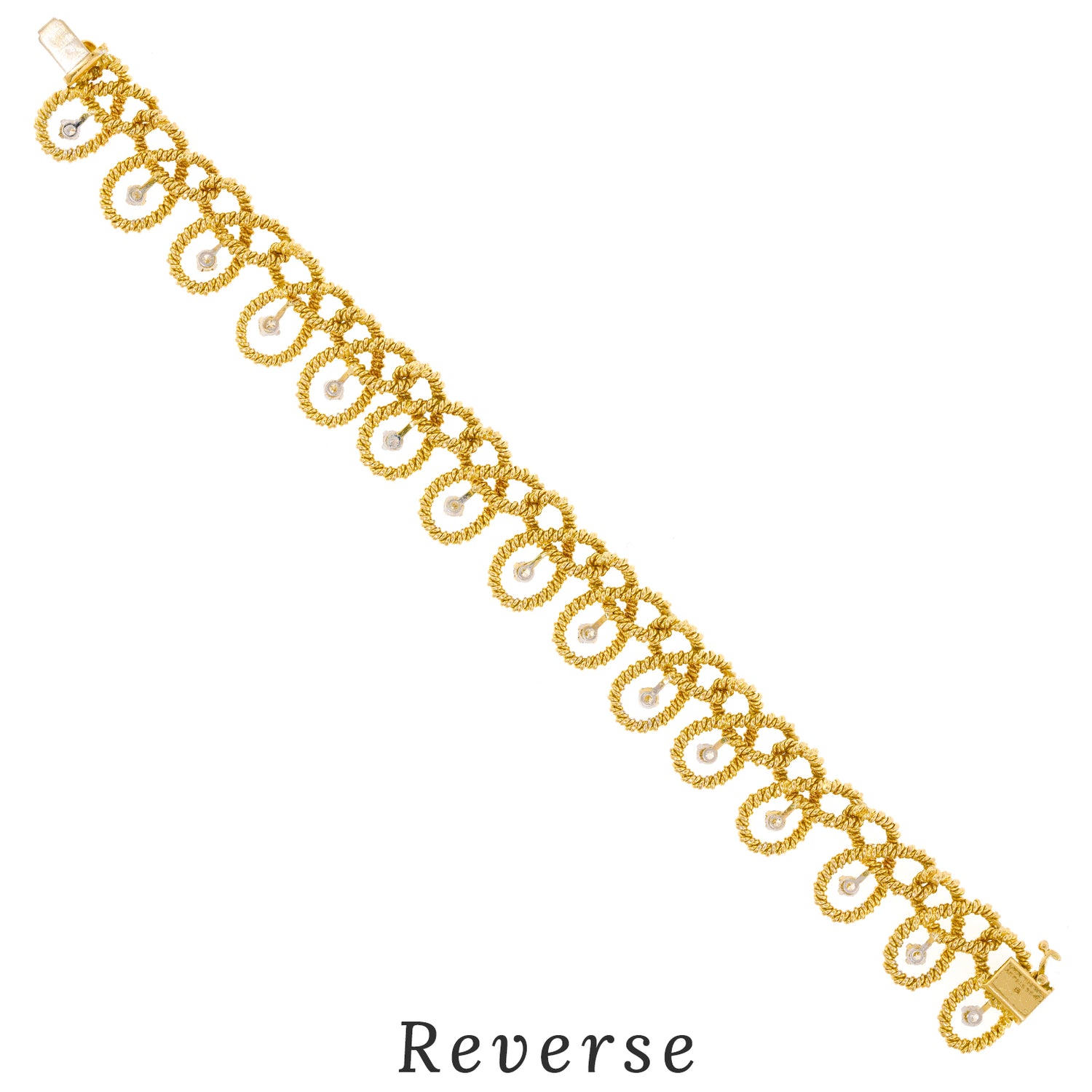 Circa 1960s, 18k, by Van Cleef & Arpels, France. This Van Cleef & Arpels bracelet is exquisite. Its compelling visual authority is the result of sublime design work underscored by meticulous fabrication. The articulate 18k yellow gold cable twist form is set with 1.50 carats of brilliant white diamonds (F color, VS clarity). Excellent condition.