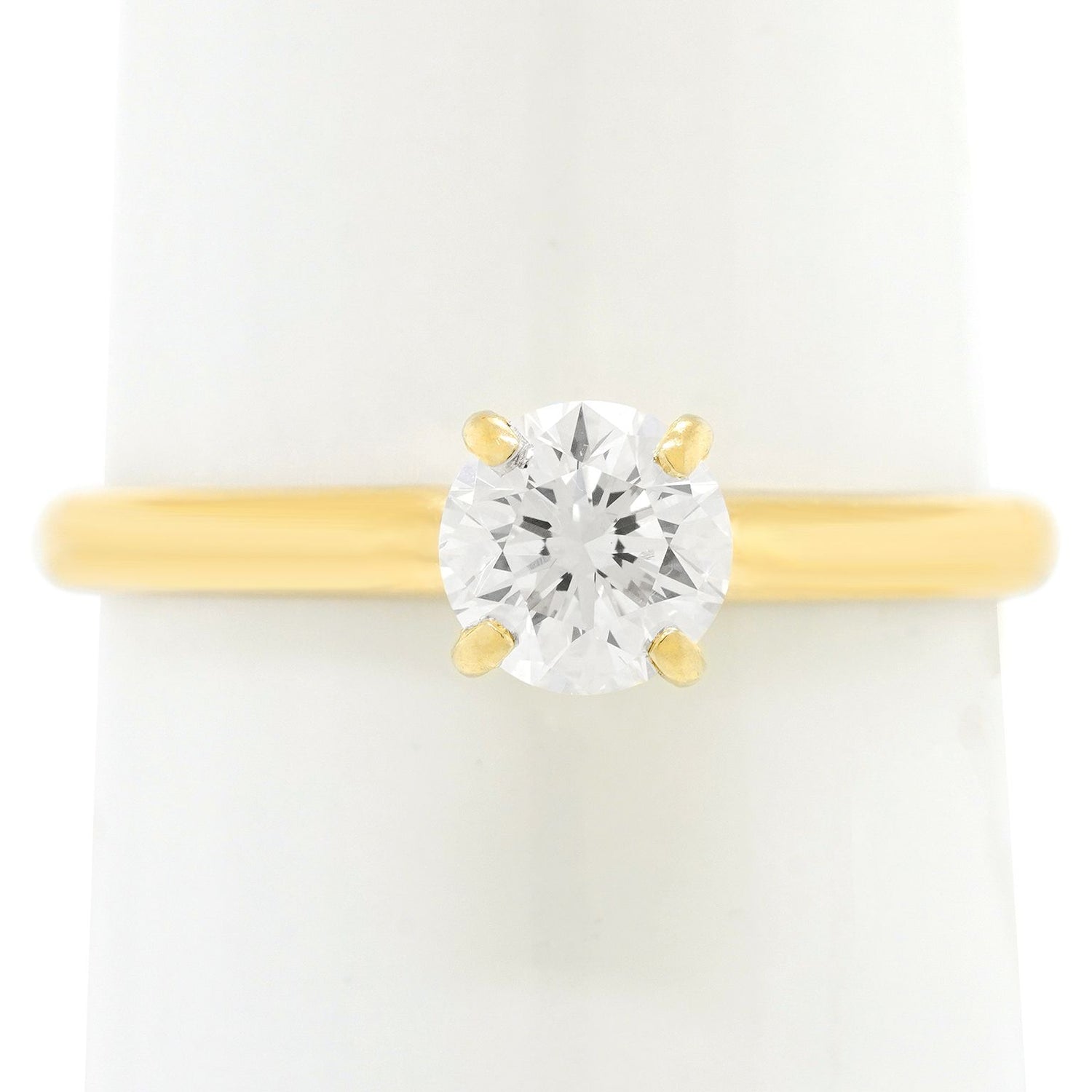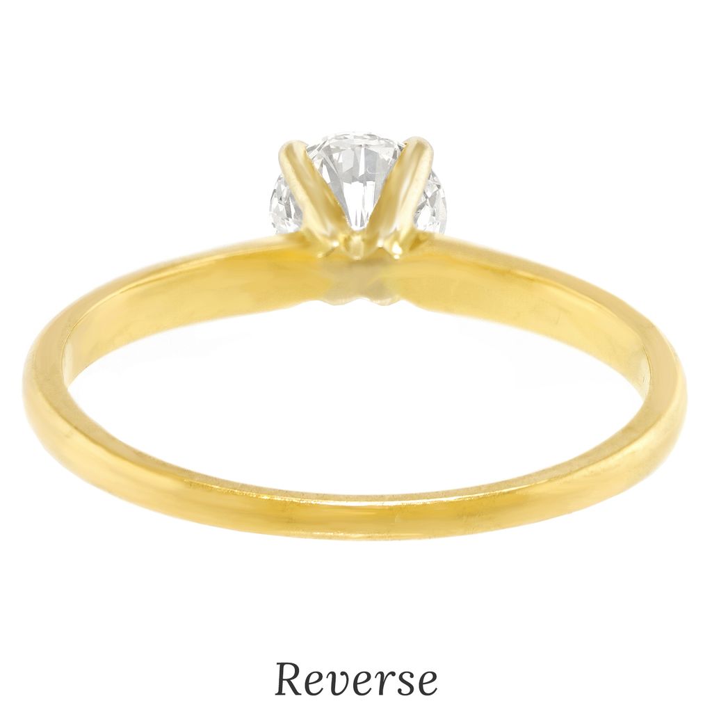 Circa 1960s, 14k, American. The refined proportions and classic four-prong setting of this sixties engagement ring elegantly highlights the brilliant .55-carat diamond (G color, VS clarity). Well-made, it is in excellent condition.