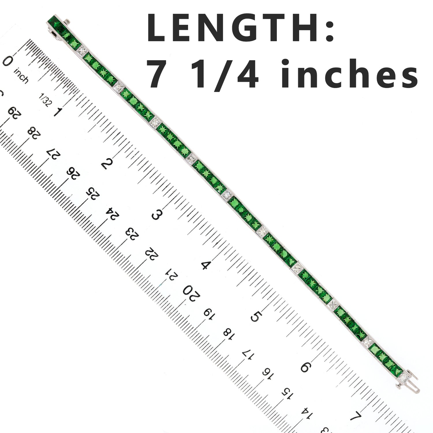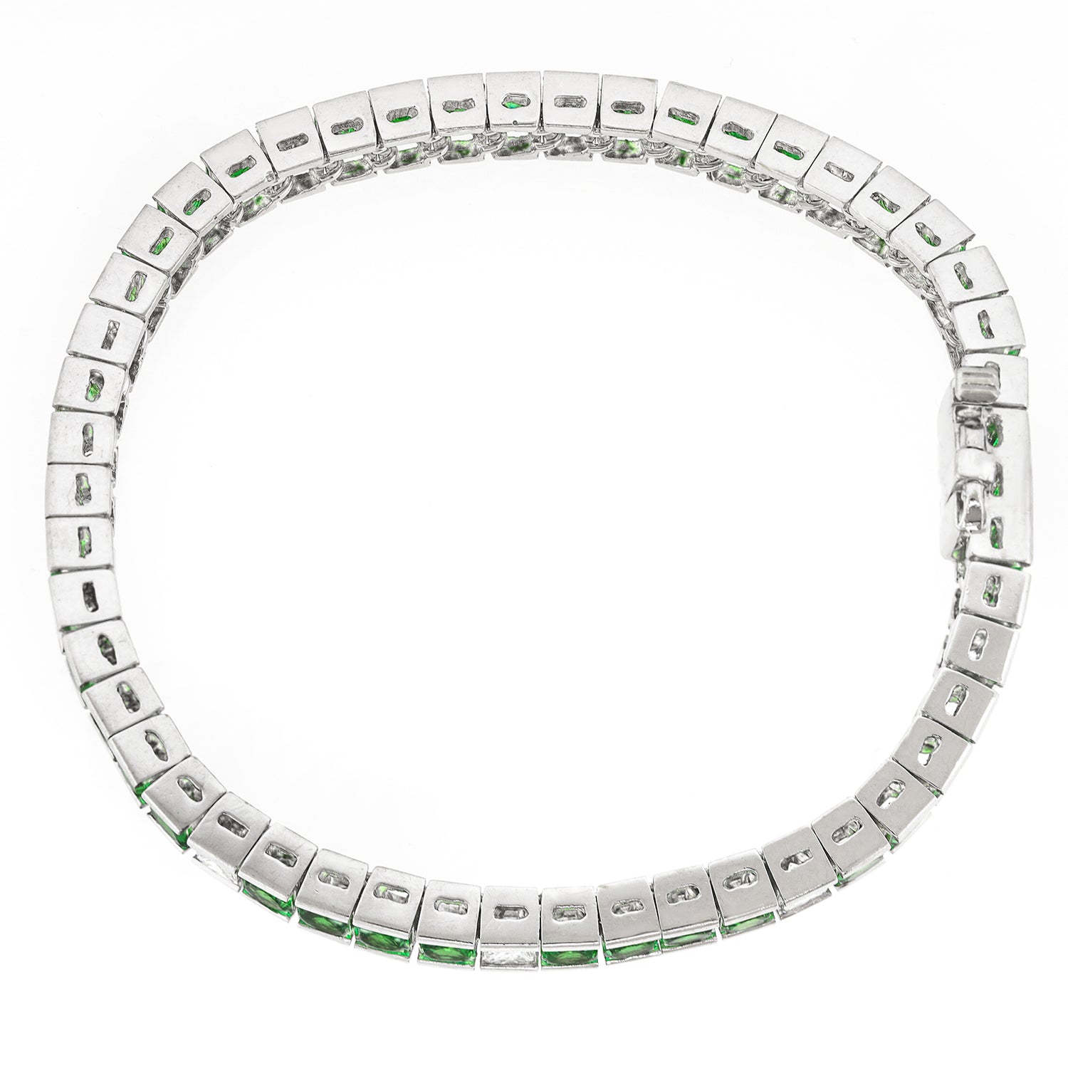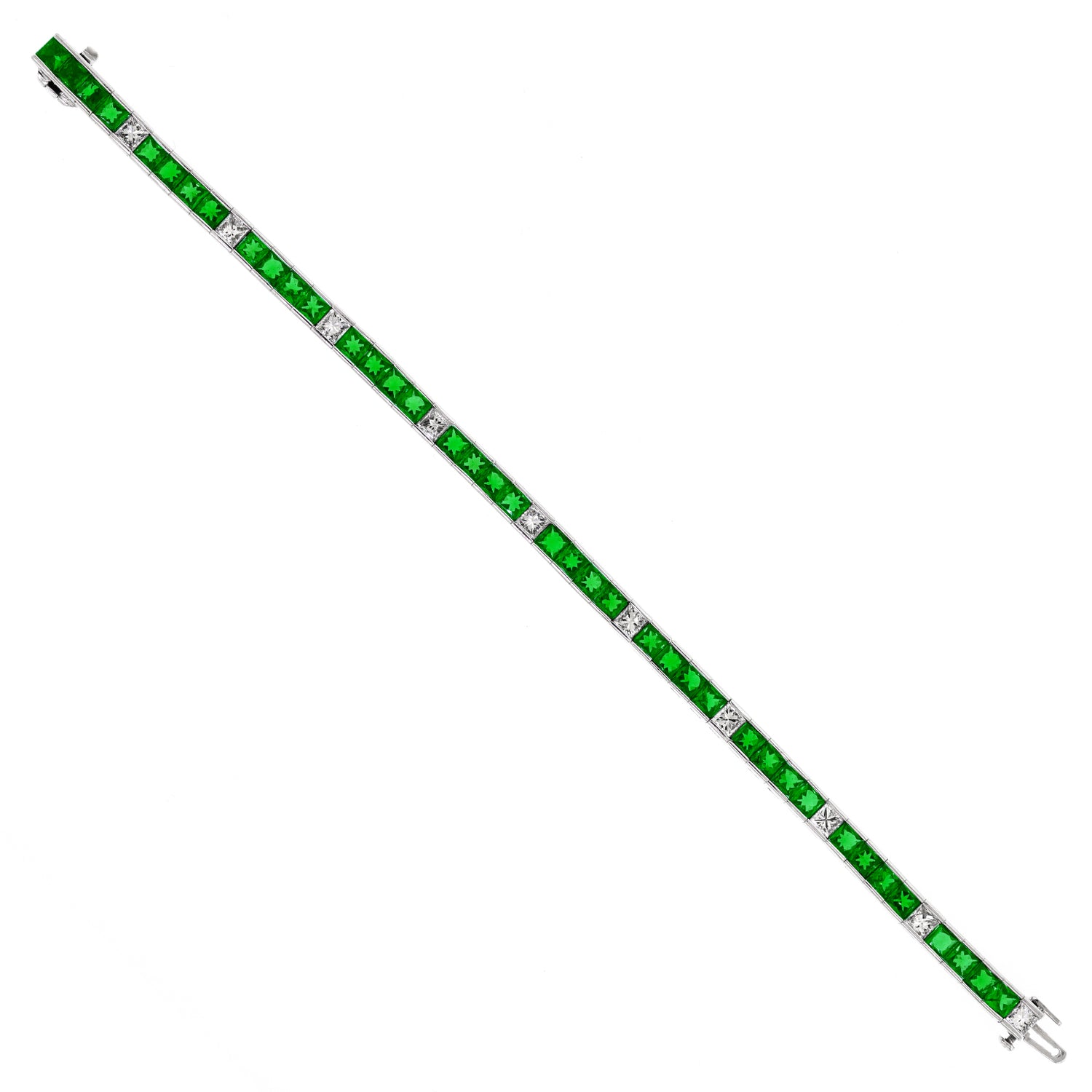 Circa 1980s, 18k, American. Set with 12.0 carats of vibrant tsavorite garnets and 2.50 carats of brilliant white diamonds (G color and VS clarity), this delightful line bracelet is the perfect pop of color. Ideal for every day, it stands alone or looks great in a multiplies stack. Quality fabrication completes the look. Excellent condition.
