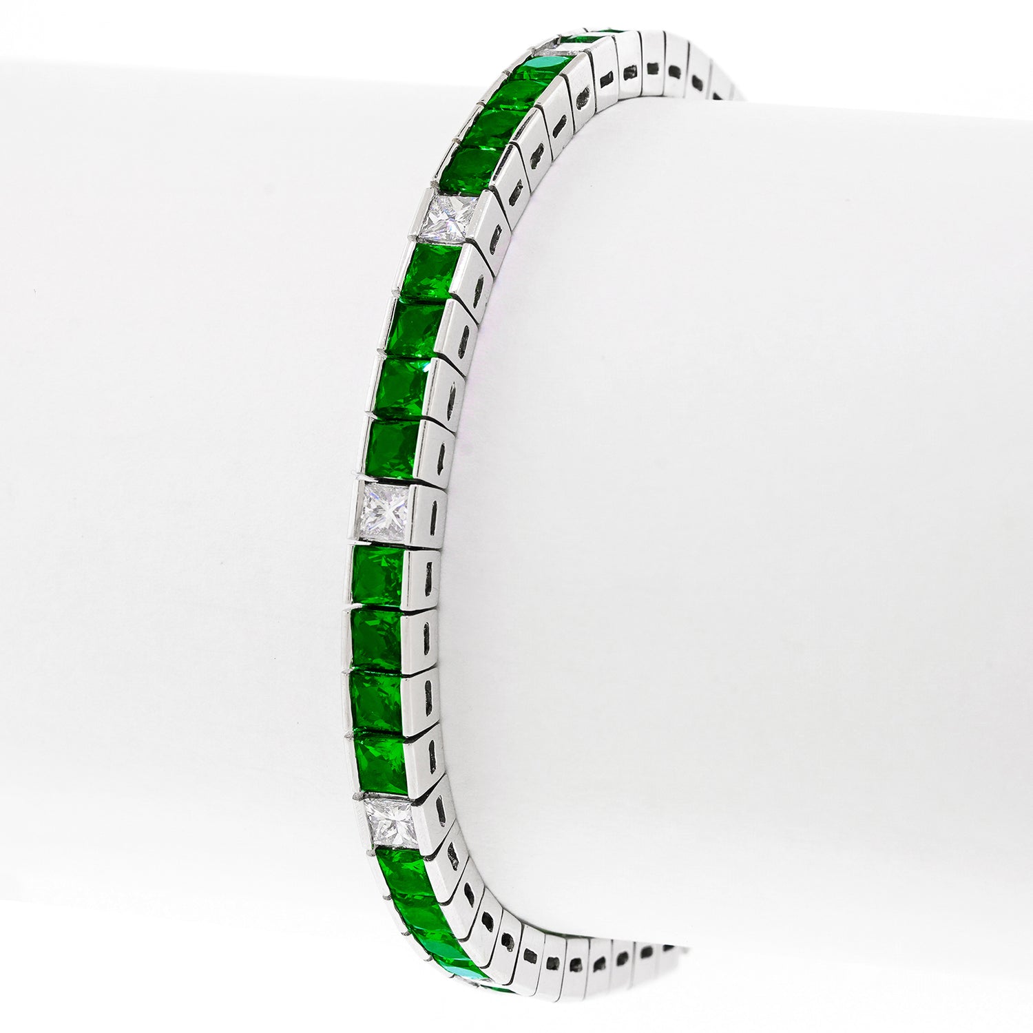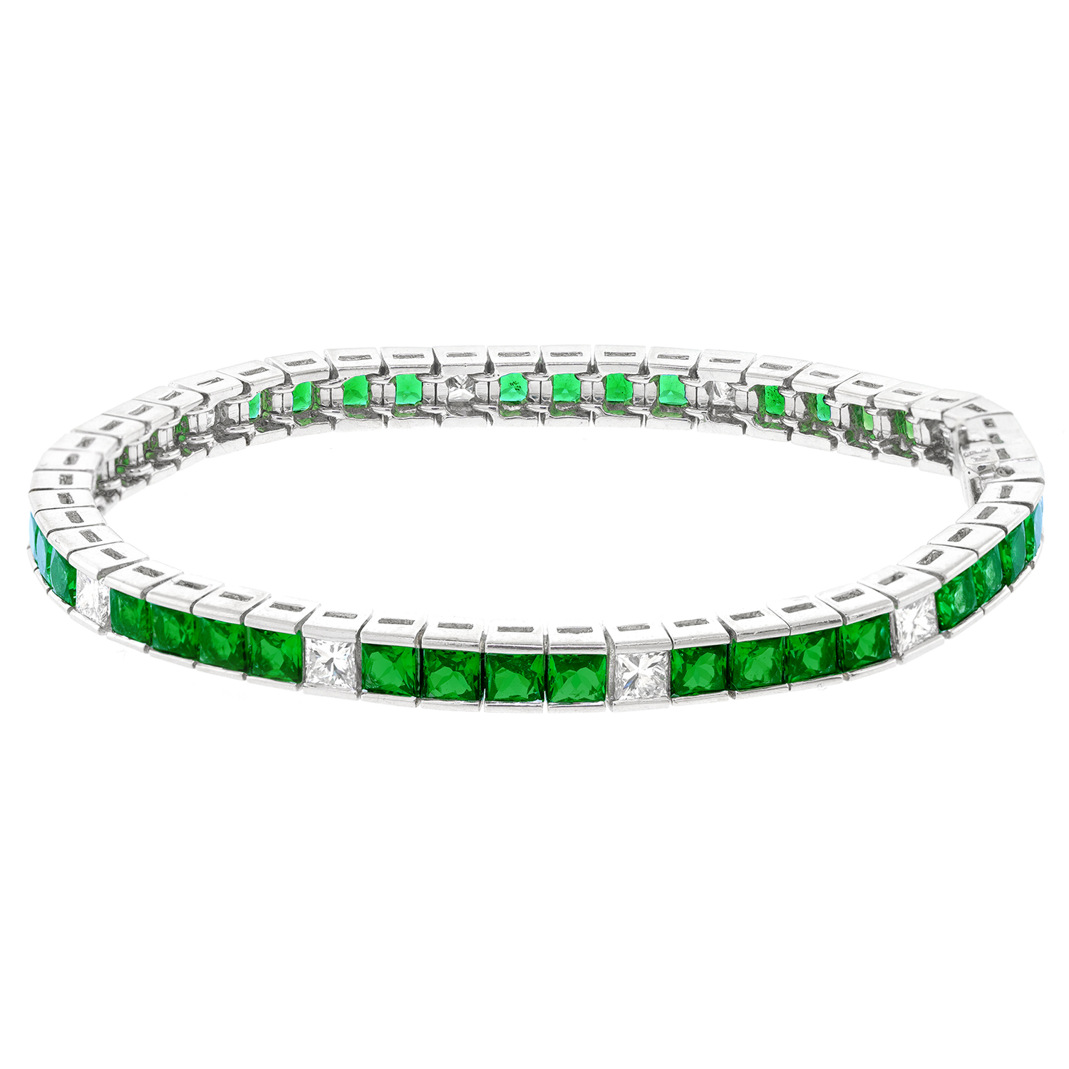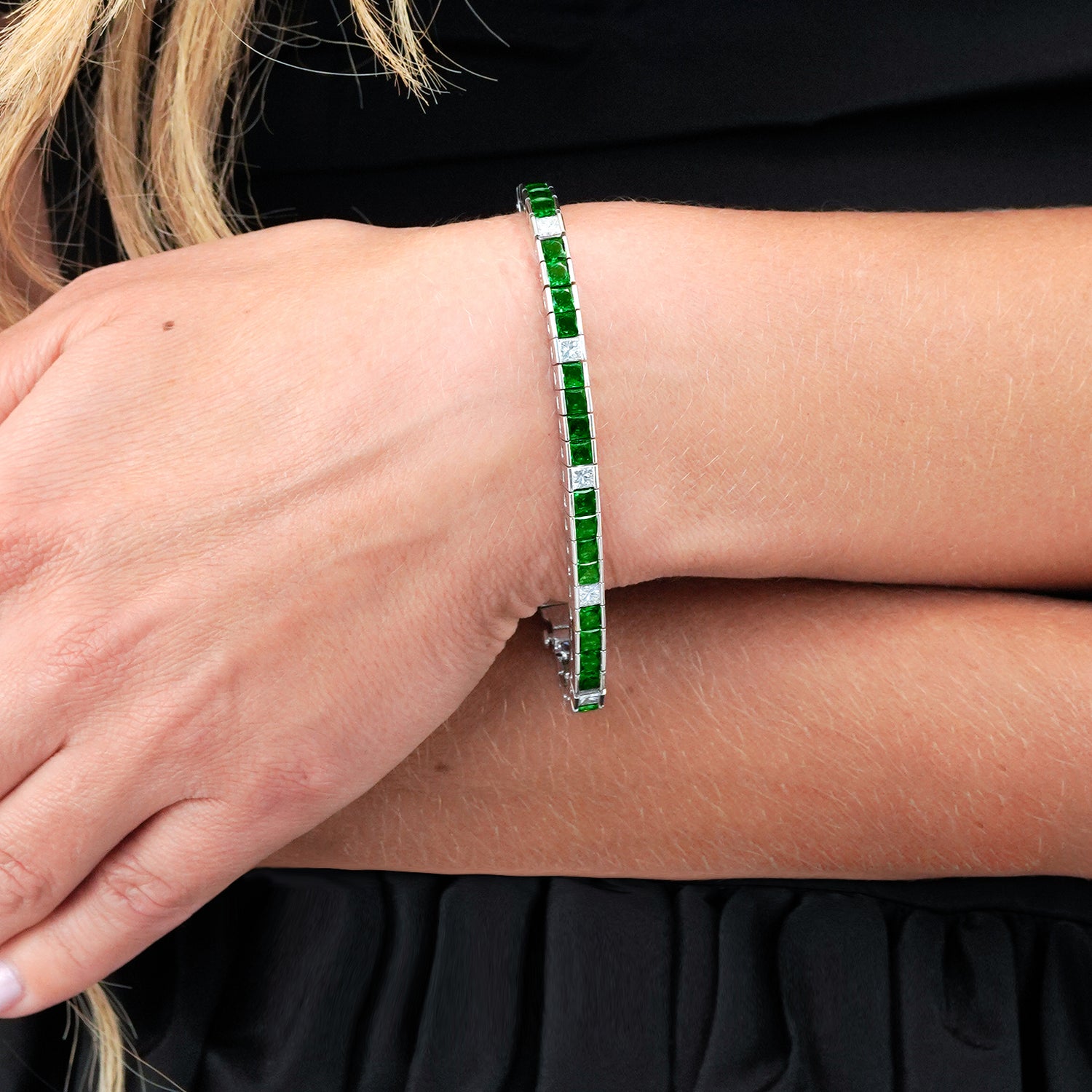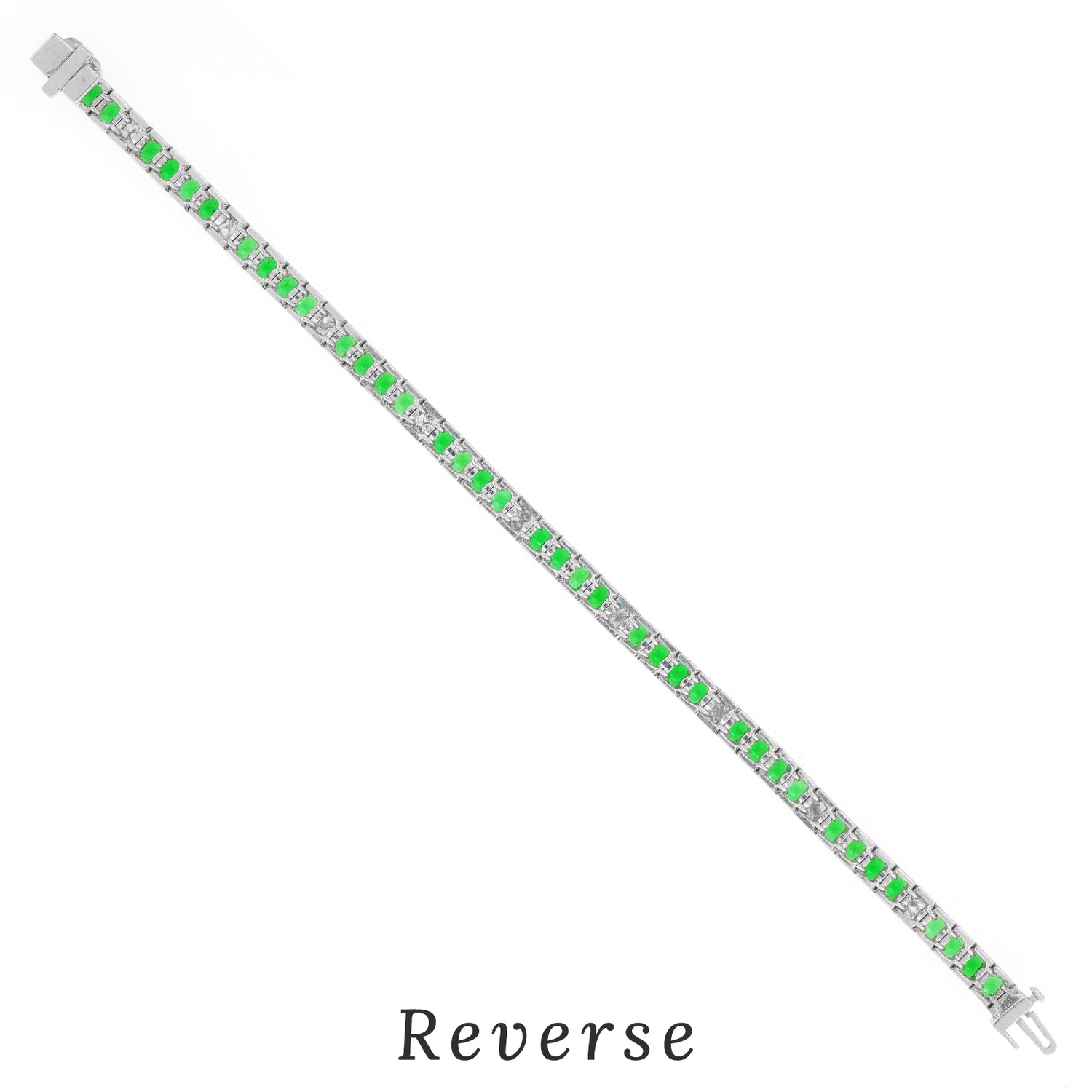 Circa 1980s, 18k, American. Set with 12.0 carats of vibrant tsavorite garnets and 2.50 carats of brilliant white diamonds (G color and VS clarity), this delightful line bracelet is the perfect pop of color. Ideal for every day, it stands alone or looks great in a multiplies stack. Quality fabrication completes the look. Excellent condition.