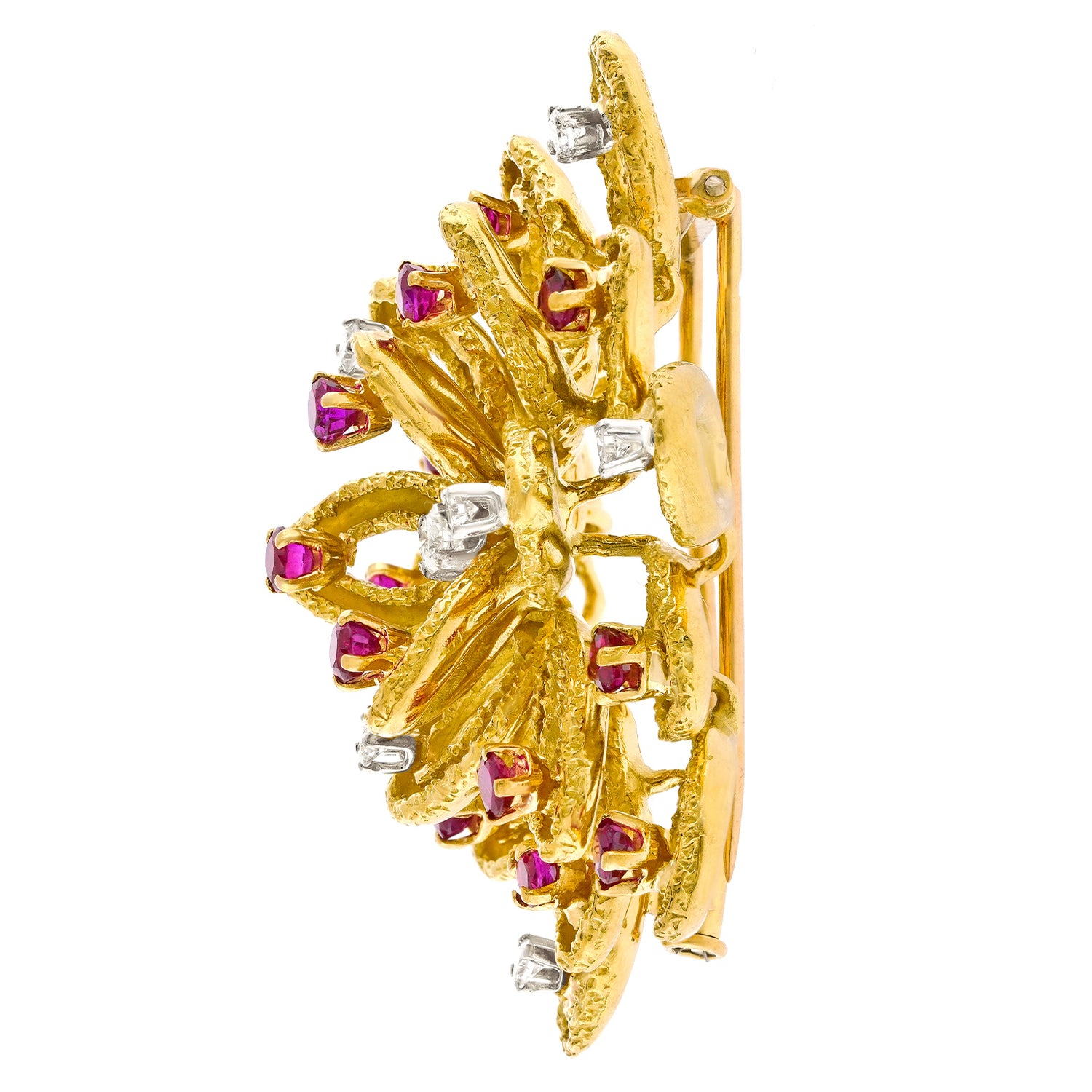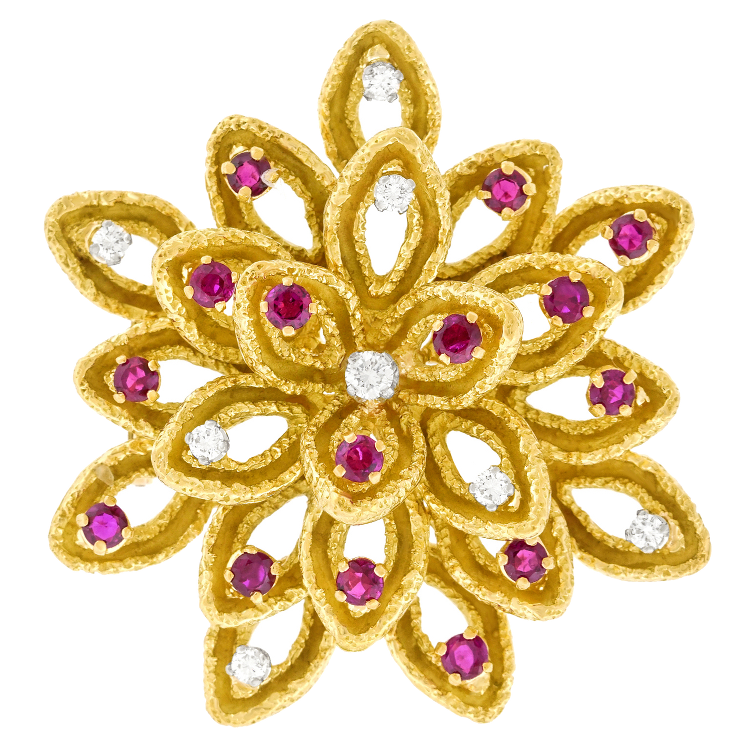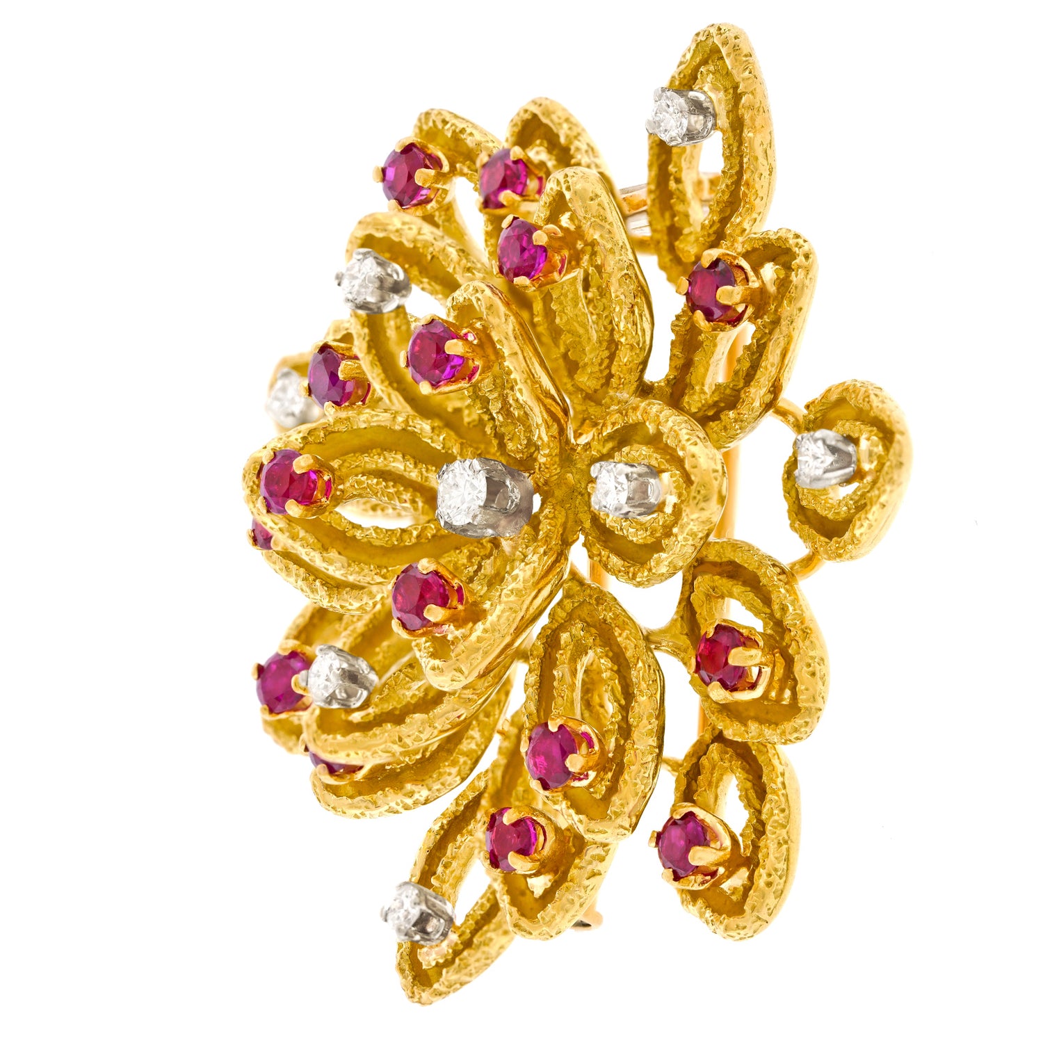 Circa 1950s, 18k, by Boucheron, Paris, France. This cheerful brooch from the renowned Parisian House of Boucheron is a delightful example of vintage fifties jewelry. Finely hand- crafted, it playfully speaks to their iconic Deco and Retro brooches. Excellent condition.