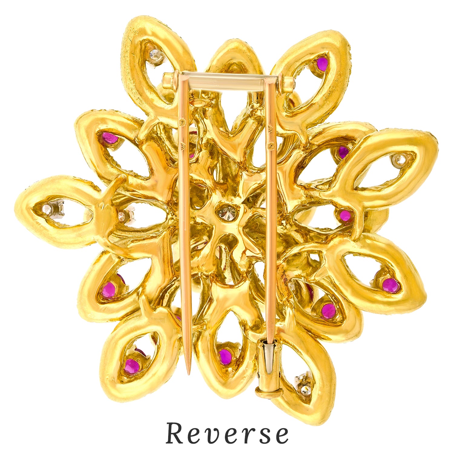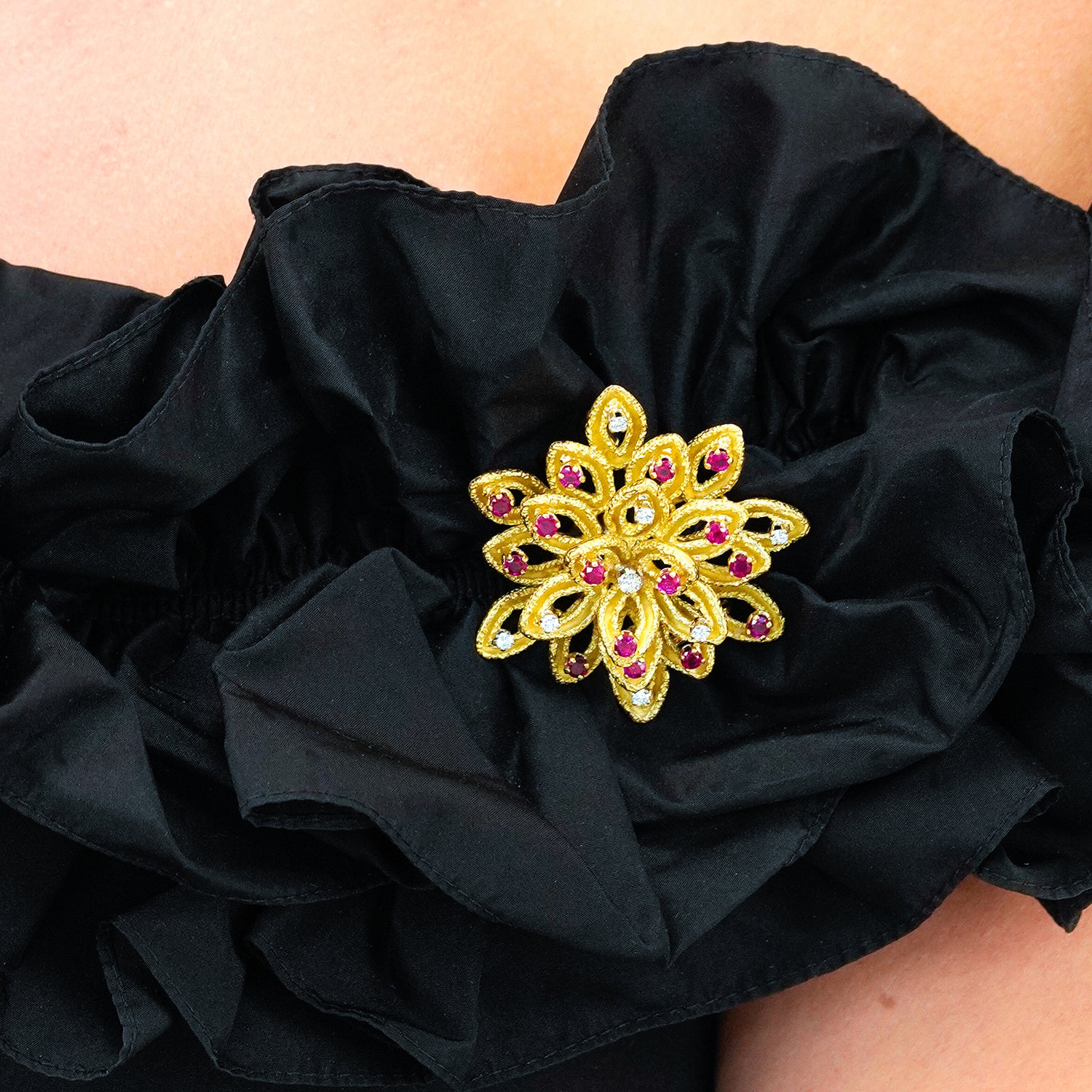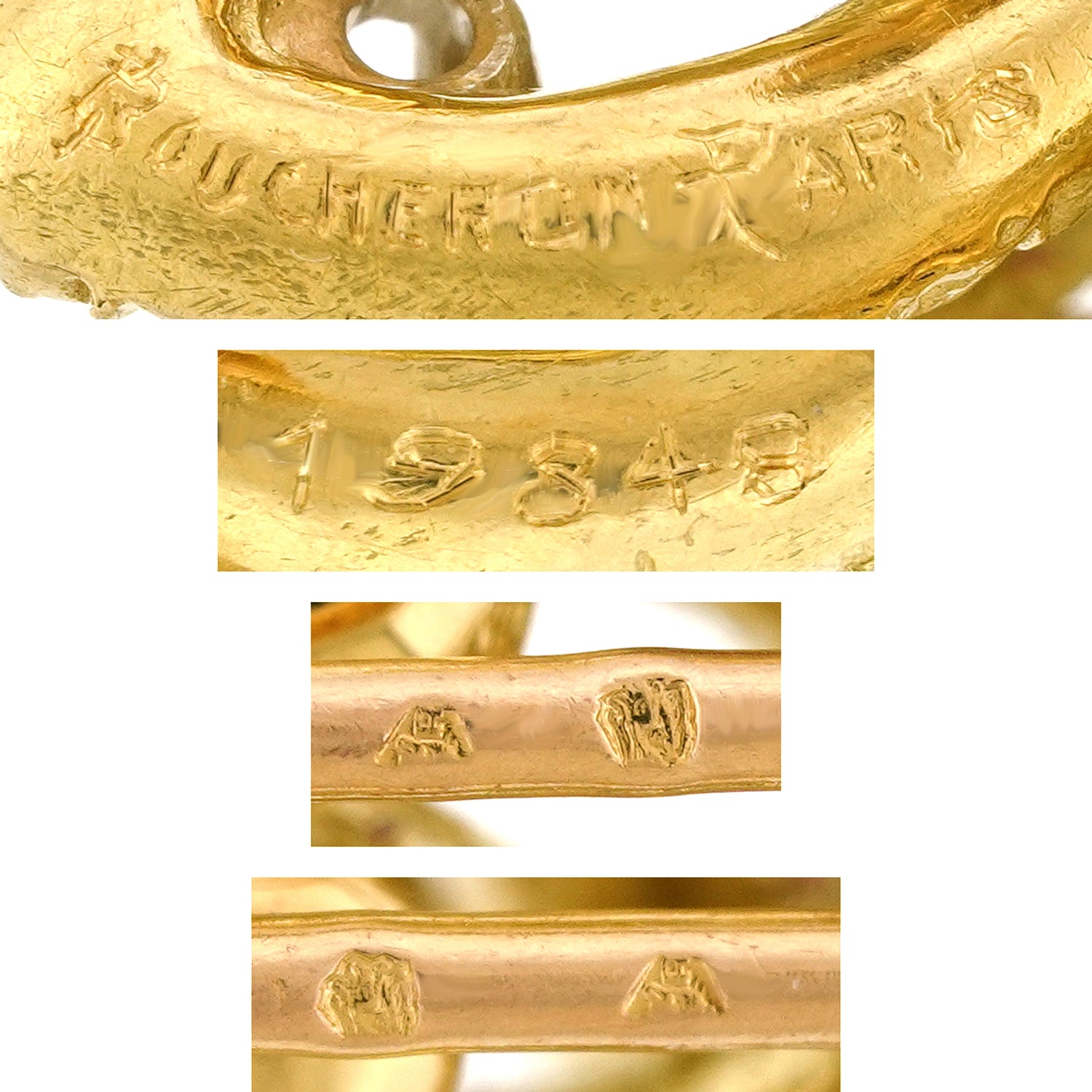 Circa 1950s, 18k, by Boucheron, Paris, France. This cheerful brooch from the renowned Parisian House of Boucheron is a delightful example of vintage fifties jewelry. Finely hand- crafted, it playfully speaks to their iconic Deco and Retro brooches. Excellent condition.