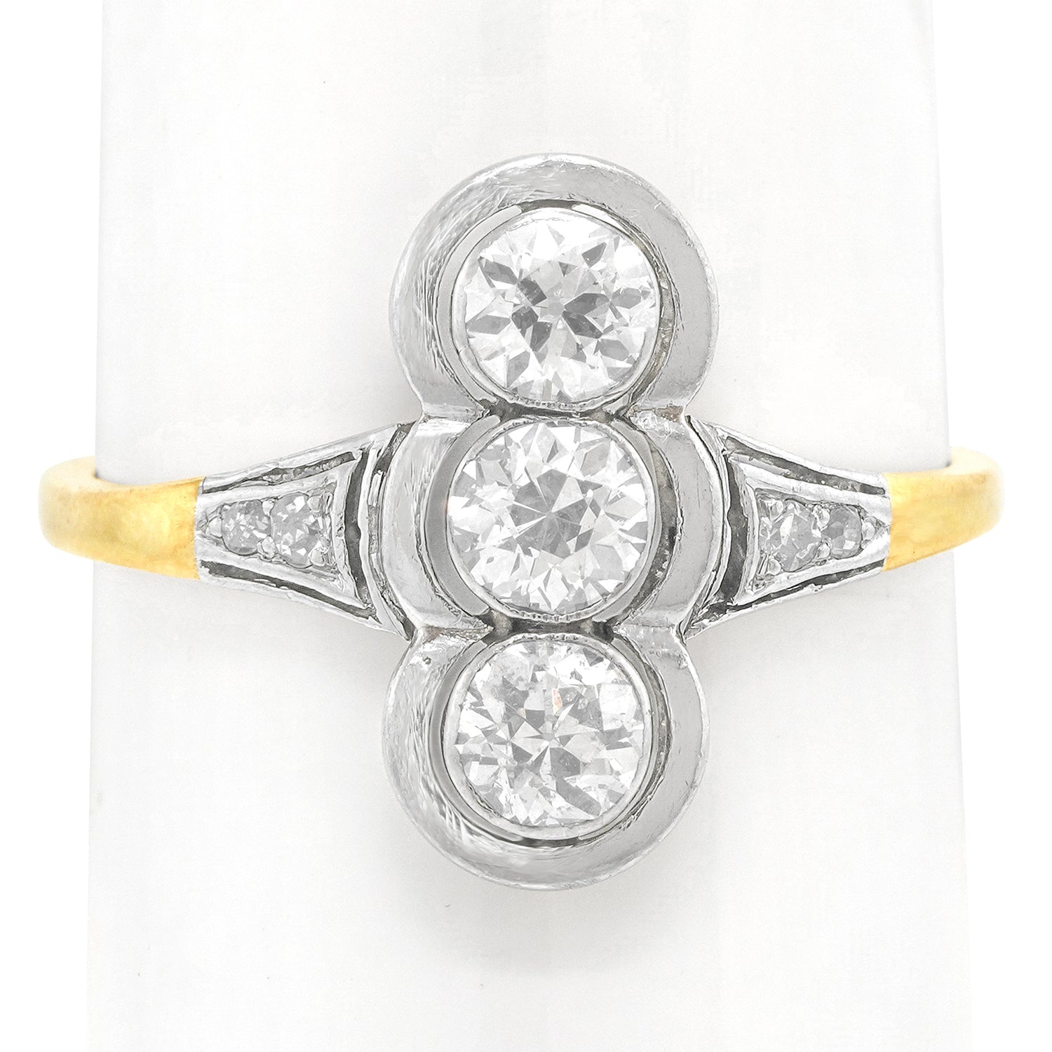 Circa 1920s, Platinum. This Art Deco jewel reflects the confident style that is the hallmark of twenties jewelry. Featuring 1.0 carats of exceptional white diamonds, fine fabrication in platinum and yellow gold completes the picture. Excellent condition.