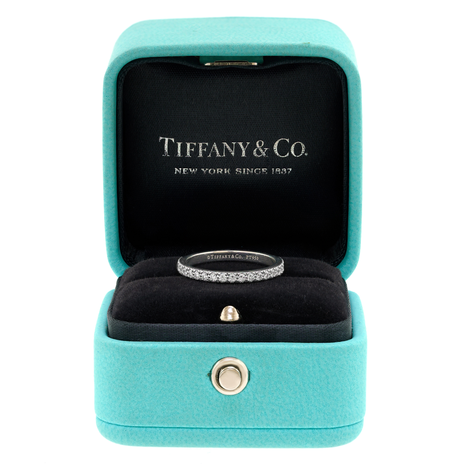 Circa 2000s, Platinum, by Tiffany & Co., New York. This chic eternity band by Tiffany is all about the diamonds! Set with .51 carats of brilliant white diamonds (G color, VS clarity) the look is classic understated glamour. All the quality and elegance we expect from New York's most loved jeweler. Excellent condition.