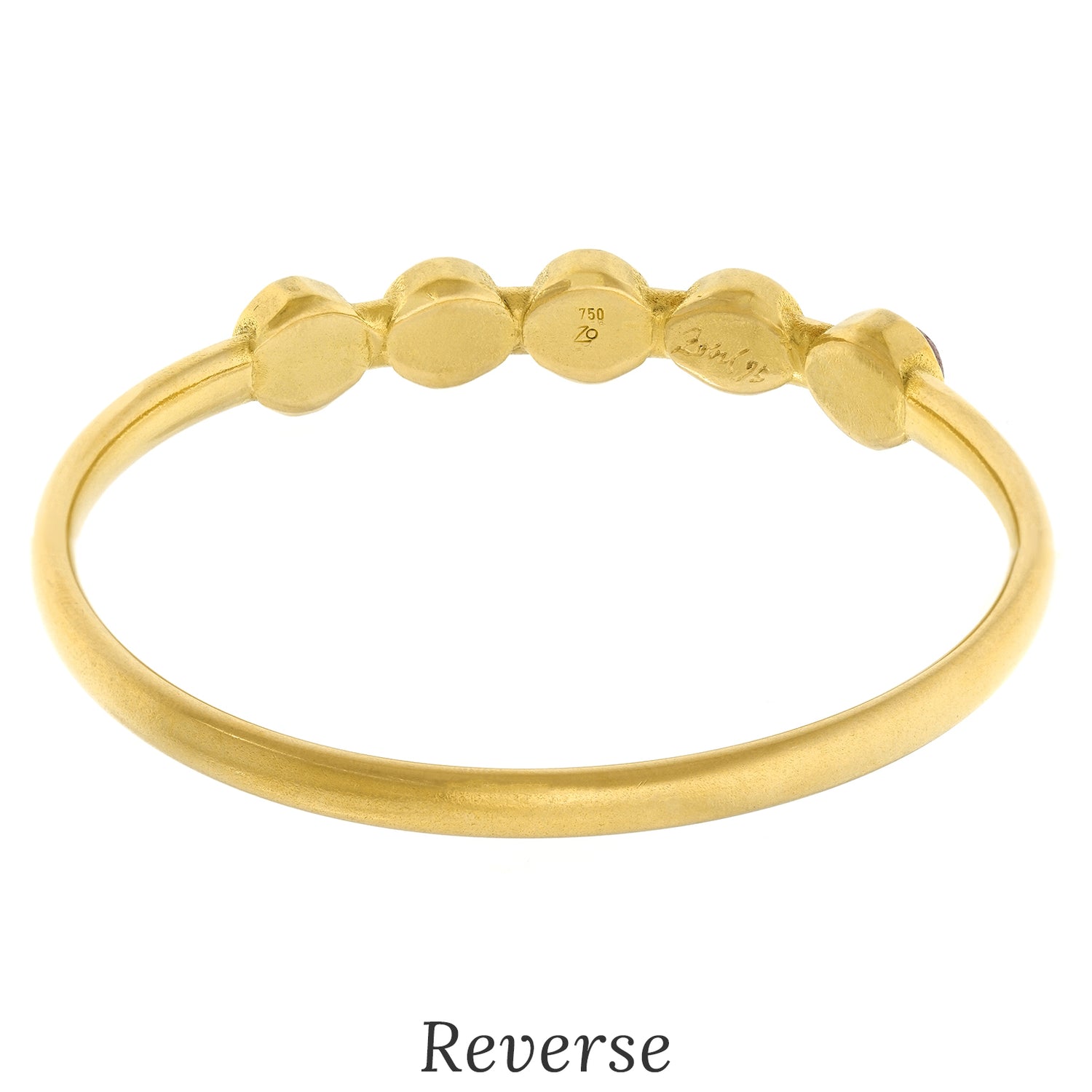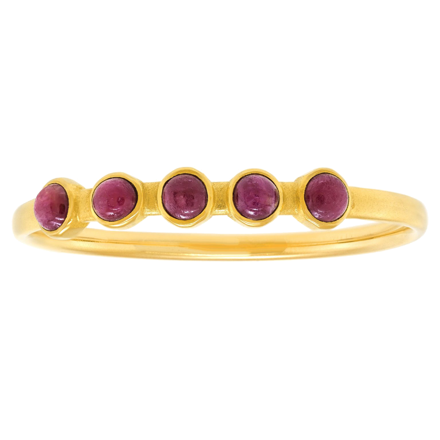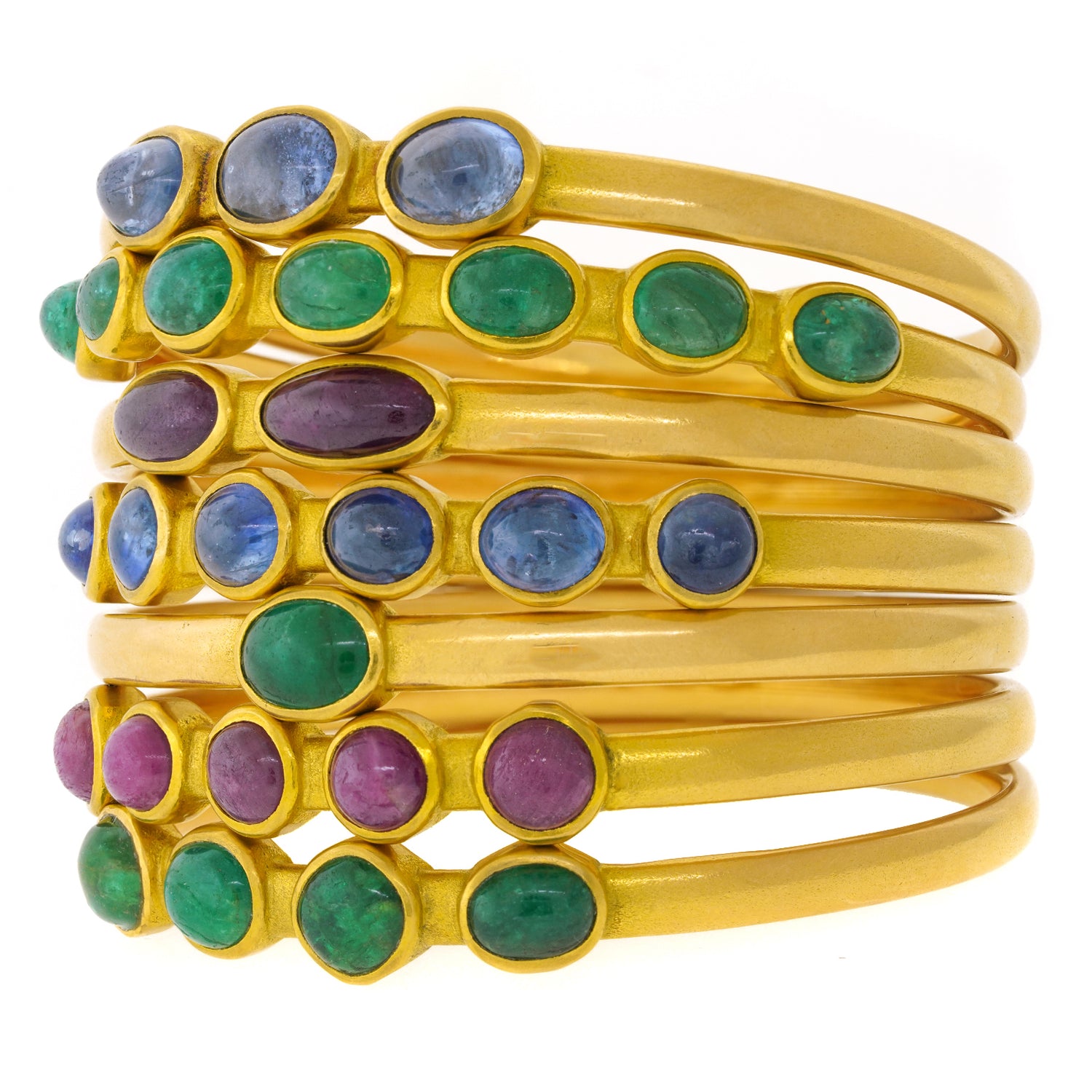 Circa 1995, 18k, by Michael Zobel Konstanz, Germany. This gorgeous gold bracelet by Michael Zobel is set with 12.0 carats of cabochon rubies. The look is ultimate chic, subtle glamour. The style and construction in eighteen-karat yellow gold is superb. It is a pleasure to wear on its own or stacked with other bangles. Excellent condition.