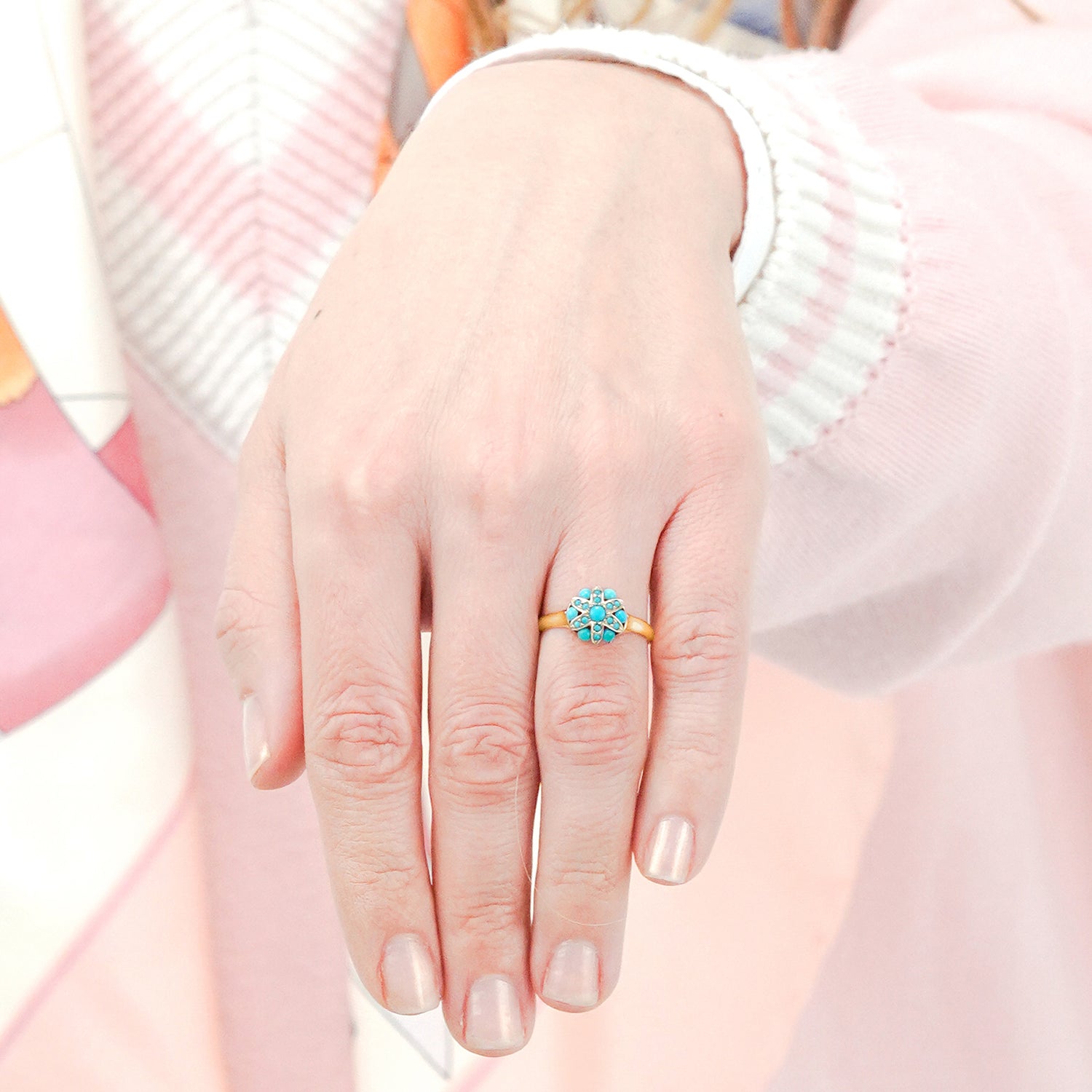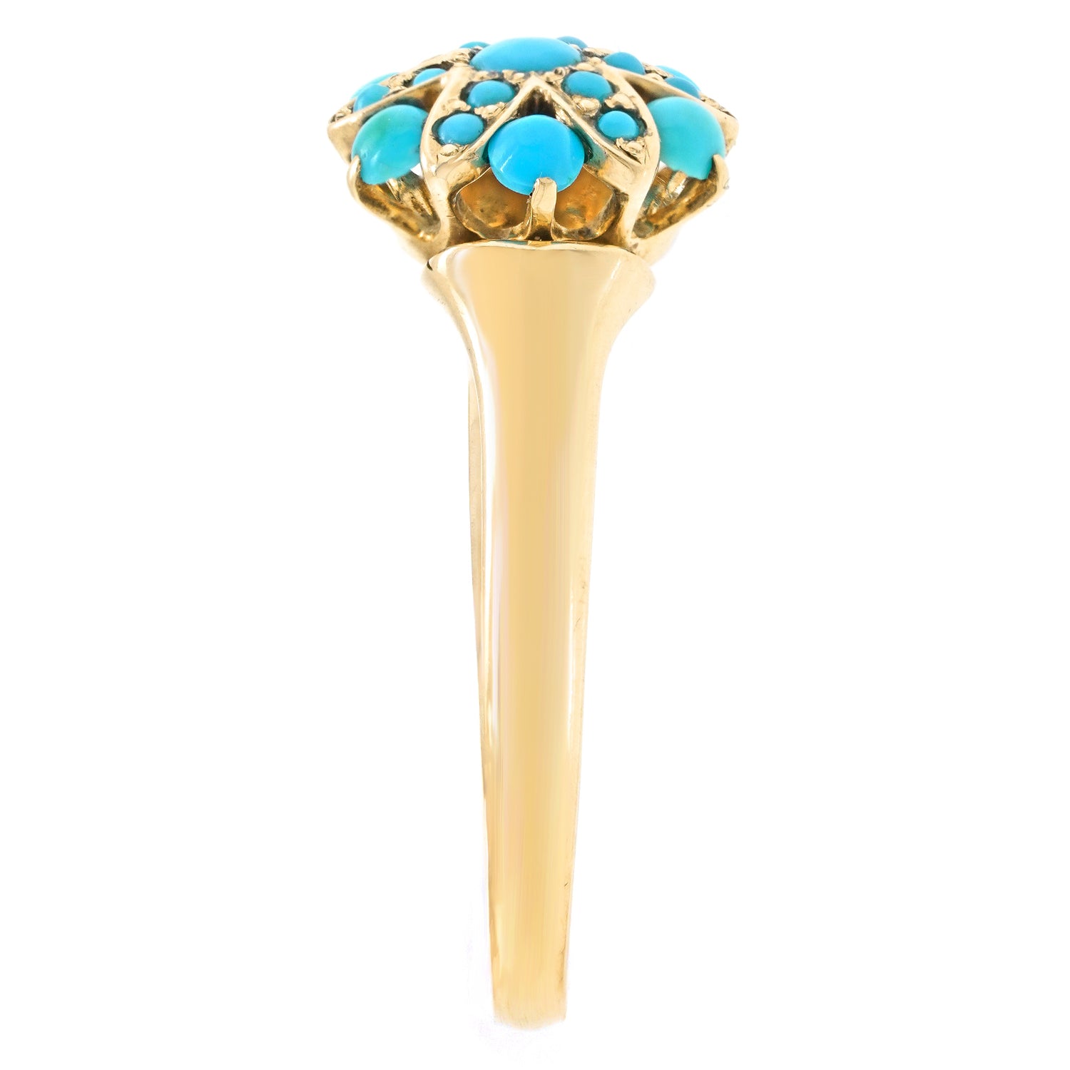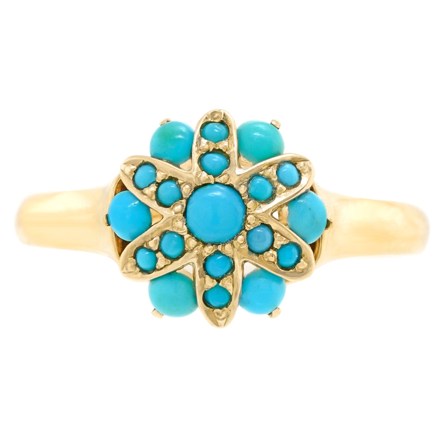 Circa 1890s, 14k. This Antique ring is a charming one-of-a-kind. The look and feel is colorful antique chic at its vintage best. Featuring Persian turquoise, it is handmade and in very good condition.