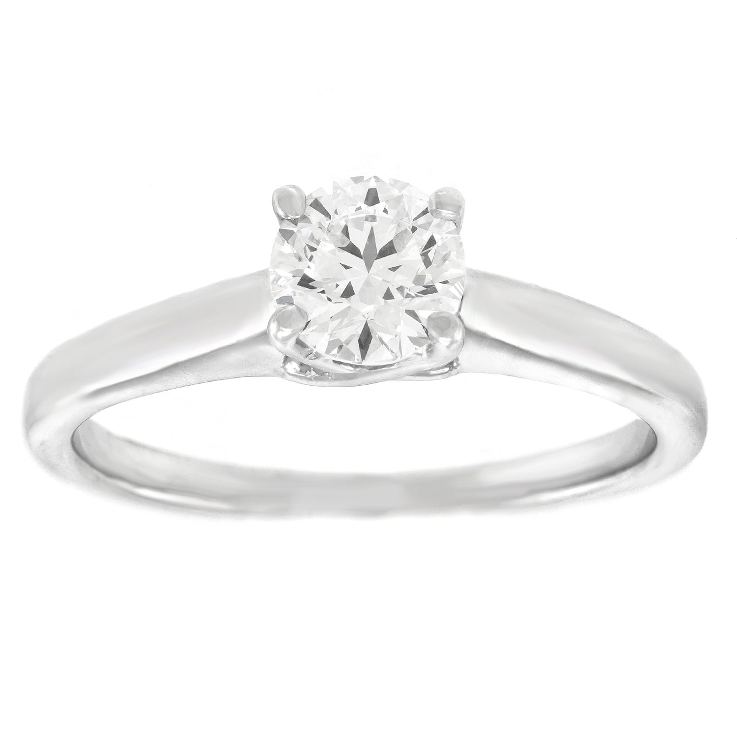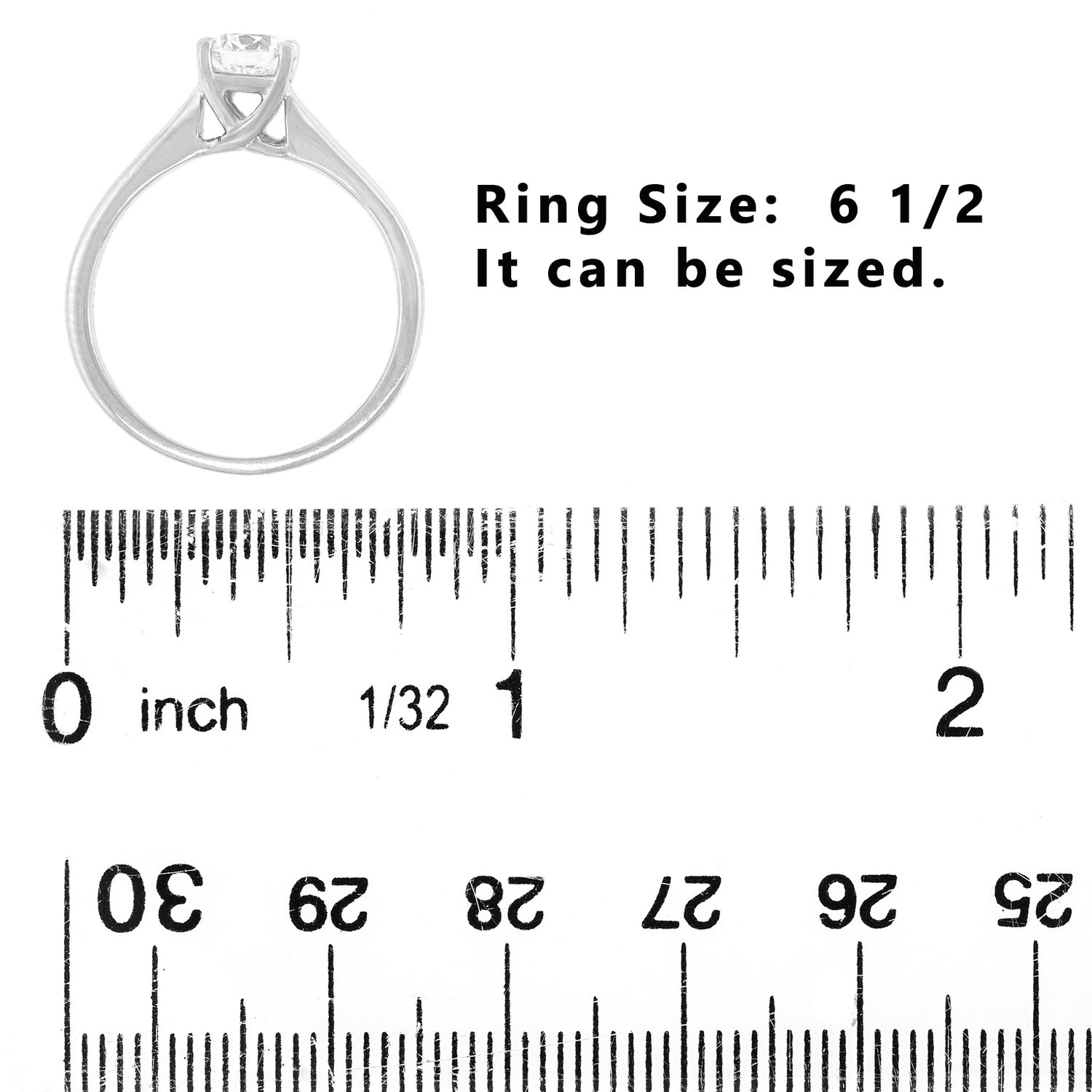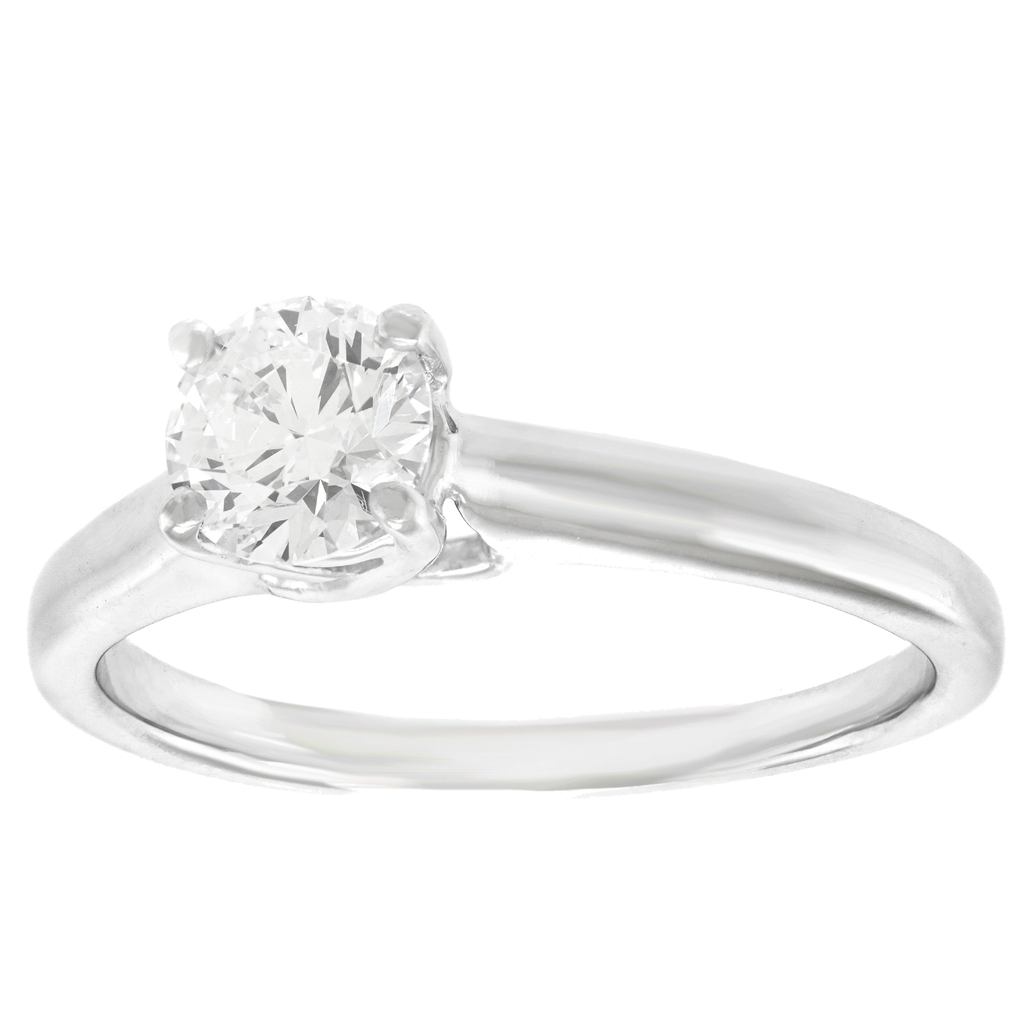 Circa 1990s, 18k and Platinum, American. Set with a brilliant white .71-carat diamond (H color and SI1 clarity), this classic nineties engagement ring is so very chic! Meticulously fabricated in platinum and eighteen-karat, the mounting is quite elegant. When viewed from the side it reveals a graceful crossover detail in the gallery. Excellent condition.
