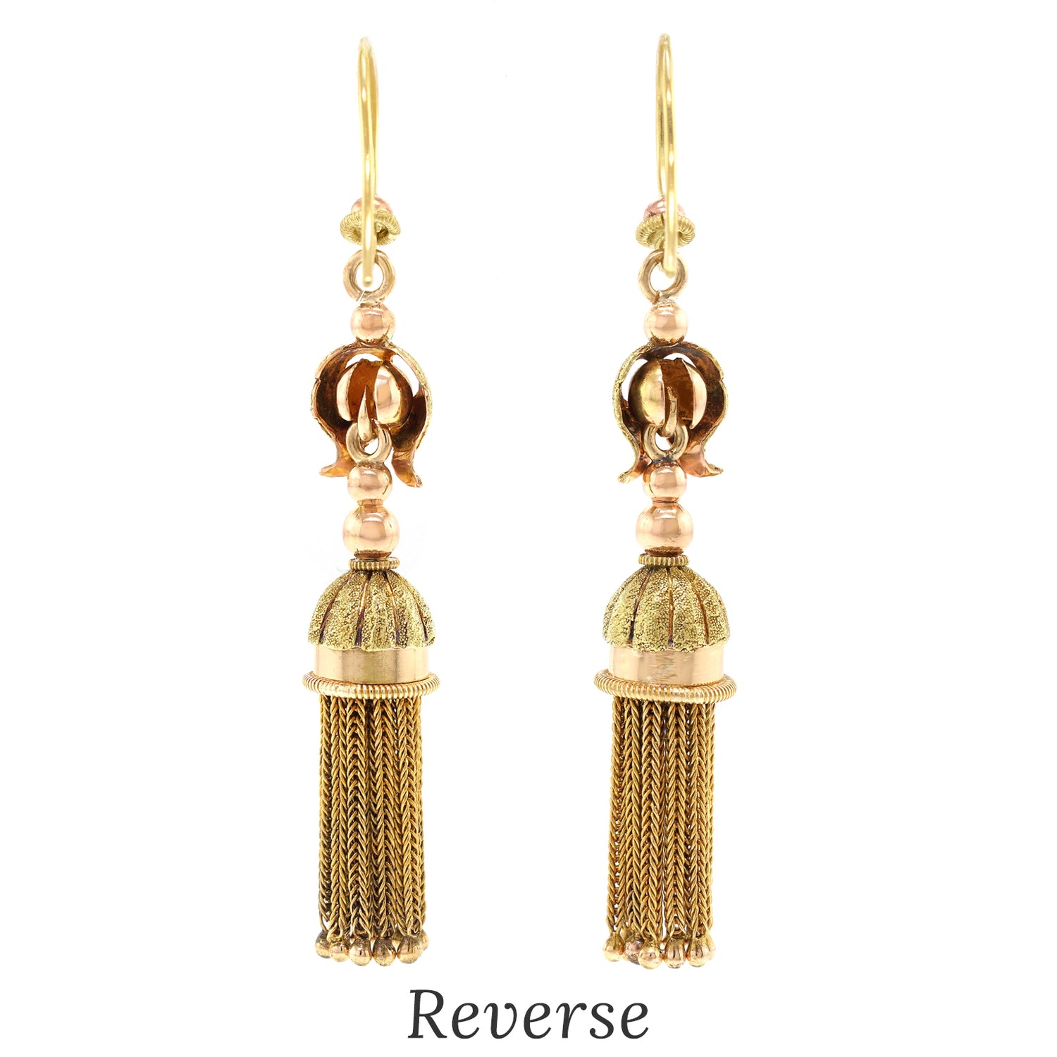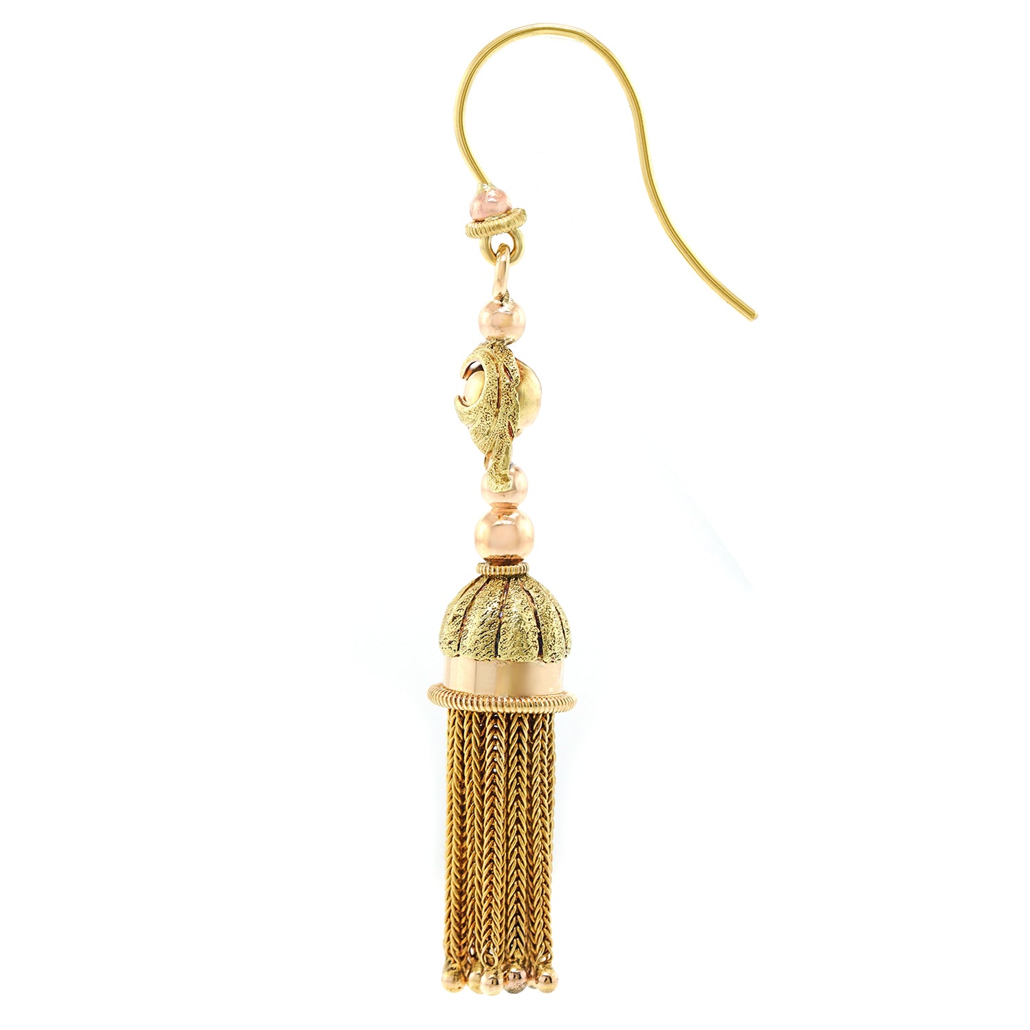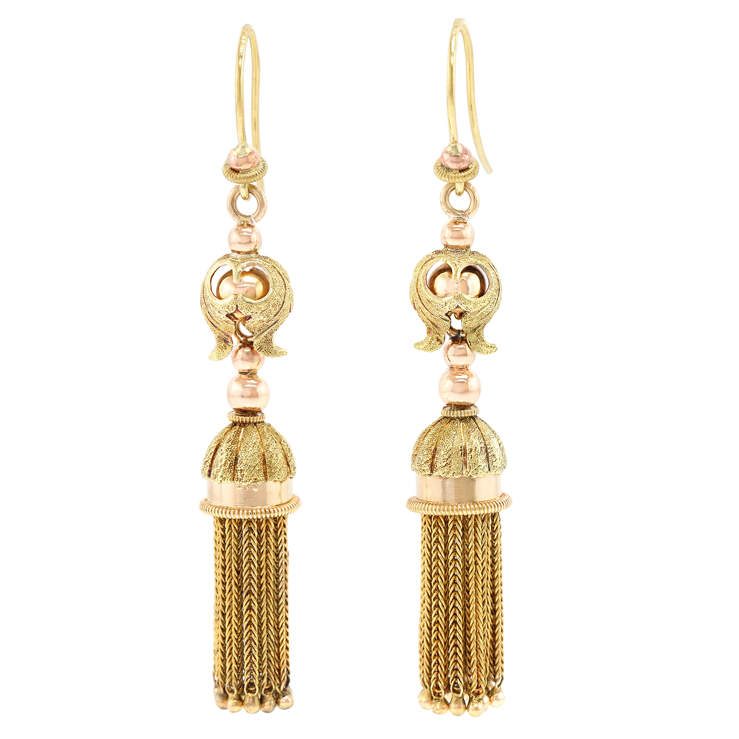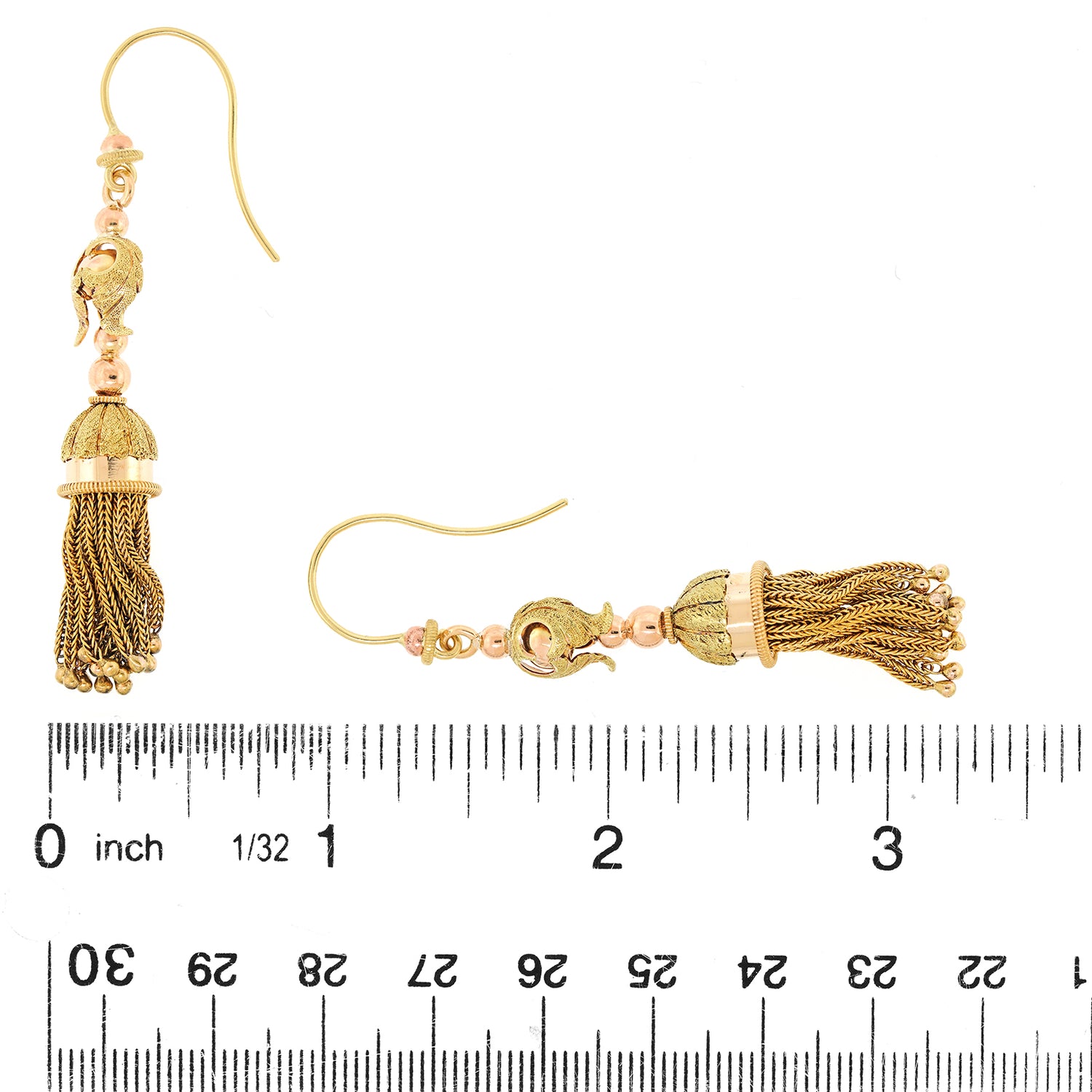 Circa 1880s, 14k. These fabulous Victorian tassel earrings in 14k yellow gold effortlessly rock heels and jeans to ball gowns. The look is vintage chic at its au courant antique best! Finely fashioned, they are in excellent condition.