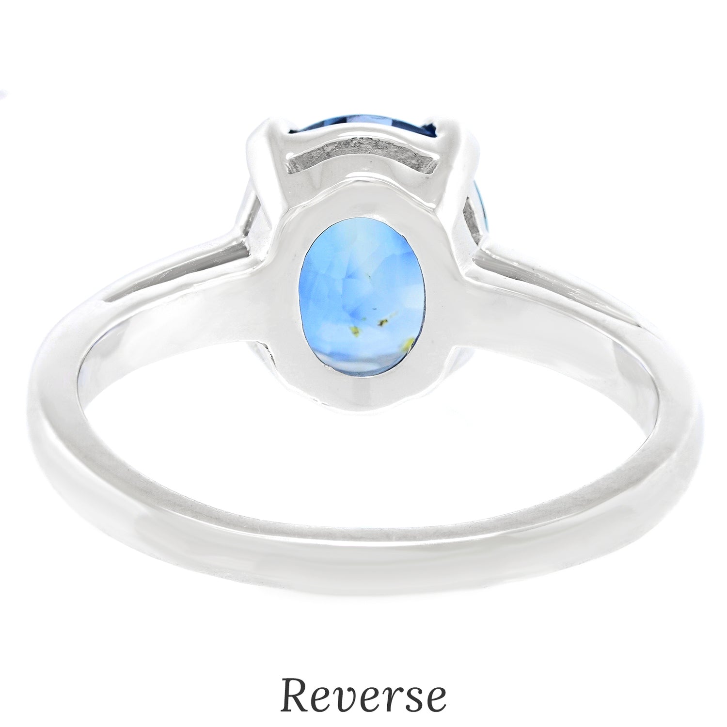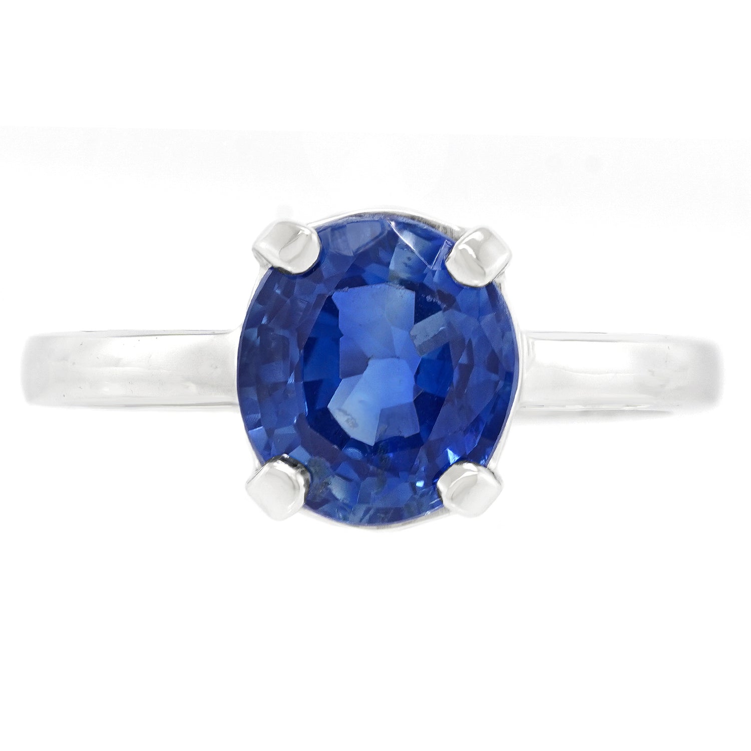 Circa 2000s, 14k, American. This classic solitaire is all about color. The 2.66-carat No Heat Sapphire is a gorgeous shade of blue. Finely fashioned in fourteen-karat white gold, this ring is in excellent condition.