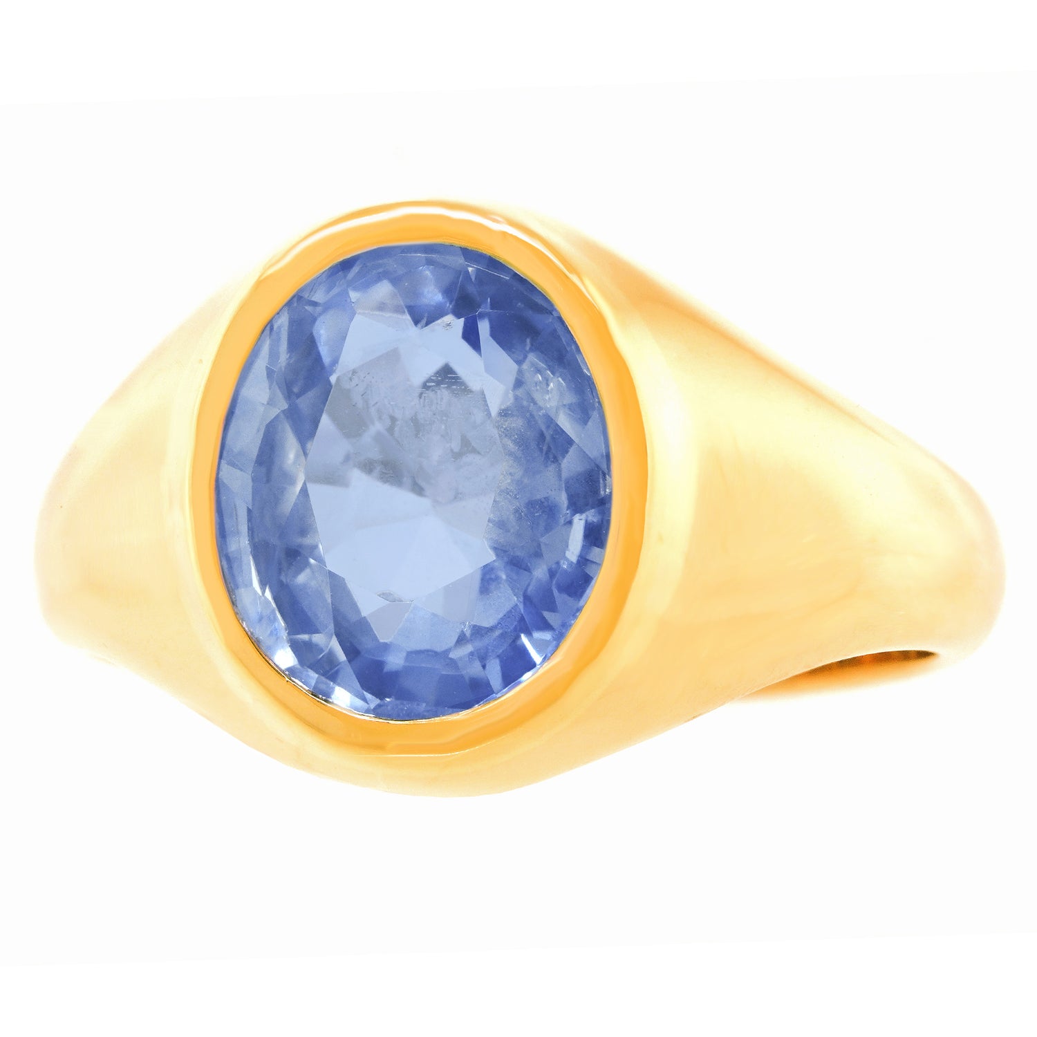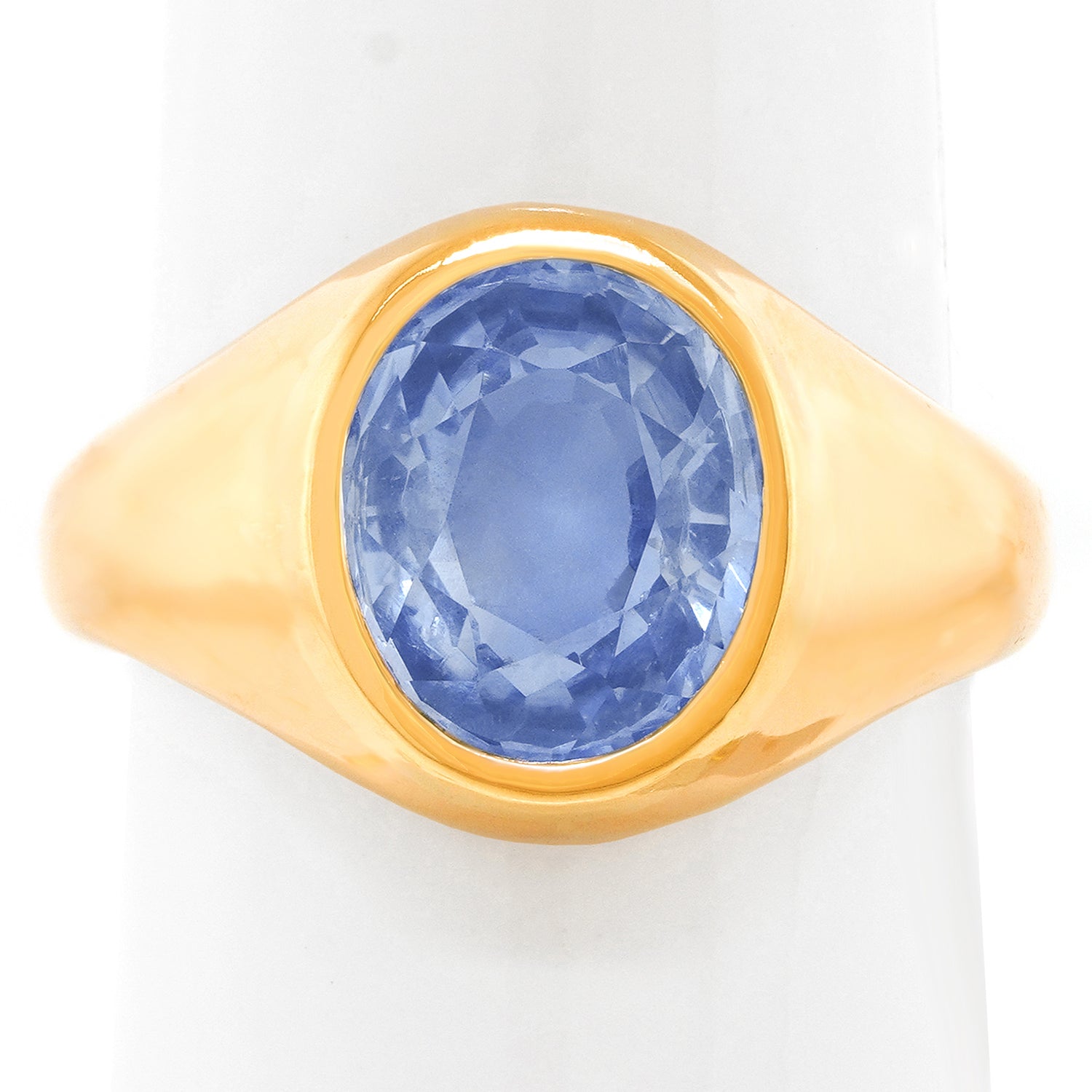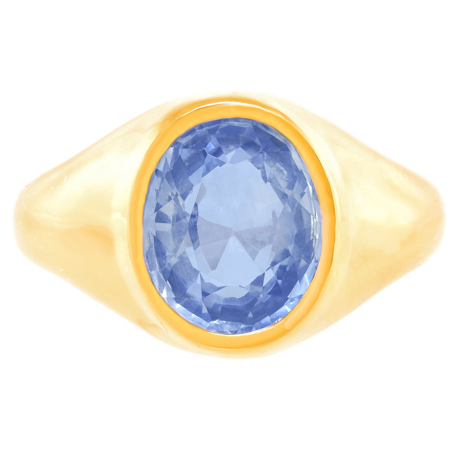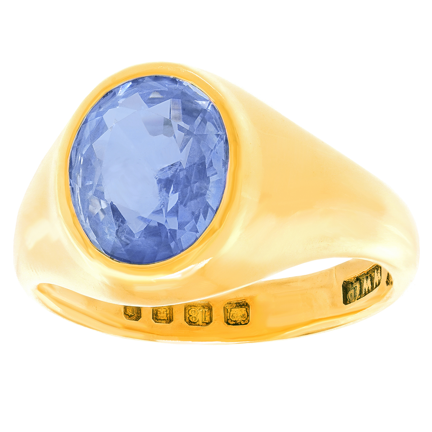 Circa 1929, 18k, London England. Set with a lovely 4.01-carat cornflower blue No Heat, Ceylon sapphire (GIA laboratory report), this Art Deco signet ring is sleekly elegant. The look is vintage chic at its town and country best. Perfect for any moment of fashion, it is finely fabricated in 18k. London Goldsmiths are arguably the finest in the world. Excellent condition.
