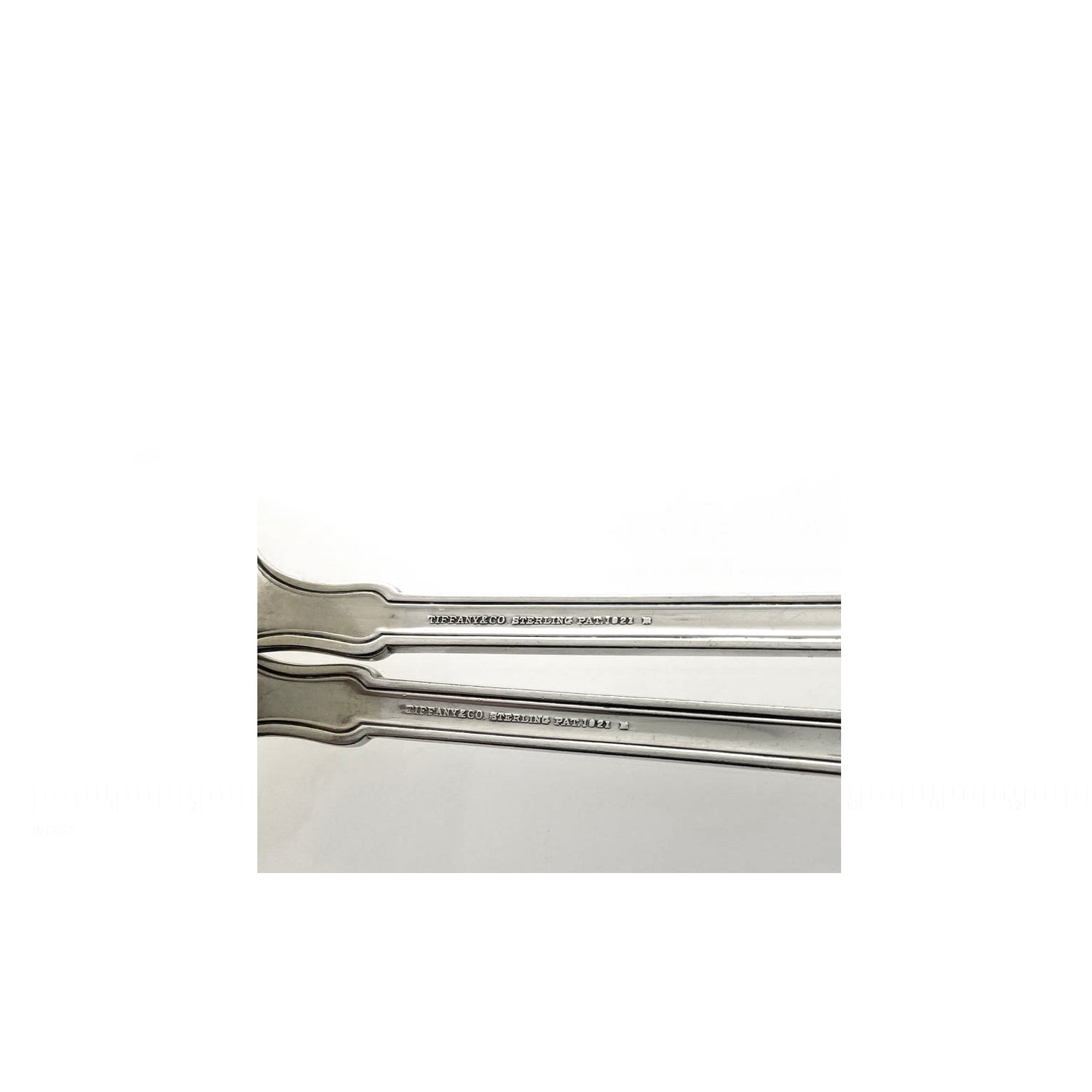 Circa 1938, Sterling, by Tiffany & Co. Hamilton pattern (also known as Gramercy). Gold wash. No monogram and in excellent condition.