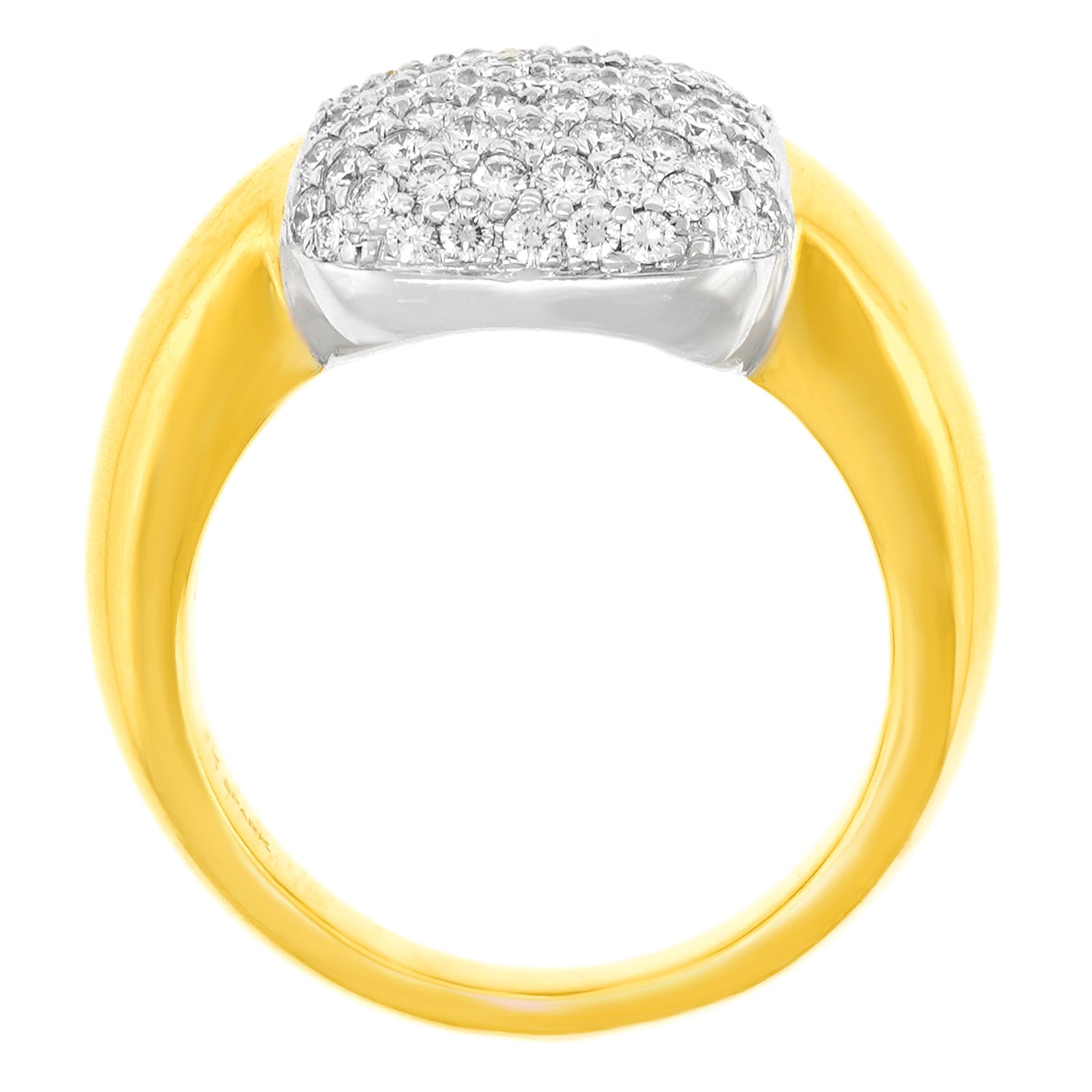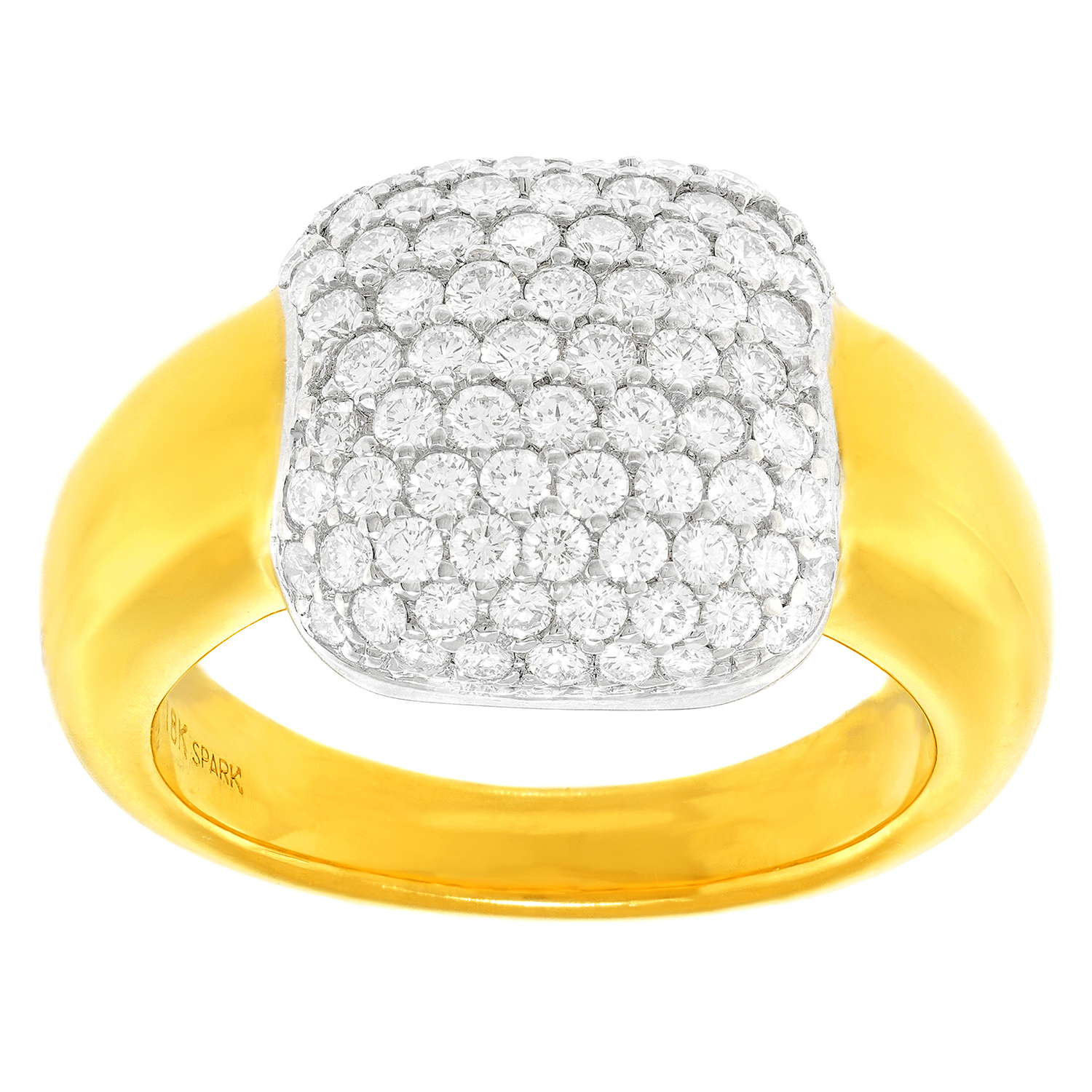 Circa 2000s, 18k, by Spark Creations, New York. All day everyday, this delicious daytime diamond ring by Spark Creations of New York City is gorgeous. Decorated with 1.0 carat of fine white diamonds (G color, VS clarity) set in white gold on a yellow gold band. The look is American glamour at its sidewalk-to-catwalk best. For over 40 years, Spark Creations has made spectacular jewelry.  Excellent condition.