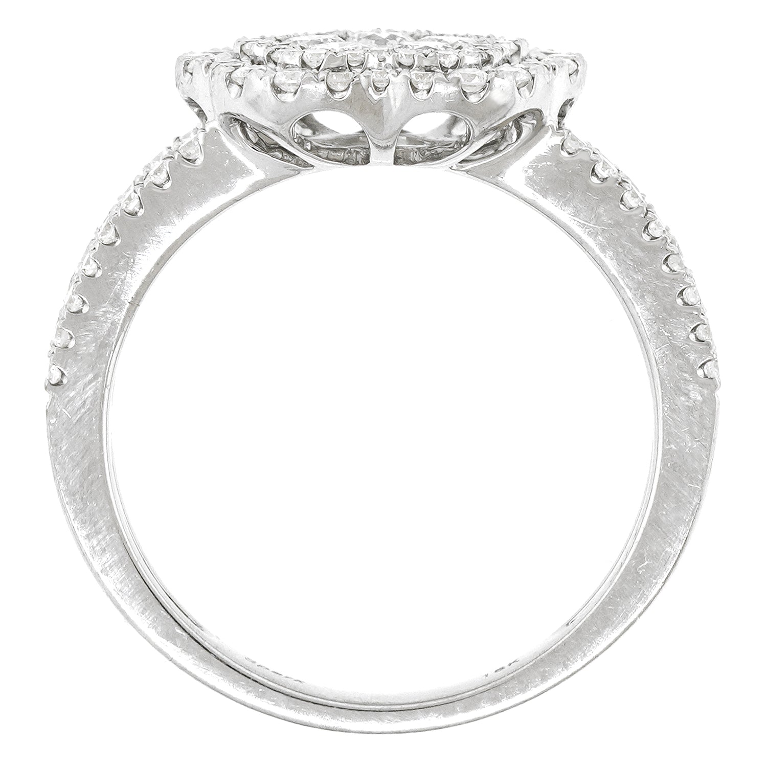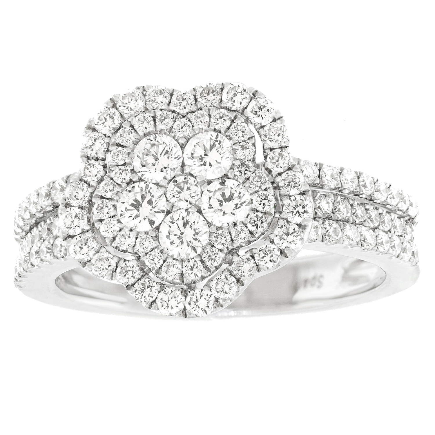 Circa 2000s, 18k, by Spark Creations, New York. This ring’s elegant flower motif features 1.25 carats of fine white diamonds (G color, VS clarity). The perfect ring to dress up or down, its classic look is underscored by superb fabrication. For over 40 years, Spark Creations, based in New York City, has been known for spectacular quality, using only the finest materials. Excellent condition.