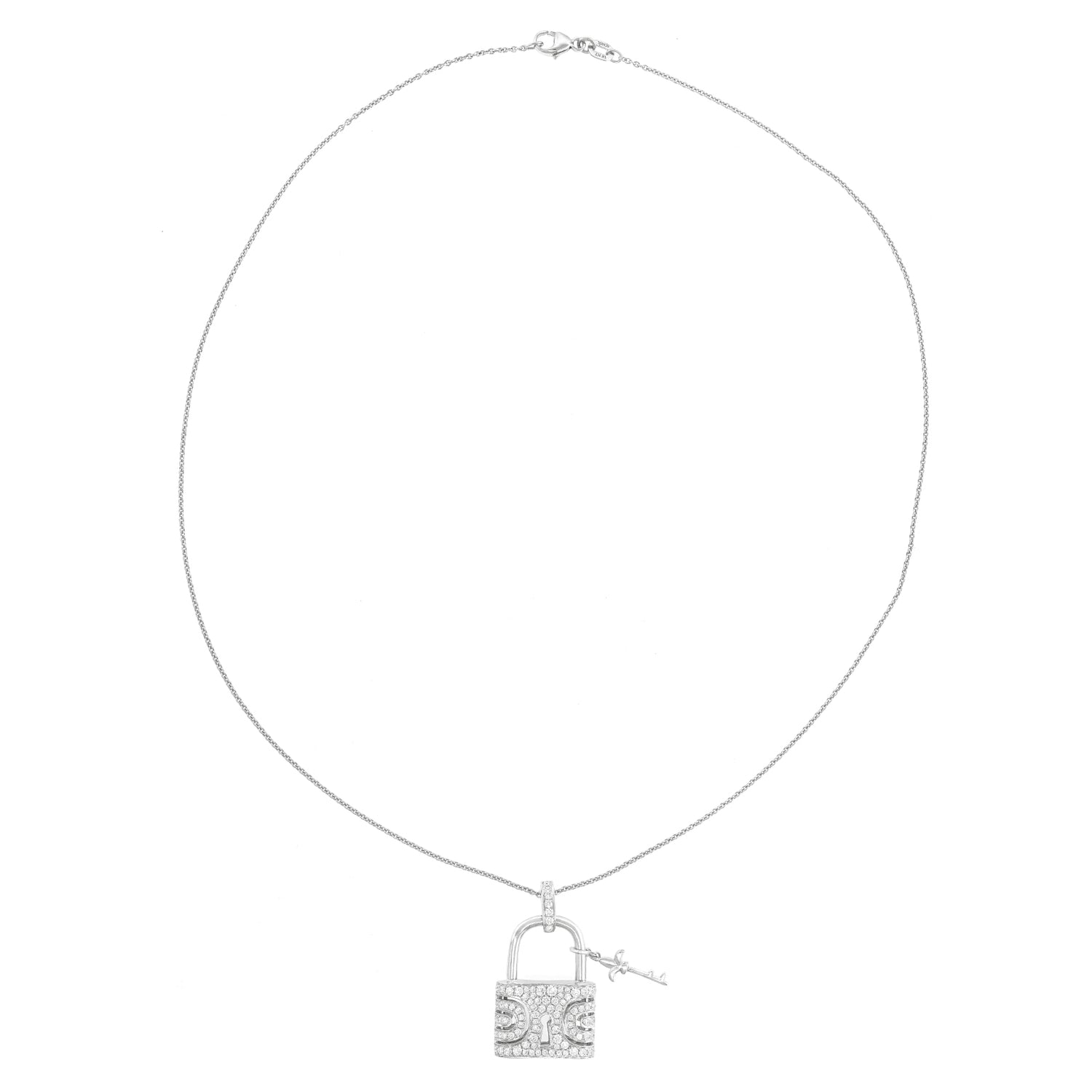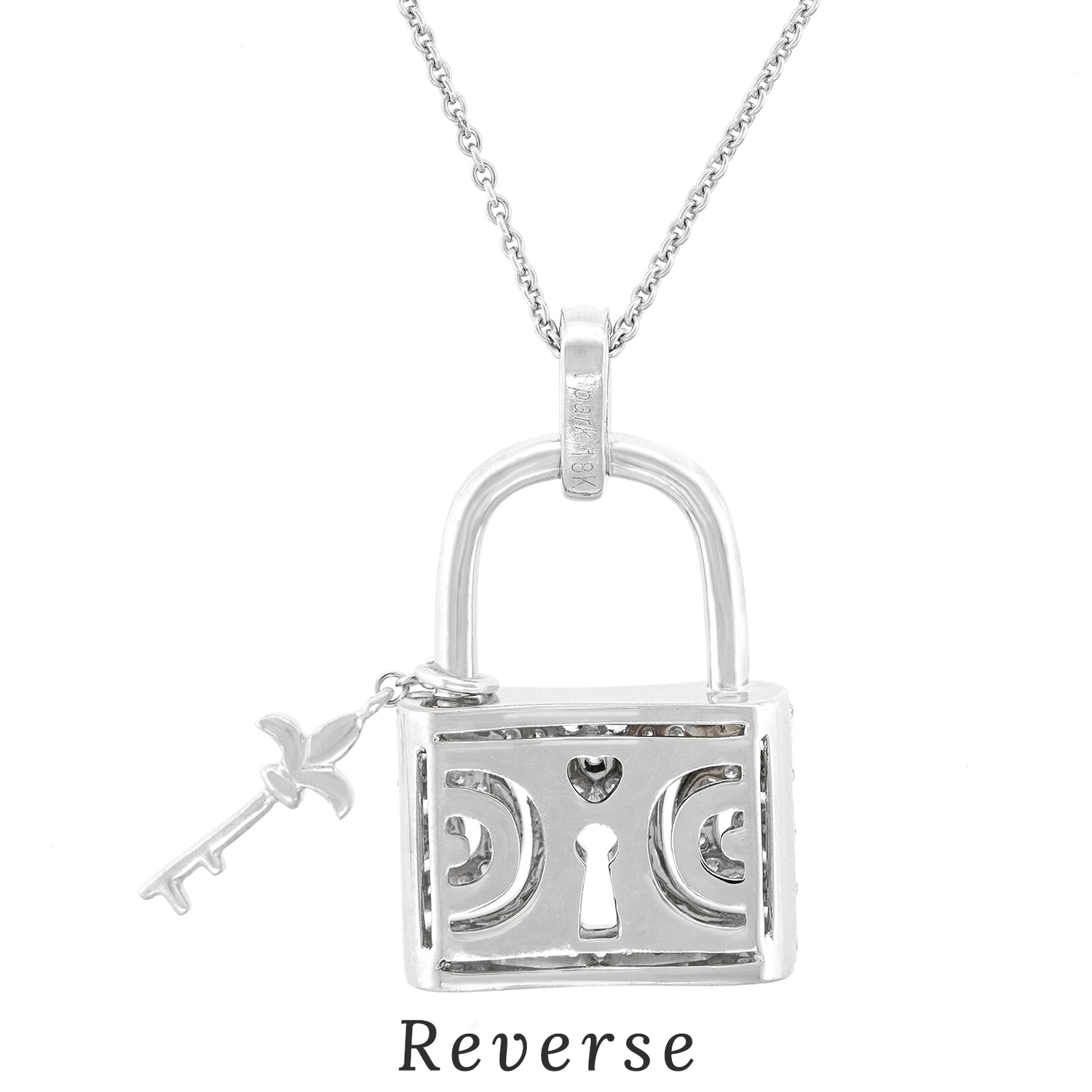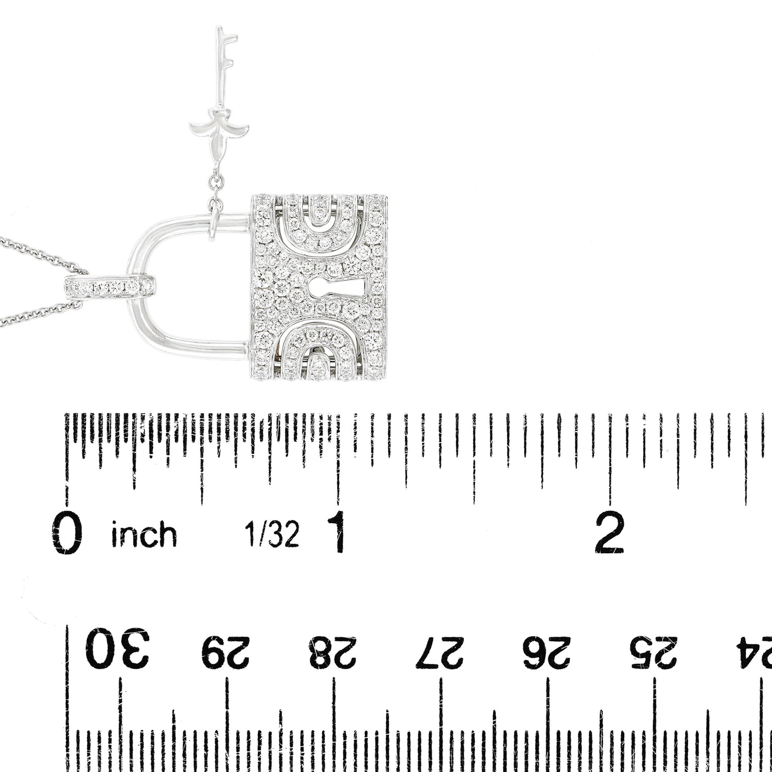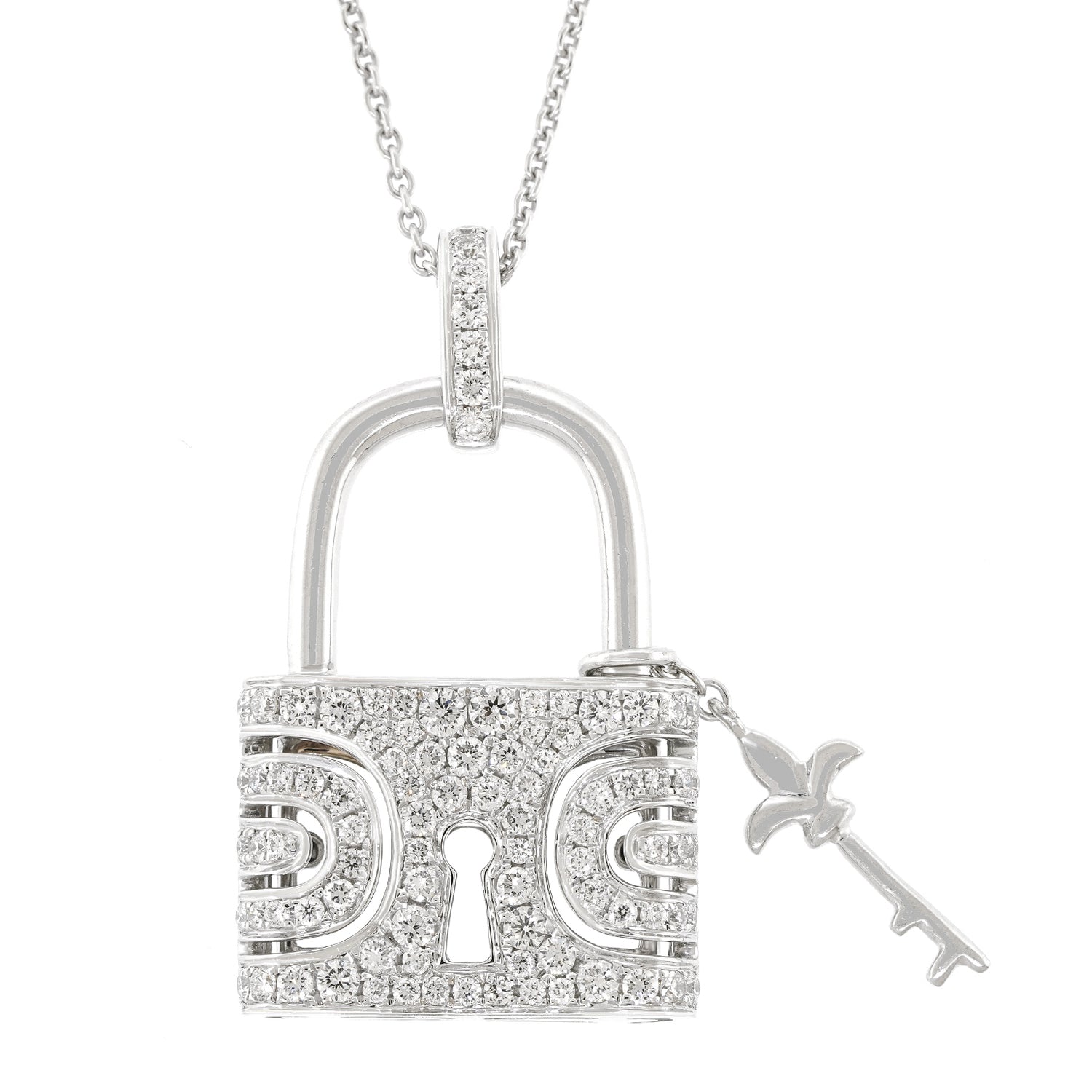 Circa 2000s, 18k, Spark Creations, New York. Rife with fine details and diamonds, we can't help but fall in love with this lock & key necklace. From cute work looks to date night dresses, this necklace is the perfect romantic accessory. Meticulously fashioned in eighteen-karat white gold and set with 1.0 carat of brilliant white diamonds (G color VS clarity), it is in excellent condition. Noted: Spark chain included.