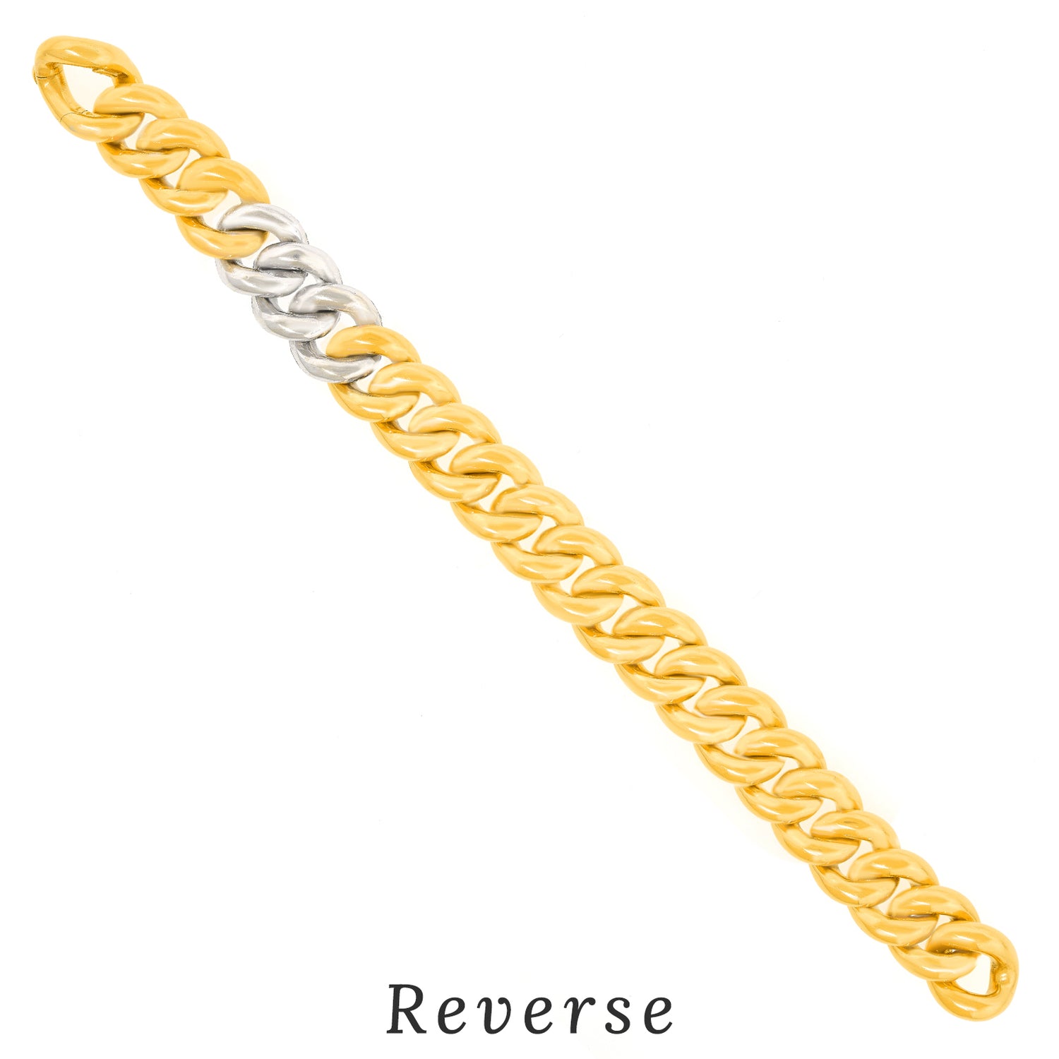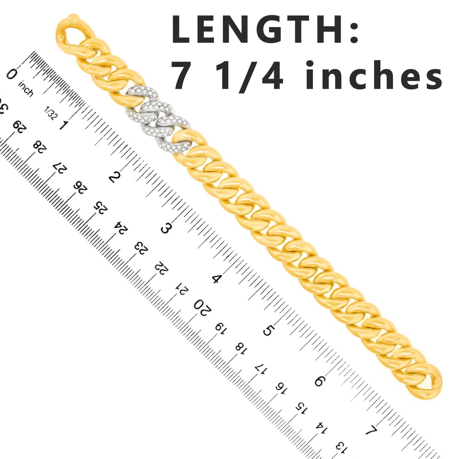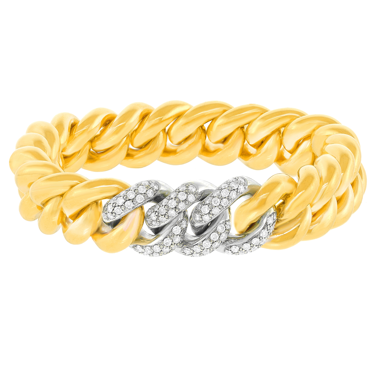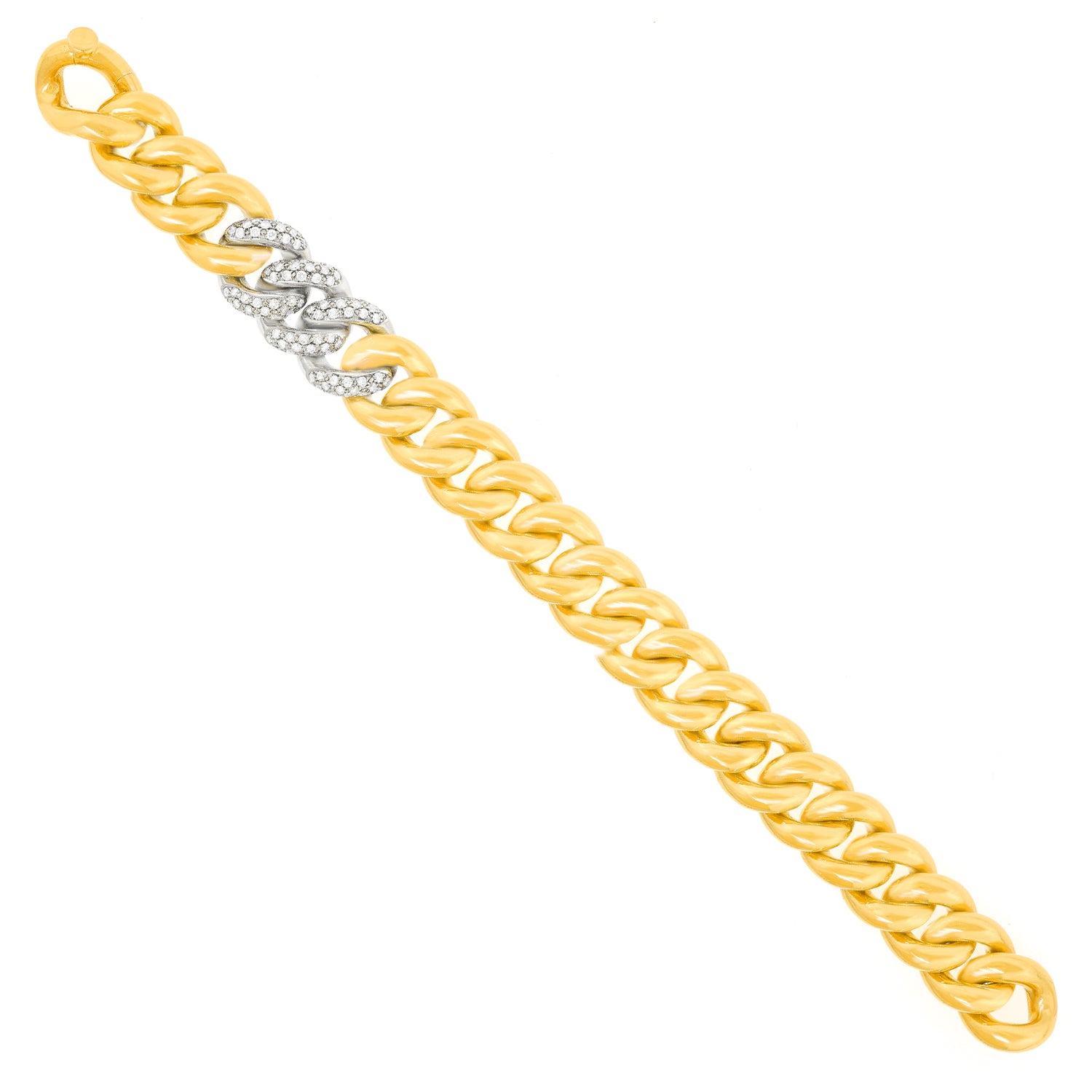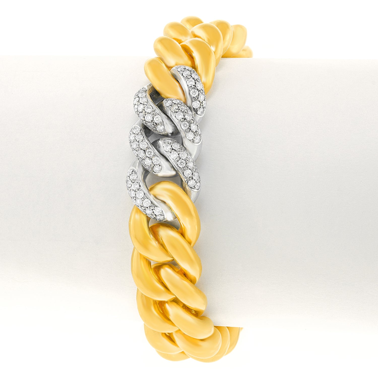 Circa 1960s, 18k, by Ponti Gennari, Genève, Switzerland. This fabulous link bracelet is spectacularly stylish, visually pleasing, and delightfully heavy. Juxtaposing a flow of polished gold with three diamond pave links, the look is understated Swiss fashion at its French Genève best.. Superbly fabricated, it is the ultimate in everyday diamonds. Ponti Gennari is known for their quality workmanship. Excellent condition.