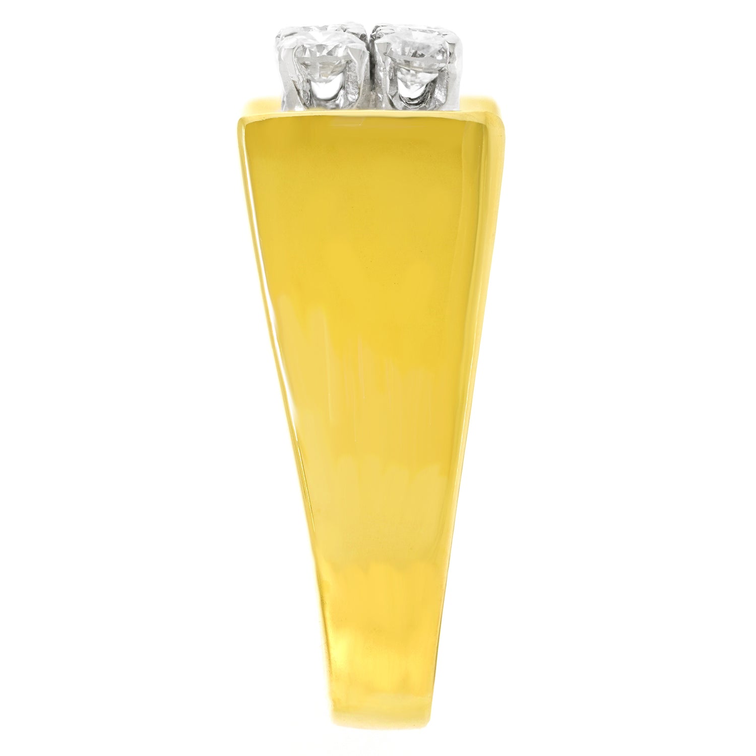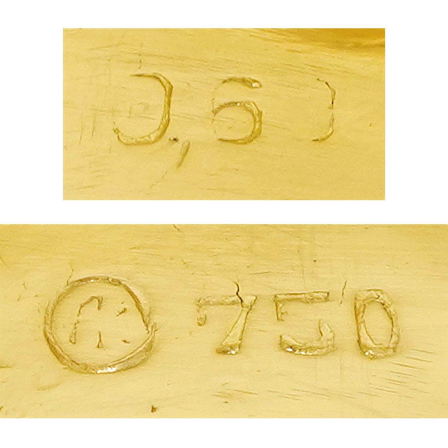 Circa 1960s, 18k, by Kurz, Zurich, Switzerland. This 18k ring has it all -- superb fabrication, fine white diamonds, and a design that effortlessly blends post-modern style with contemporary sixties chic. The look is effortless cool for an anywhere, anytime style! Kurz is known for quality fabrication, superb designs, and fine stones. Excellent condition.