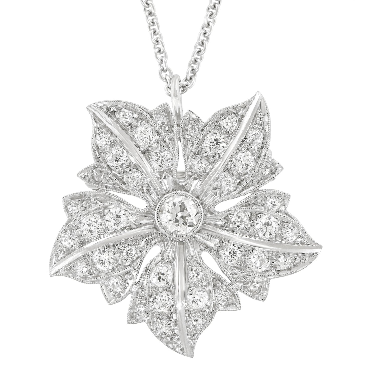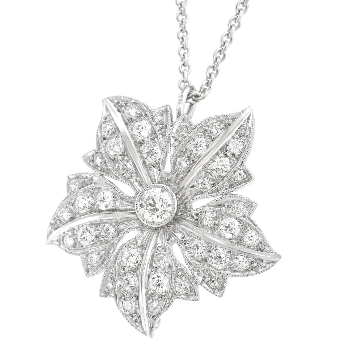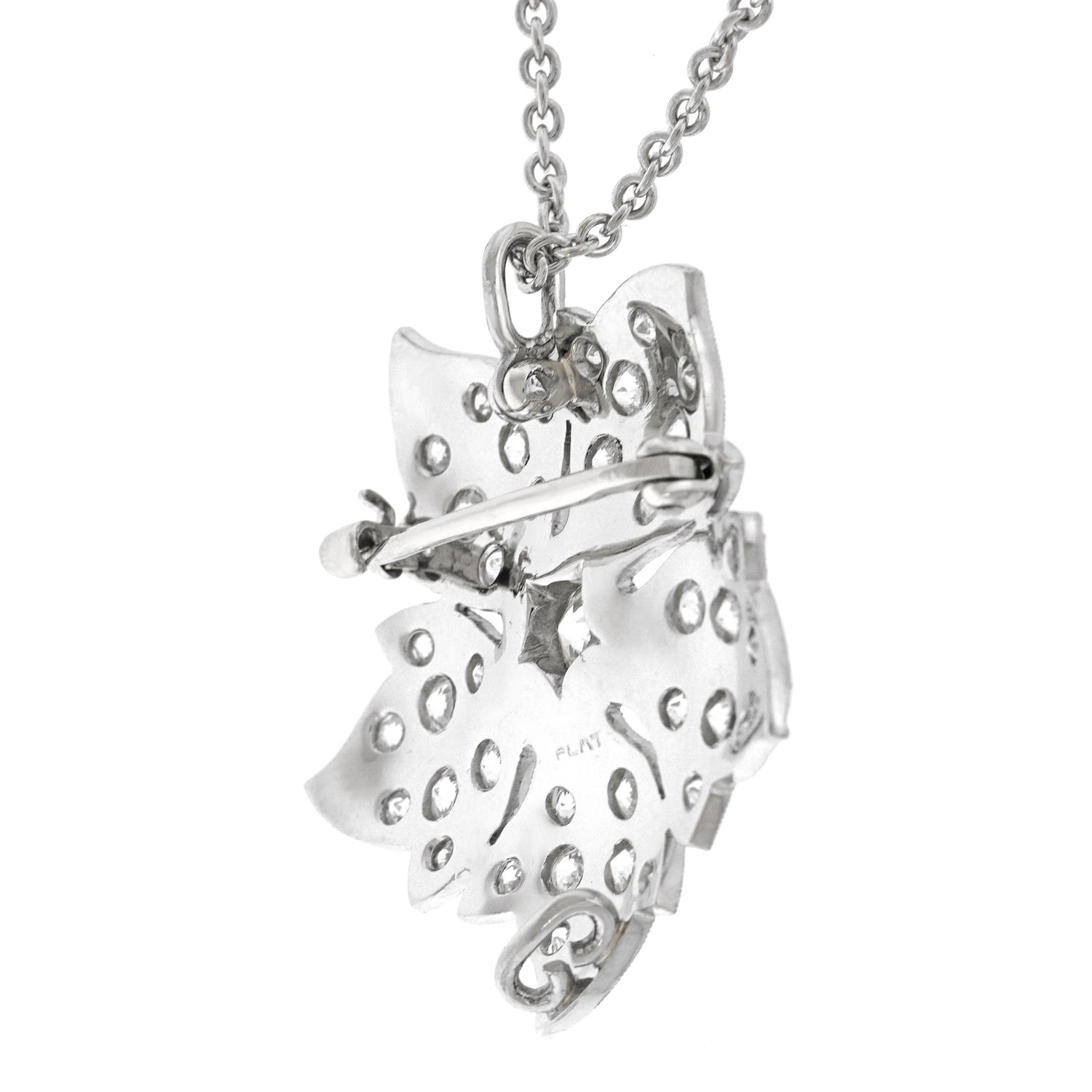 Circa 1920s, Platinum. This cheerful Art Deco brooch features 2.50 carats of brilliant white diamonds (H-G color, SI1-VS clarity). The perfect size; it goes brilliantly on a suit, cocktail dress or gown, it will also be irreverently chic with heels and jeans. Additionally, a great gift for anyone who wears a Tux or sport jacket. Superbly fabricated in platinum, this jewel is in excellent condition.