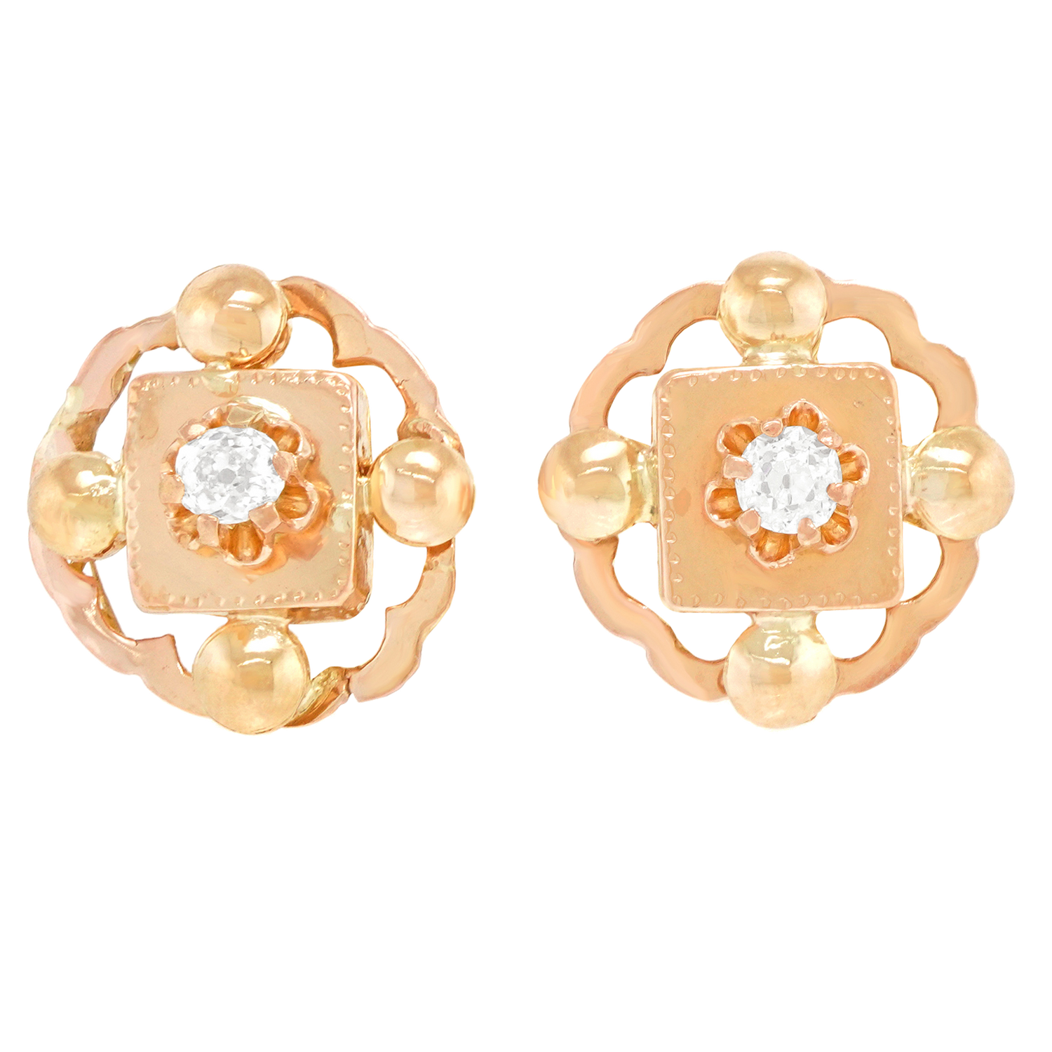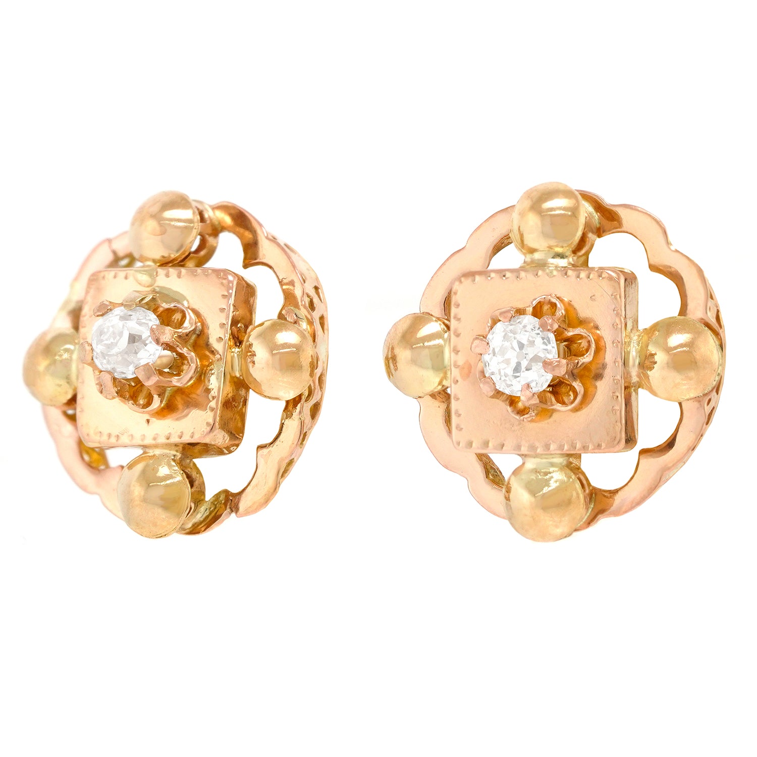 Circa 18k, 1870-80s, 18k. These Victorian earrings are a fashion delight. Finely made, they are in excellent condition. Noted: Converted to posts.
