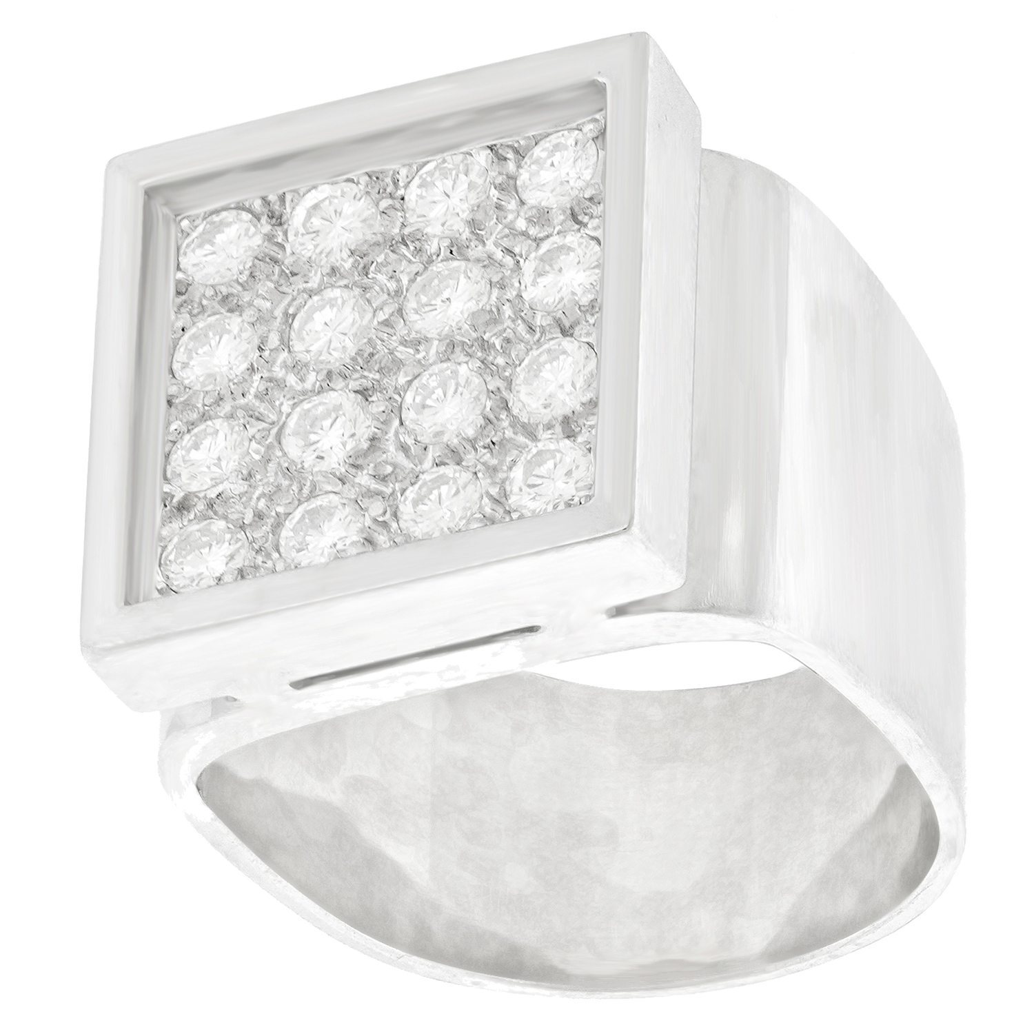 Circa 1960s, 18k, Switzerland. In the big bold, diamonds category, this 18k white gold ring has it all - a fabulous sixties Modernist design, 1.0 carats of fine white diamonds (H color, VS clarity), and a sophisticated visual presence! Fine fabrication completes the picture. Excellent condition.