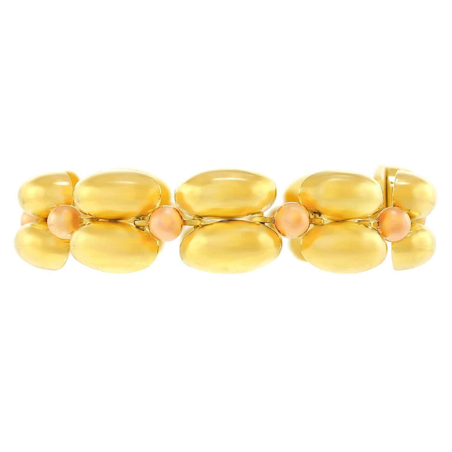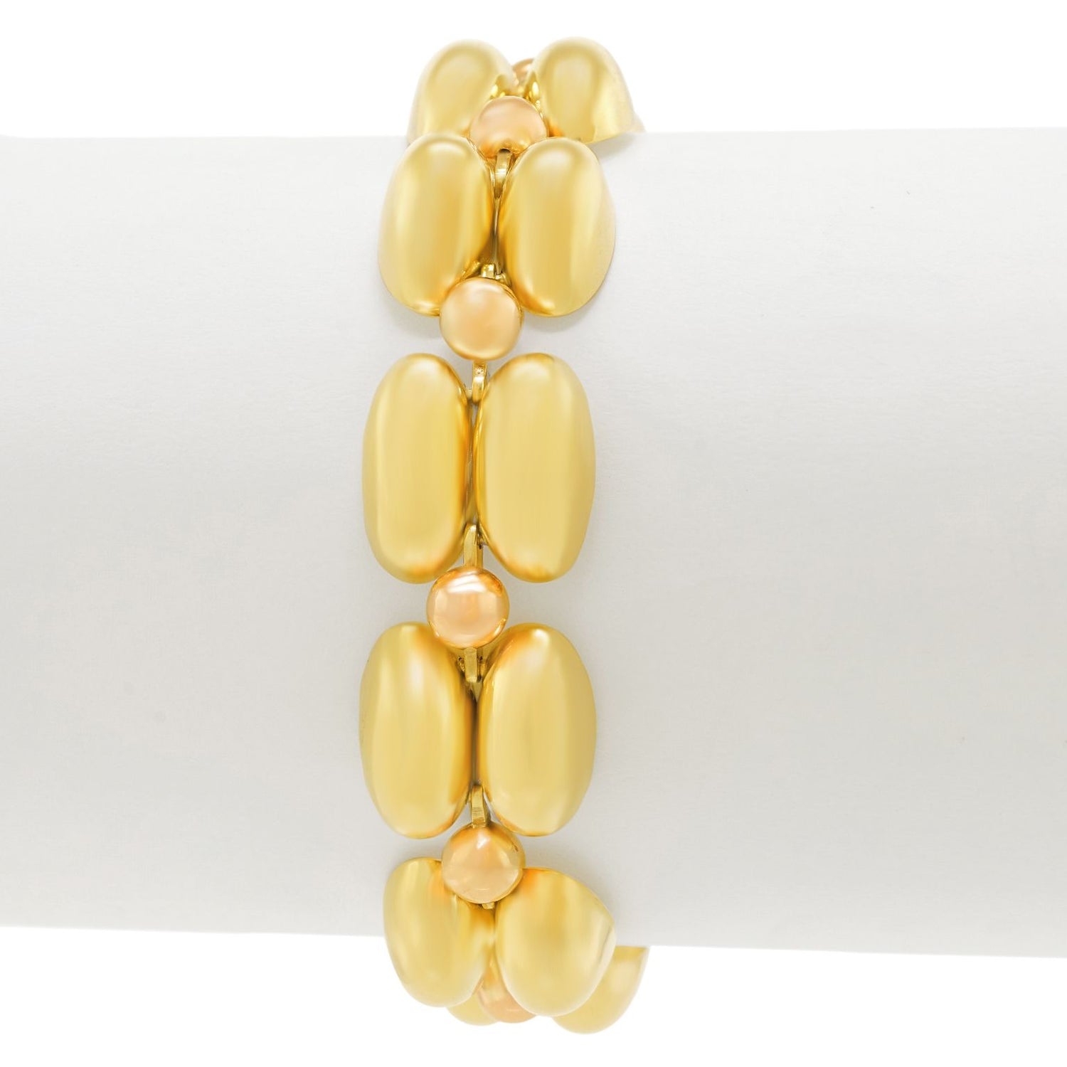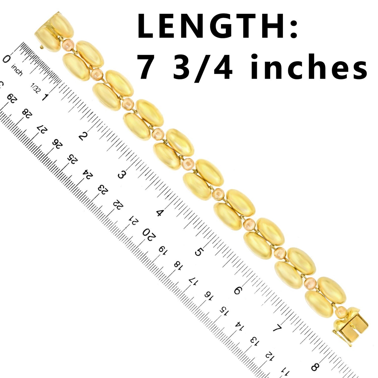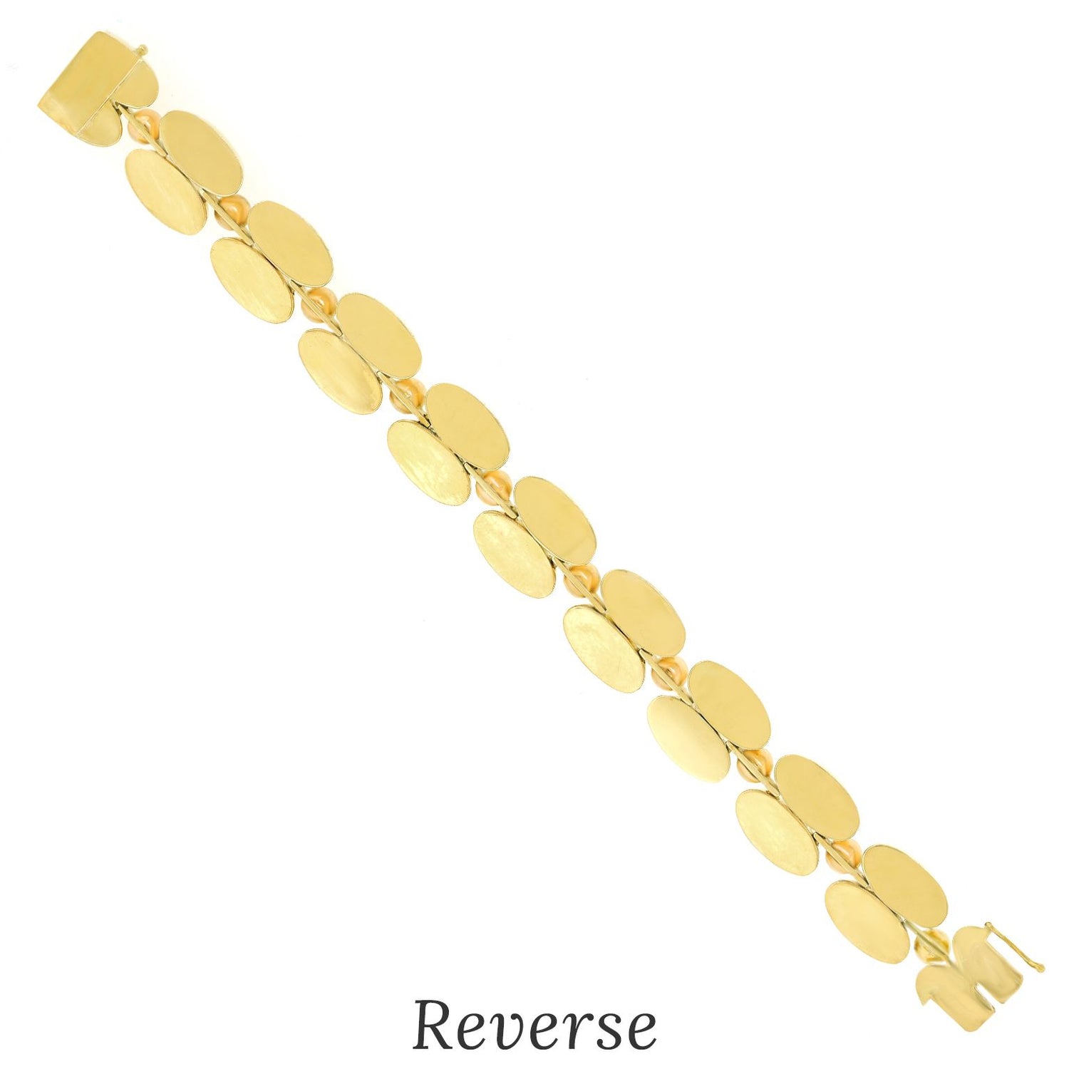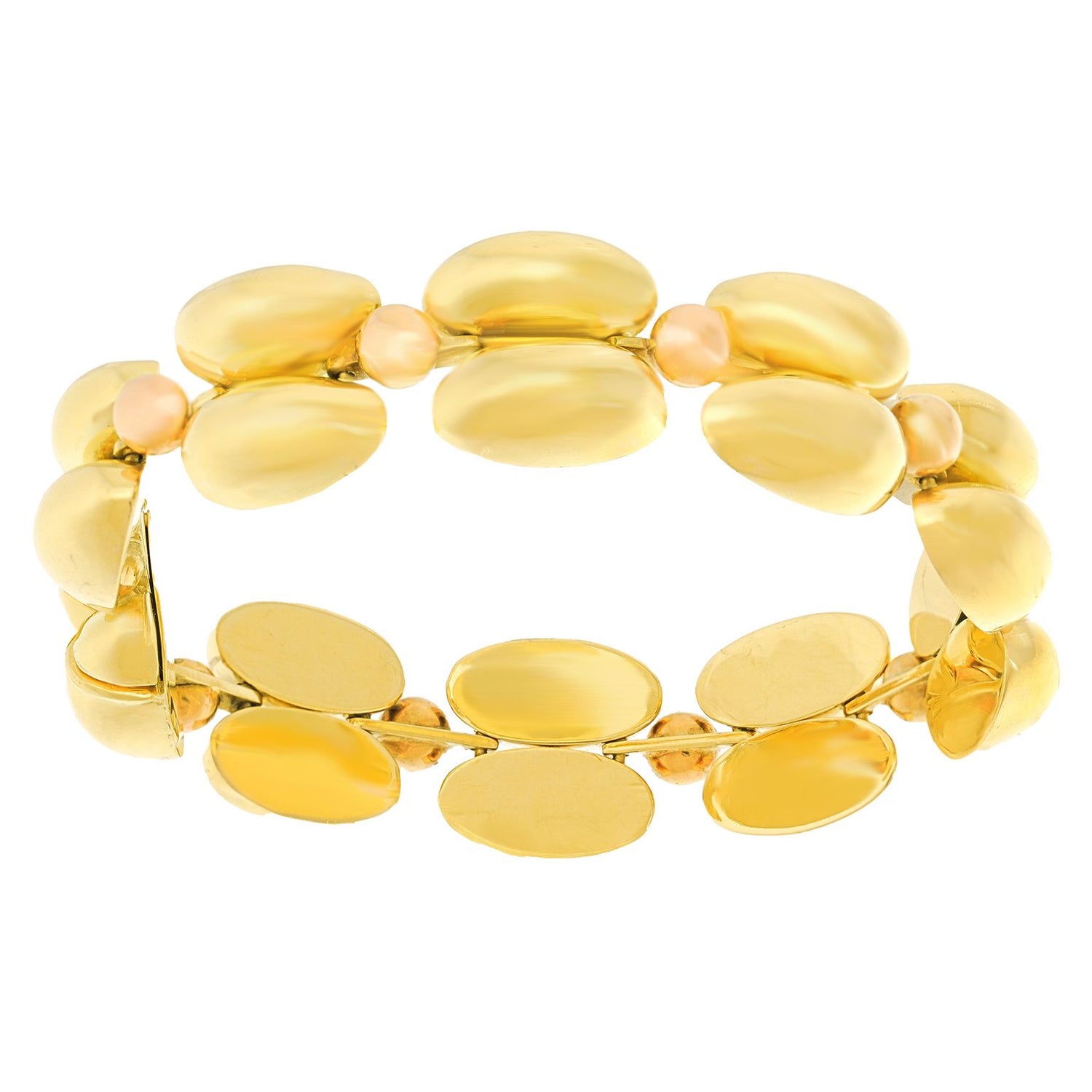 Circa 1950s, 14k, Slovakia. This fab flair fifties accessory is a never-take-it-off yellow gold bracelet. The look is Art Deco sleek meets post-modern chic. Perfect for any moment of fashion, it is comfortable and well-made. Excellent condition.