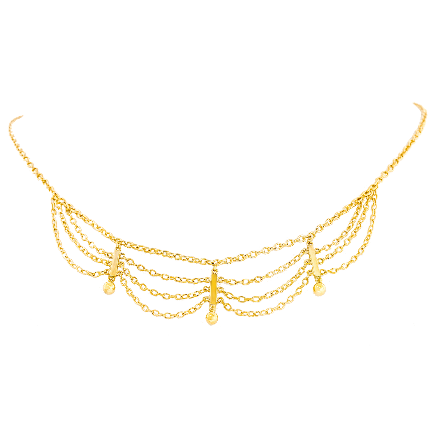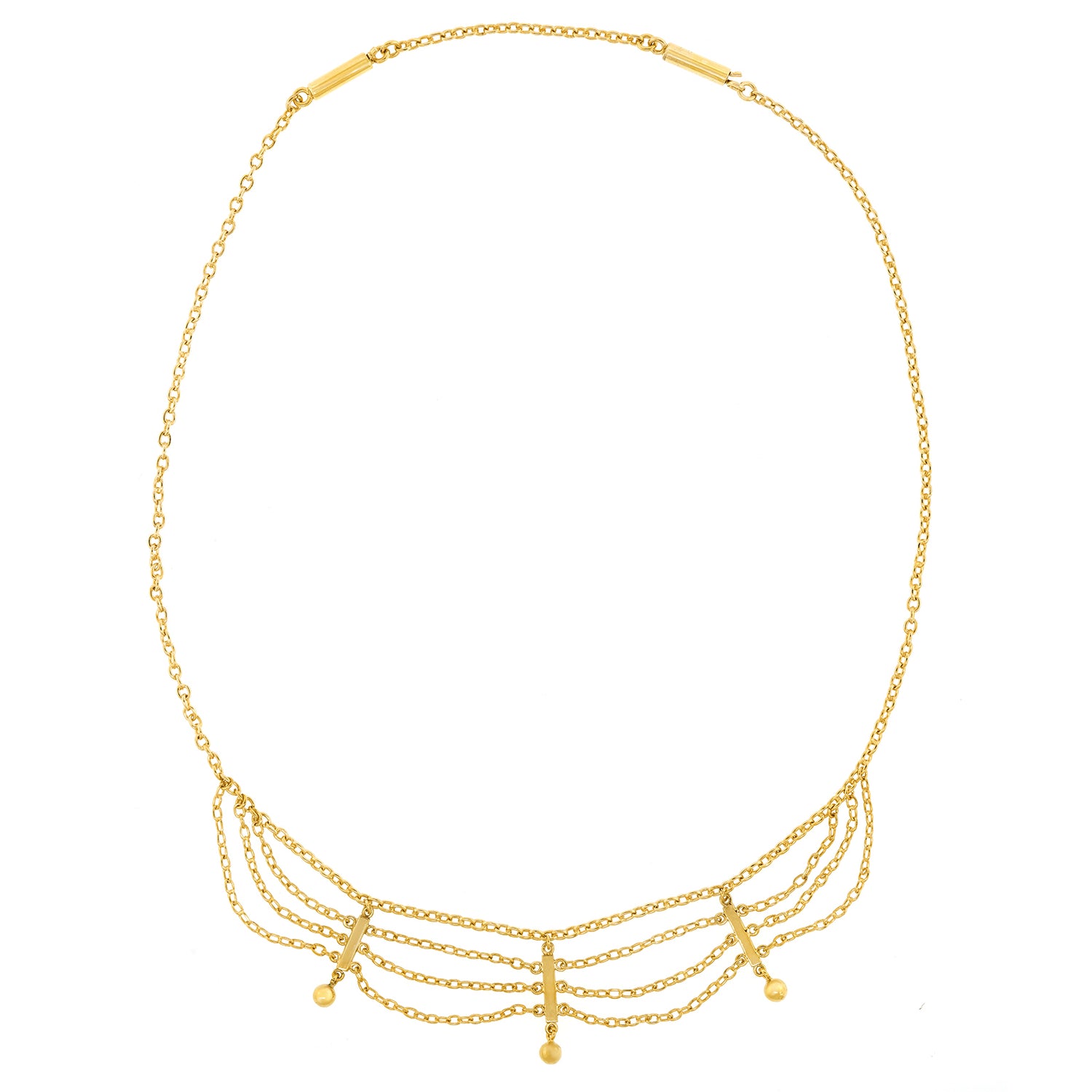 Circa 1880s, 14k. This charming Victorian necklace features a delicate swaged motif in rich yellow gold. Its antique chic look effortlessly dresses up or down. Delicately fabricated in 14k yellow gold, it is in excellent condition.