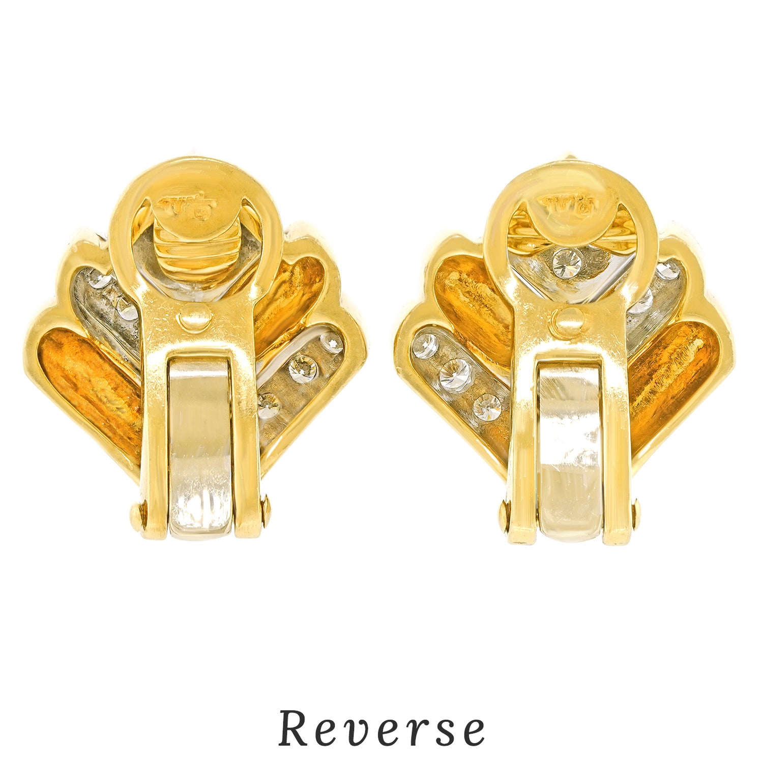 Circa 1970s, 18k, by Pomellato, Milan, Italy. These chic yellow gold earrings are set with .85 carats of superb white diamonds (G color, VS clarity). The look breezily dresses up or down, as comfortable with heels and jeans, as a suit, or a cocktail dress. Made to Pomellato's elite quality standards, these earrings are in excellent condition.
